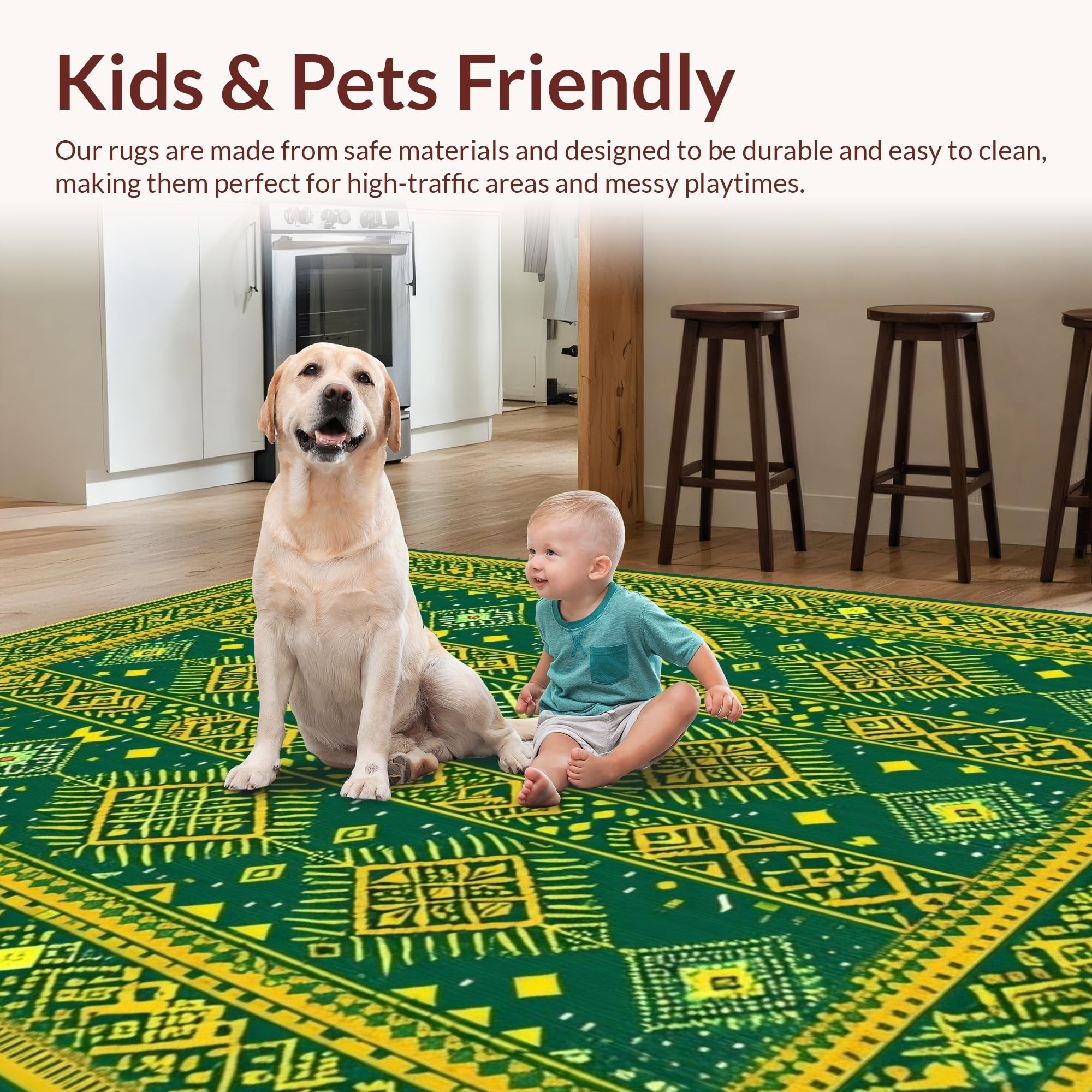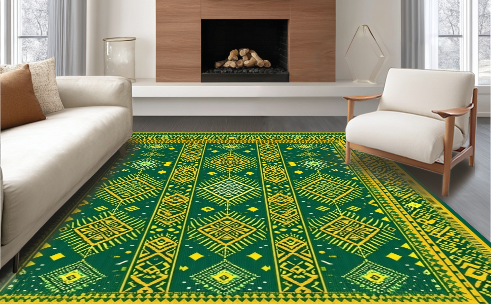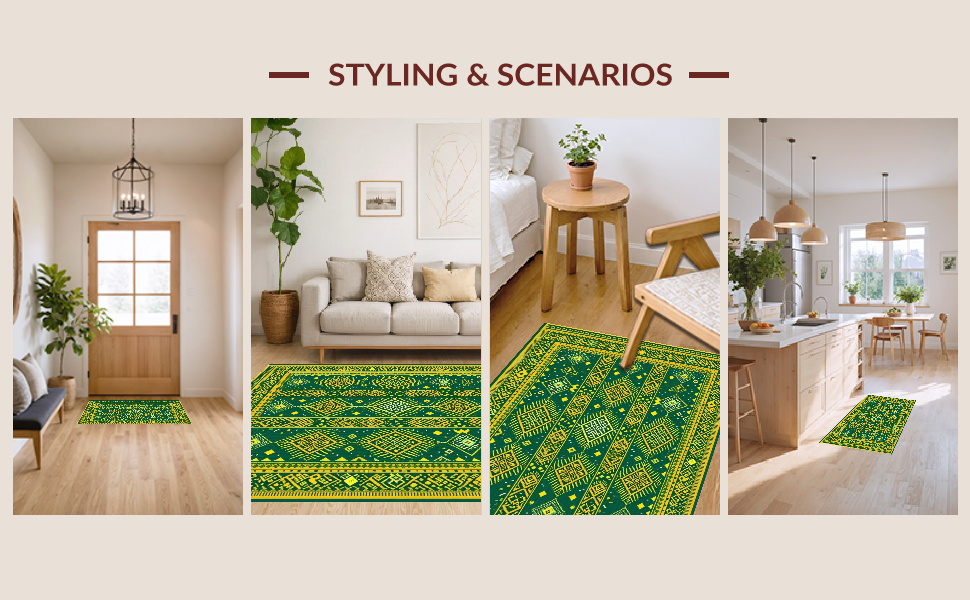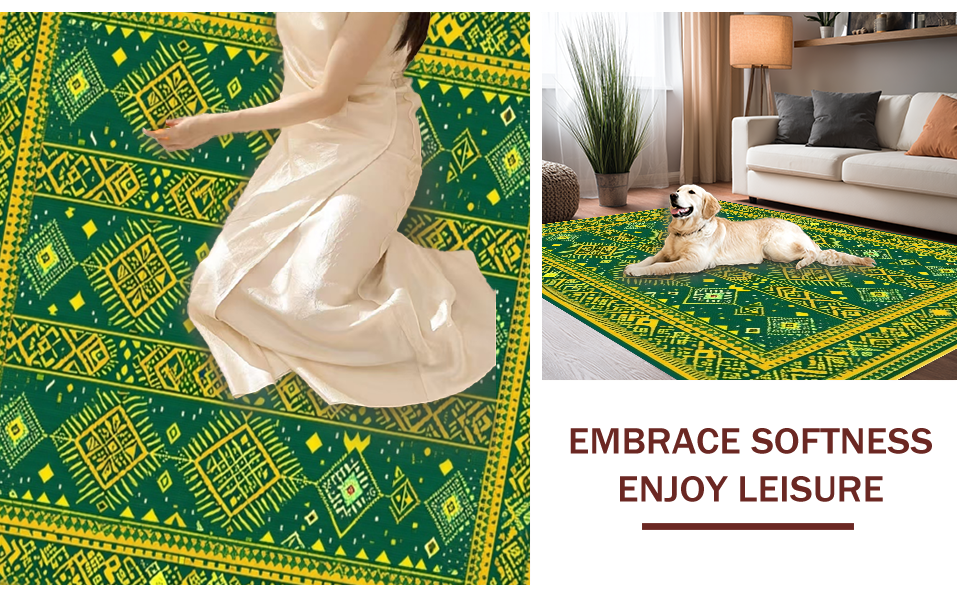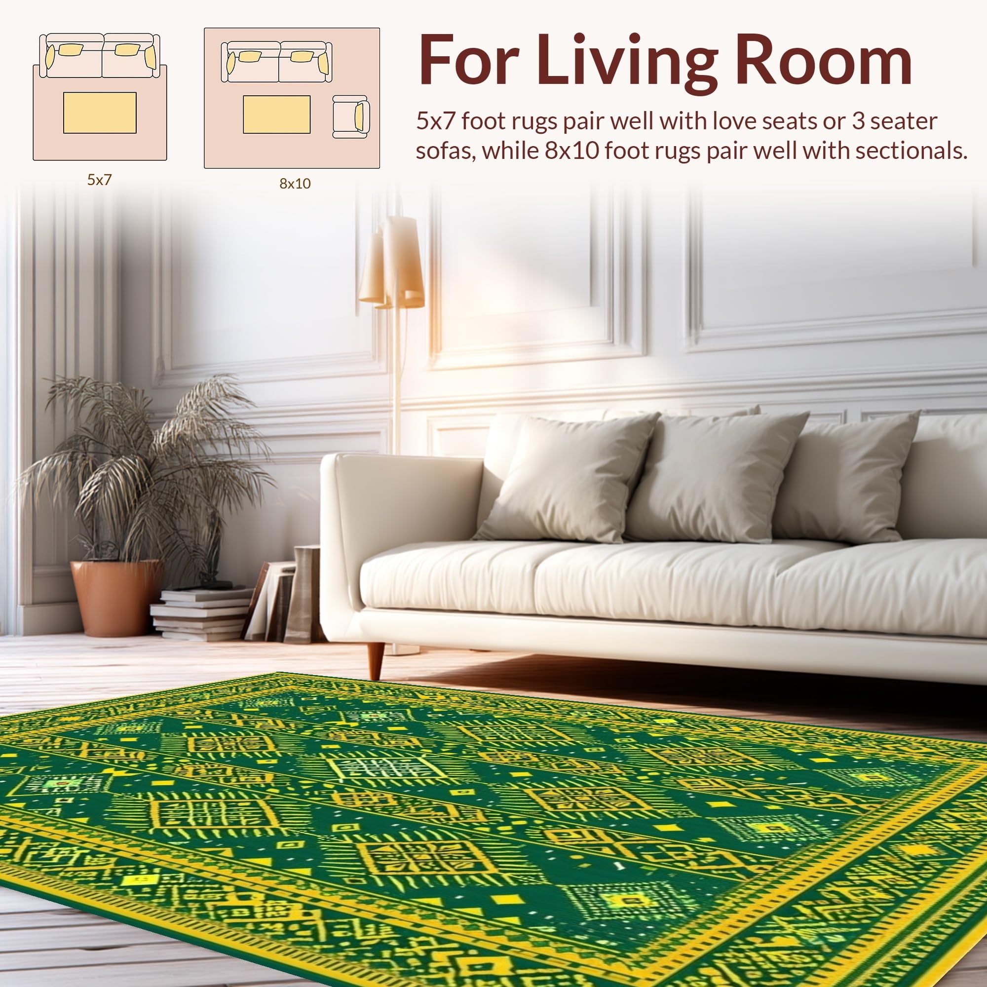 Ultra Soft Area Rug, Non Slip, Stain Resistant, Washable Area Rugs for Living Room, Bedroom, Minimalist Bright Trellis Accent(Green) Overview: