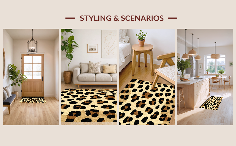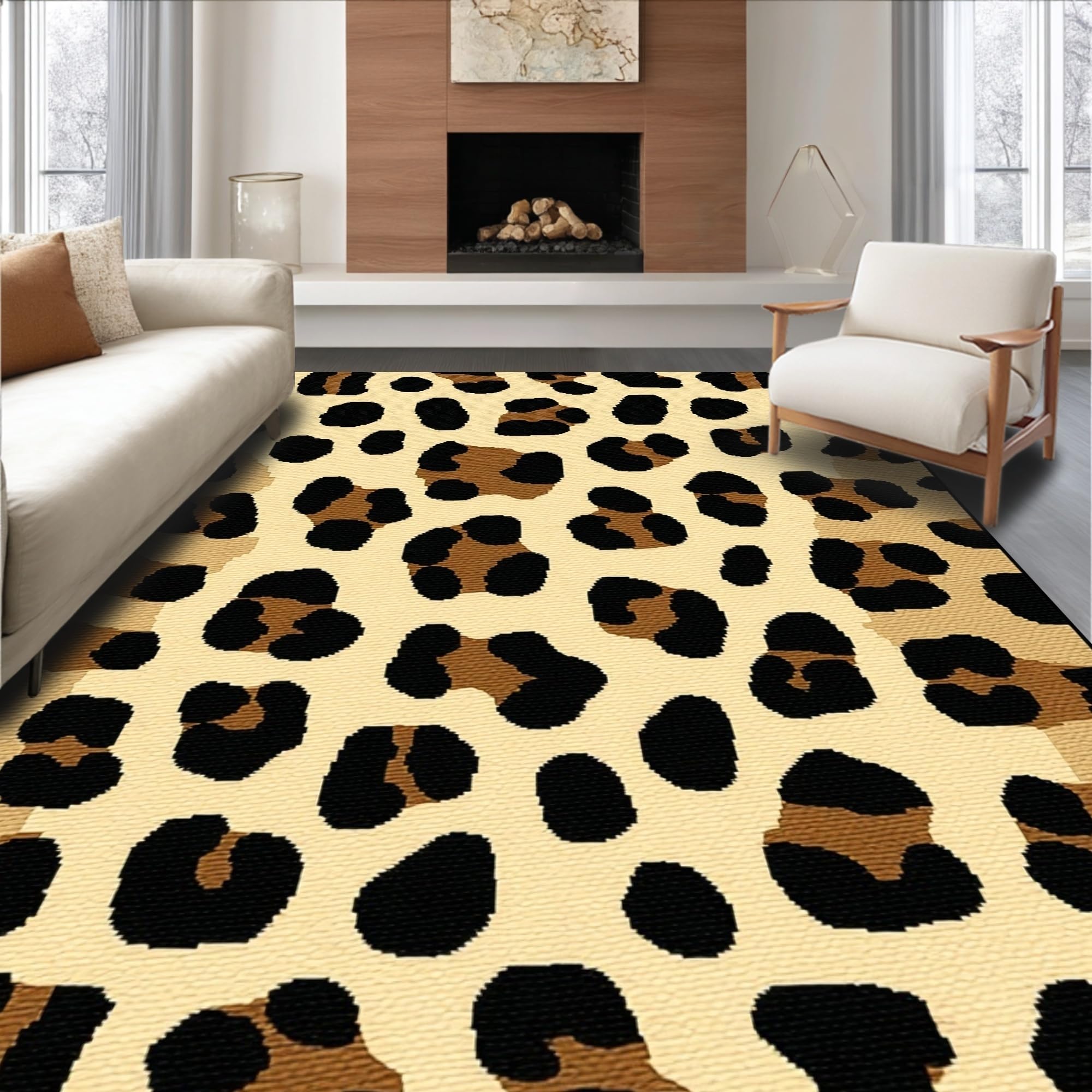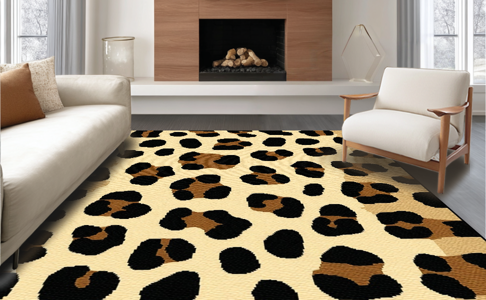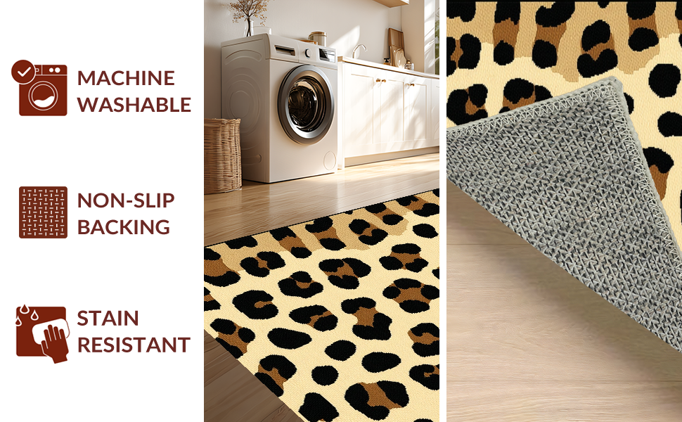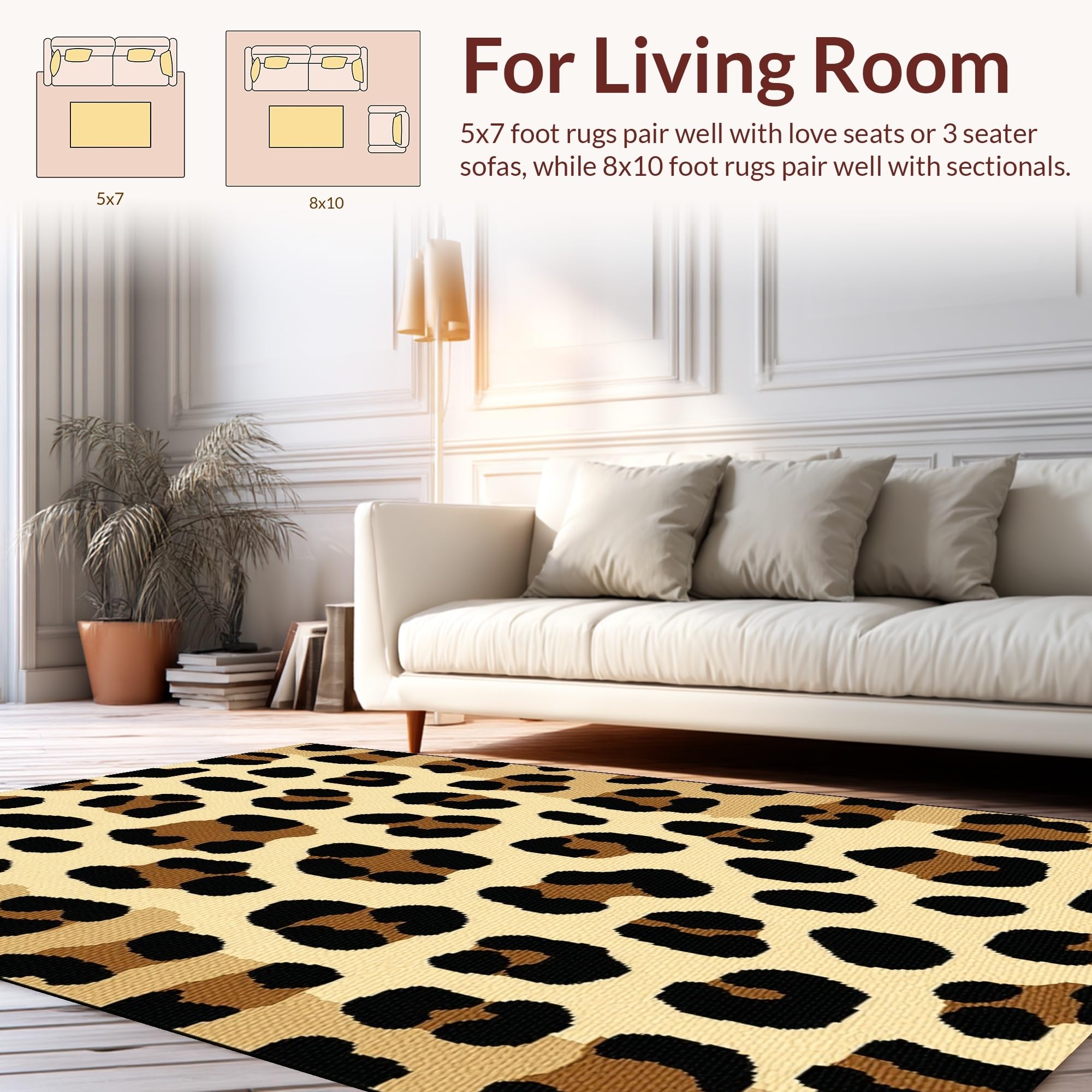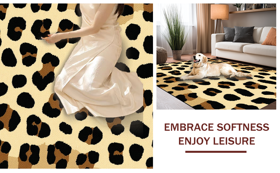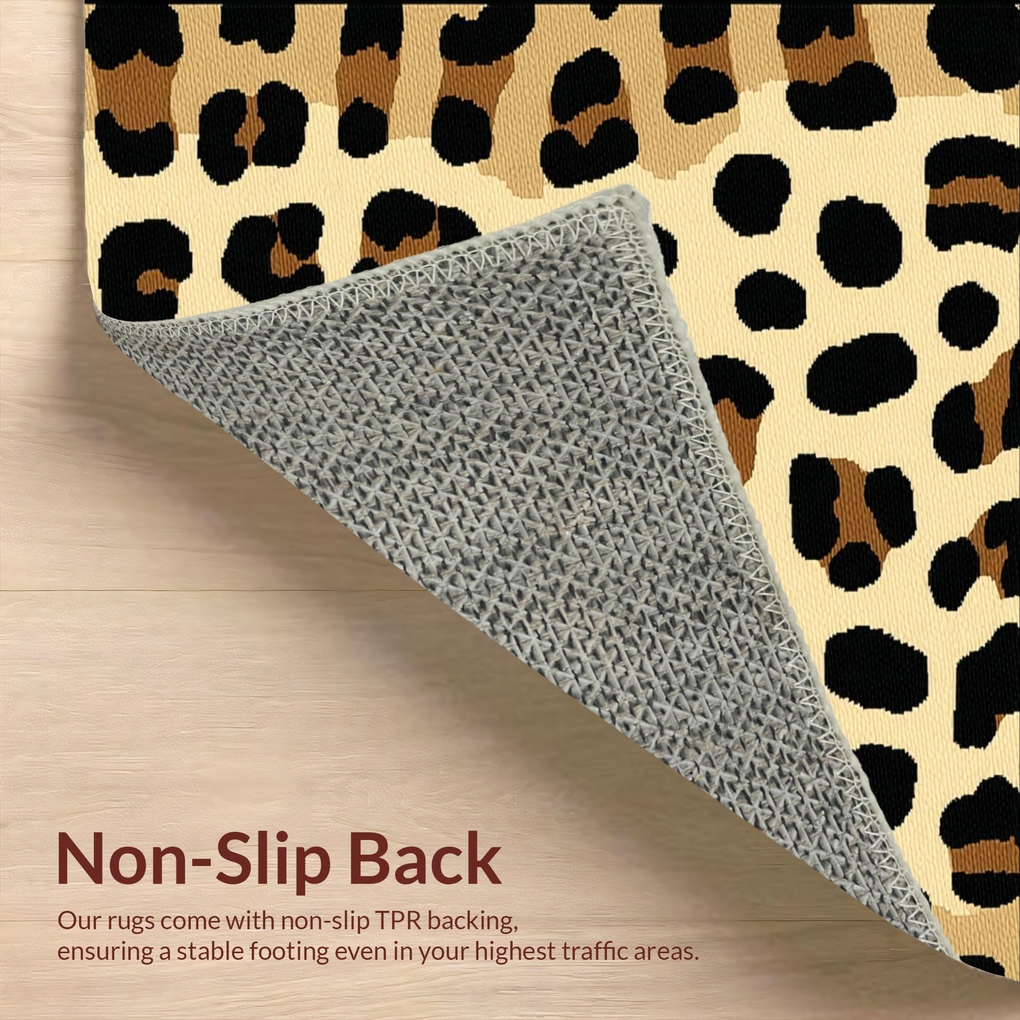 Ultra Soft Area Rug, Non Slip, Stain Resistant, Washable Area Rugs for Living Room, Bedroom, Minimalist Brown Leopard Theme(Beige) Overview: