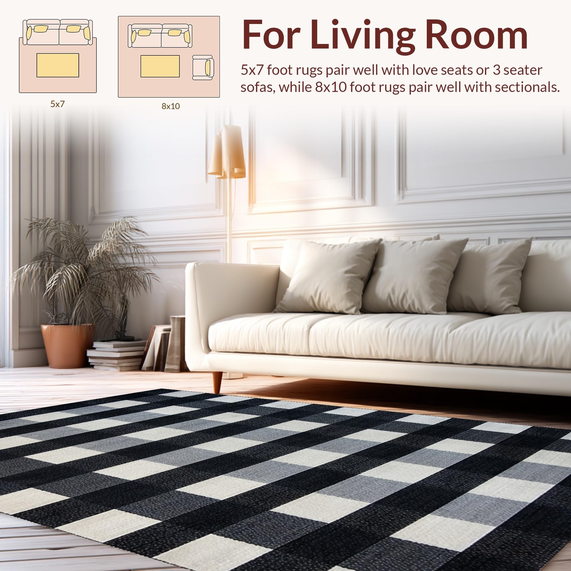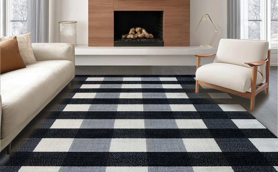 Ultra Soft Area Rug, Non Slip, Stain Resistant, Washable Area Rugs for Living Room, Bedroom, Minimalist Charcoal Ogee Pattern(Black) Overview: