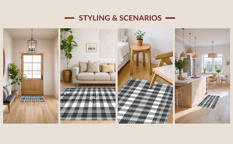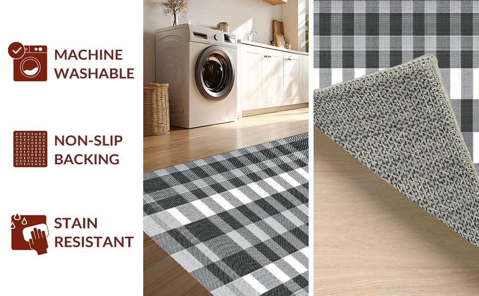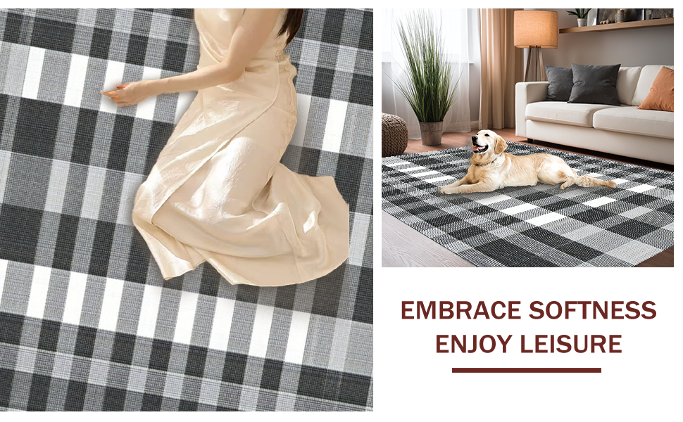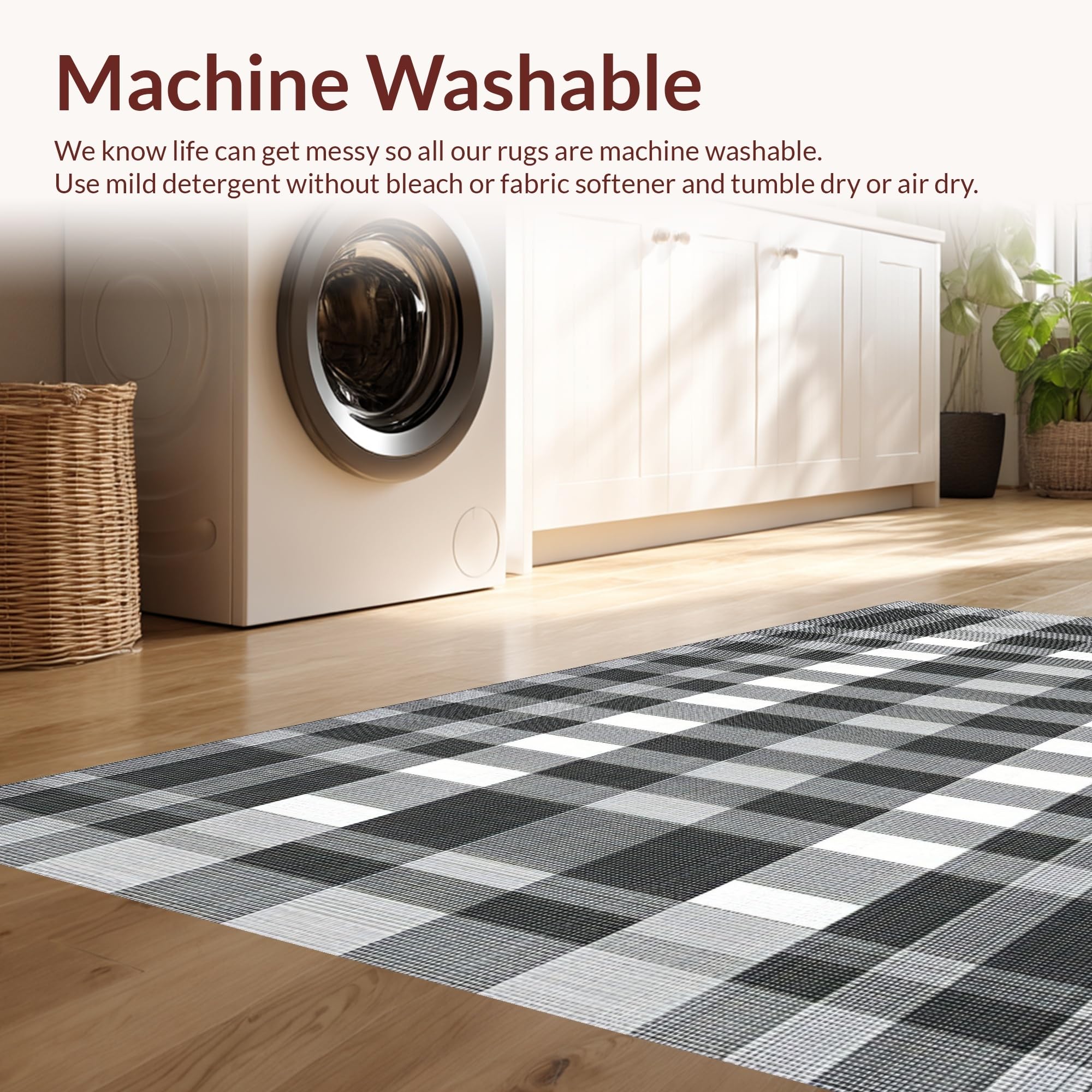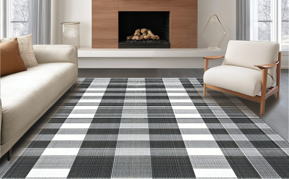 Ultra Soft Area Rug, Non Slip, Stain Resistant, Washable Area Rugs for Living Room, Bedroom, Minimalist Checks with Bold Contrast(Black) Overview: