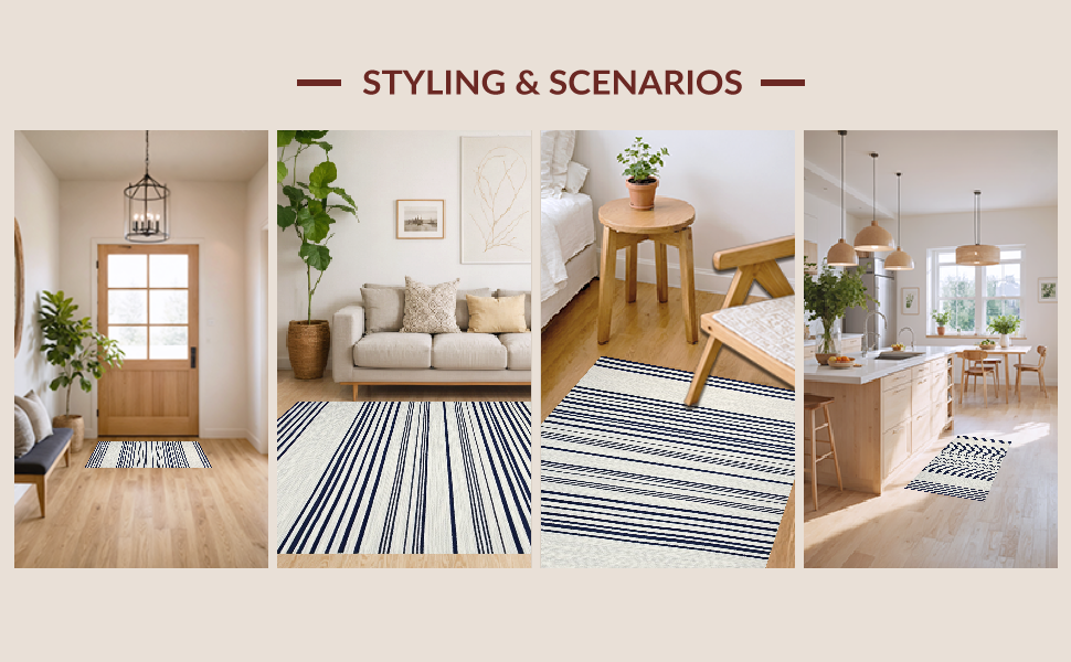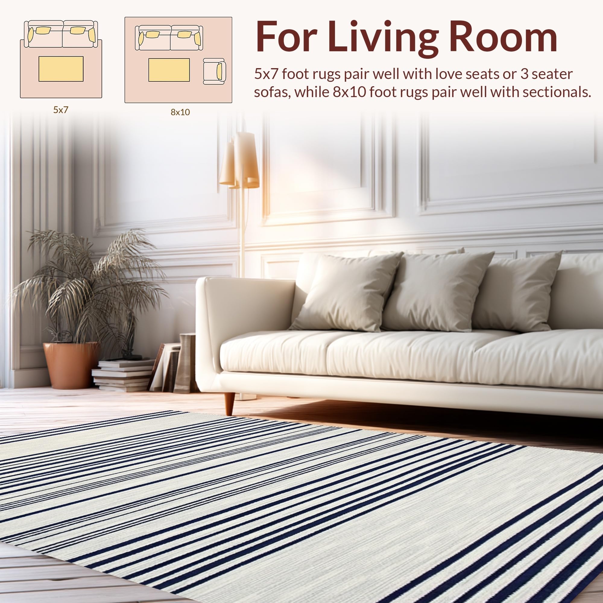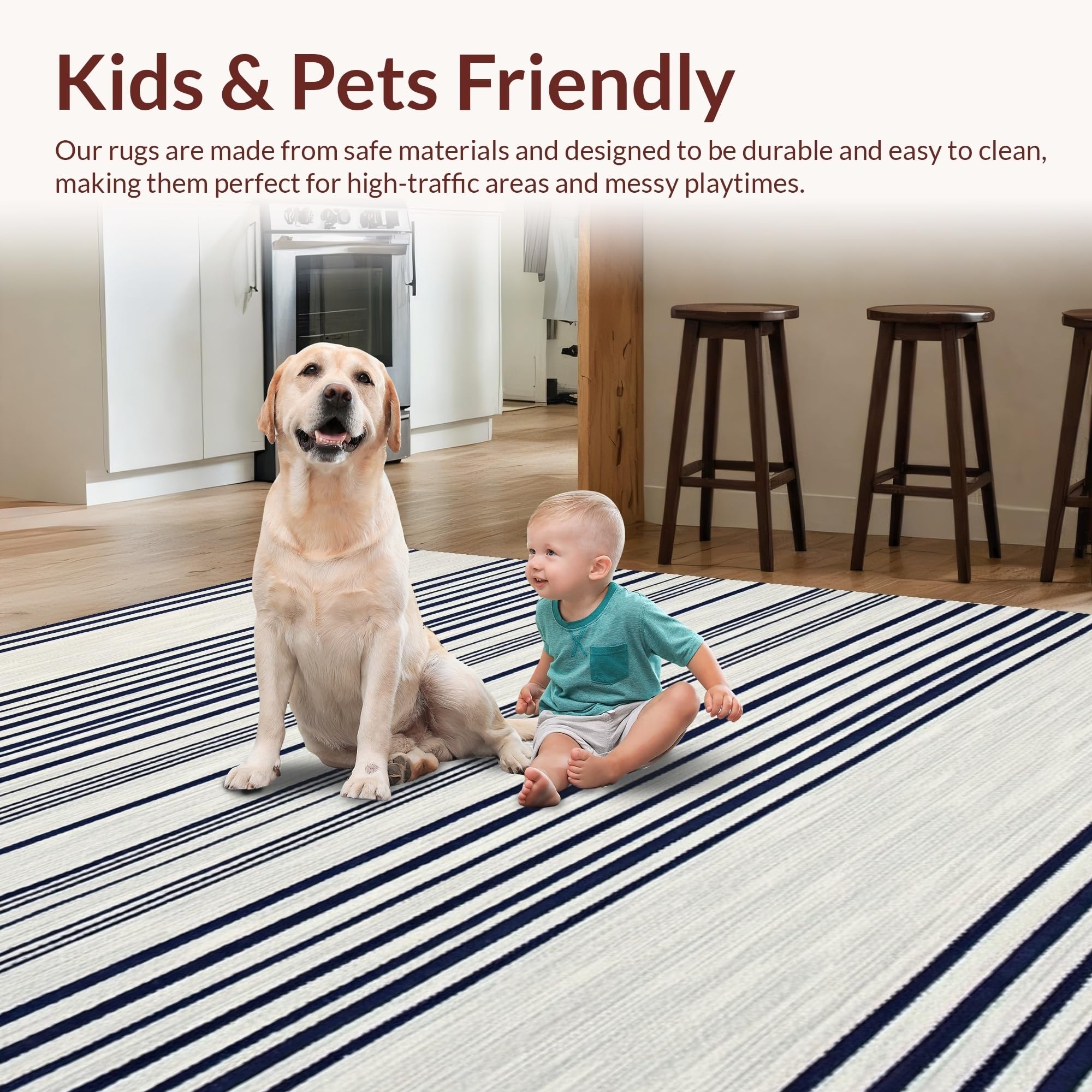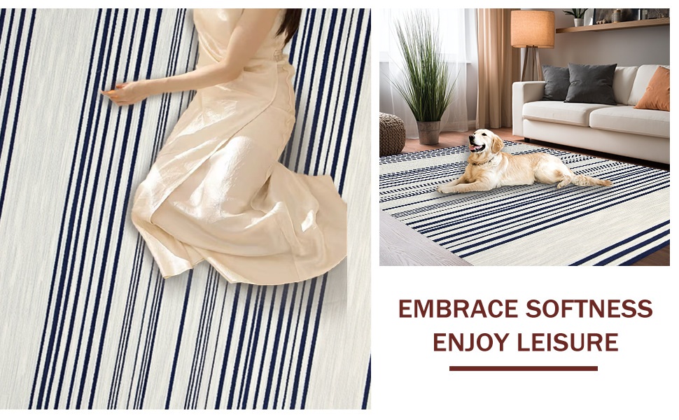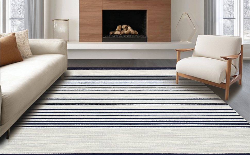 Ultra Soft Area Rug, Non Slip, Stain Resistant, Washable Area Rugs for Living Room, Bedroom, Minimalist Chic Linear Design Concept(Blue) Overview: