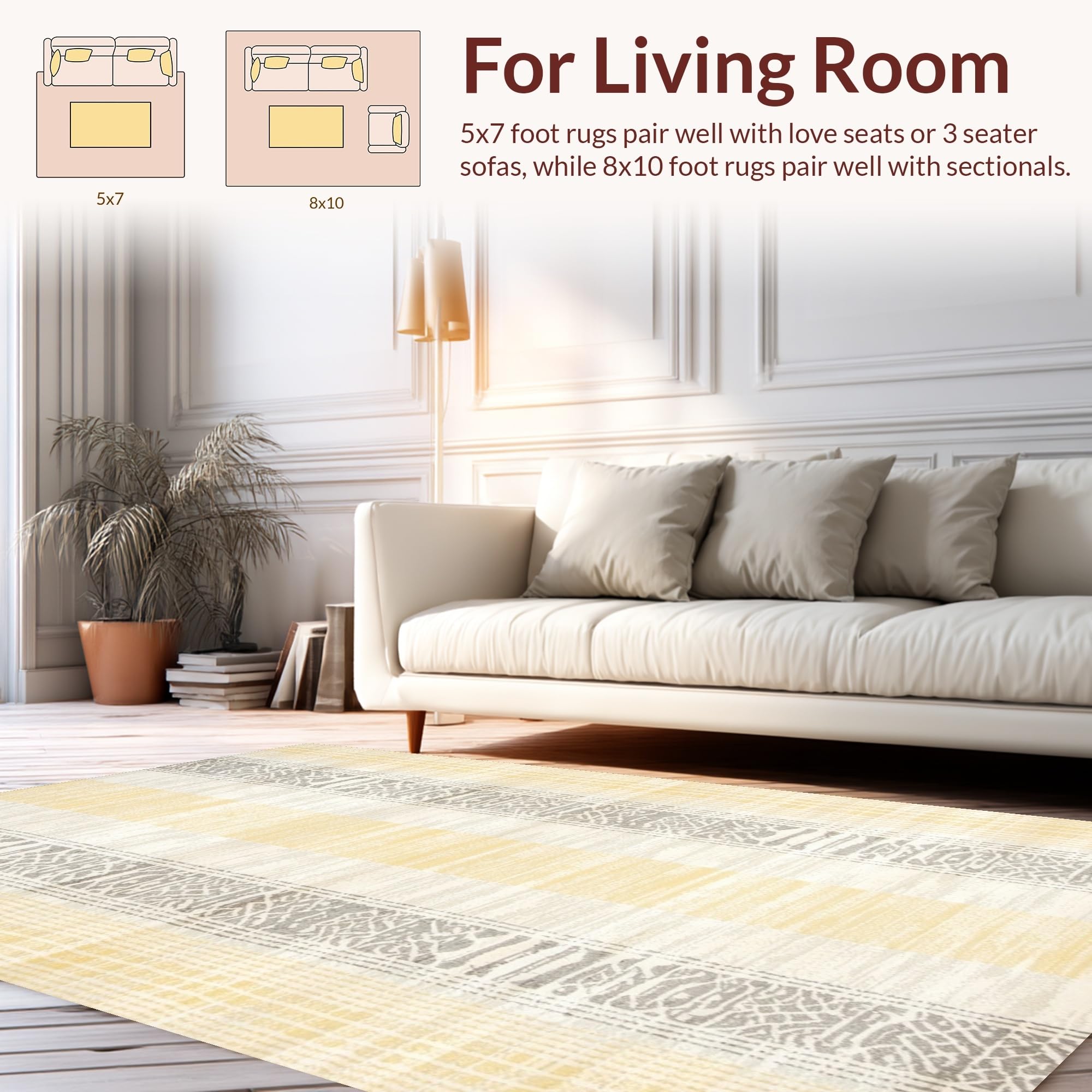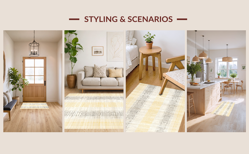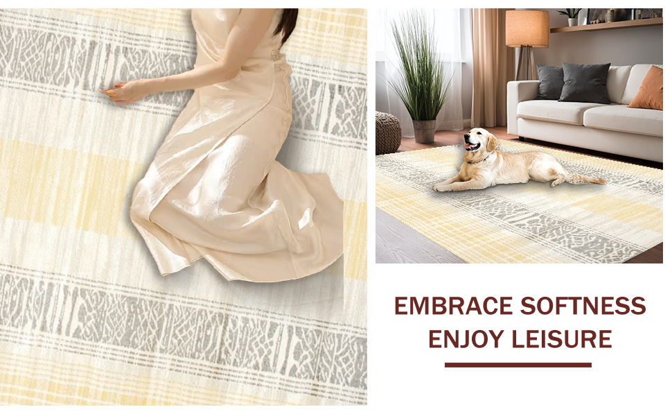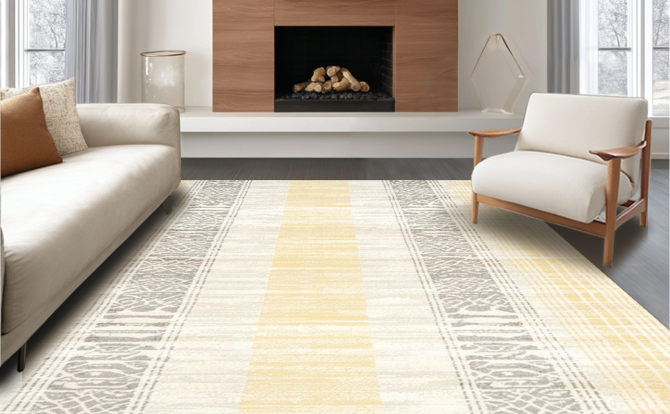 Ultra Soft Area Rug, Non Slip, Stain Resistant, Washable Area Rugs for Living Room, Bedroom, Minimalist Chic Twisted Patterns(Yellow) Overview: