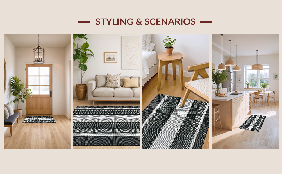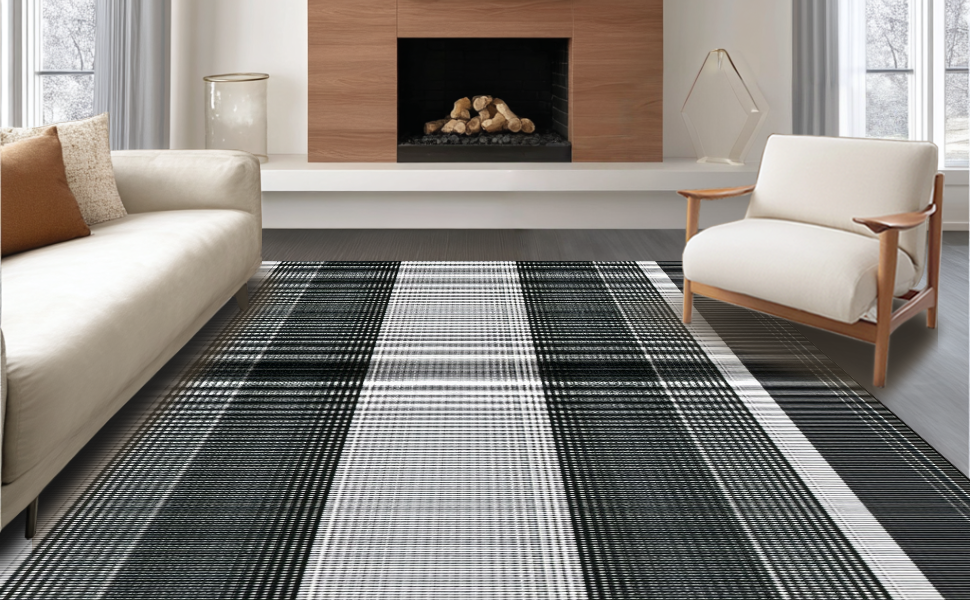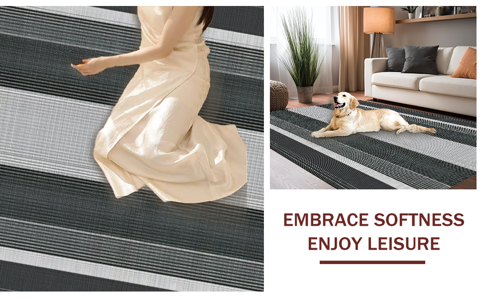 Ultra Soft Area Rug, Non Slip, Stain Resistant, Washable Area Rugs for Living Room, Bedroom, Minimalist Classic Linear Design(Black) Overview: