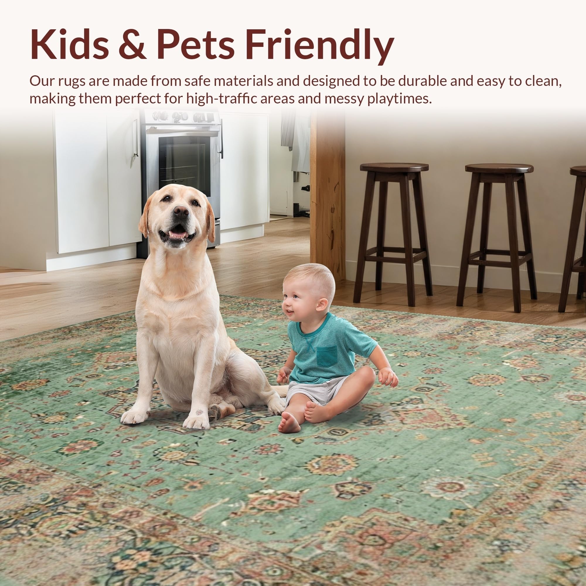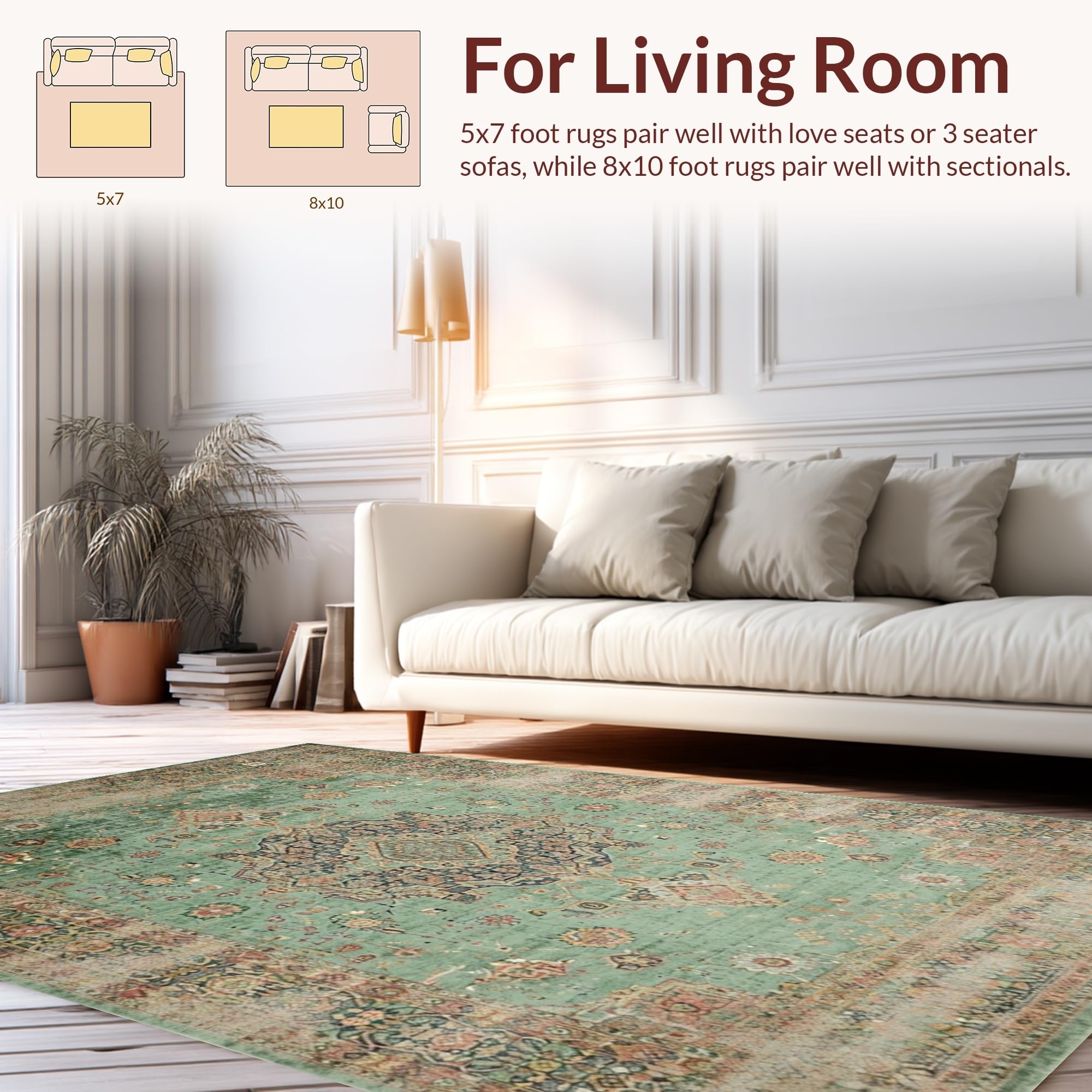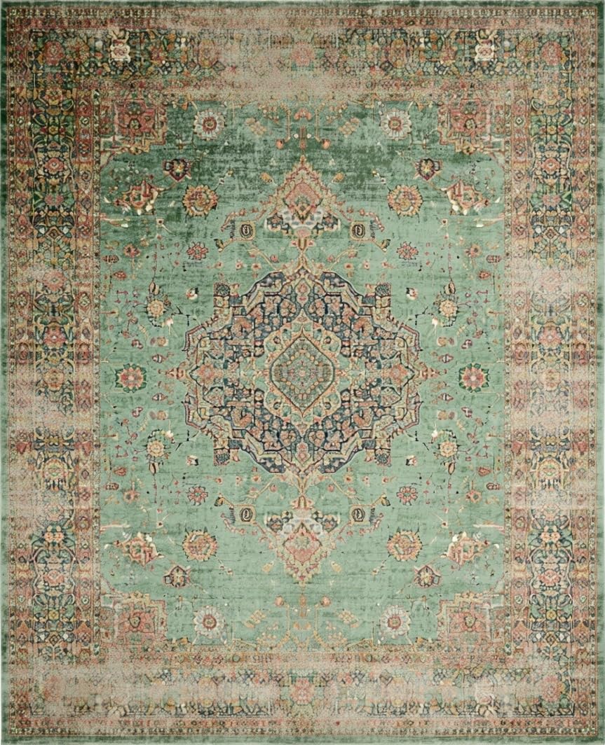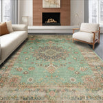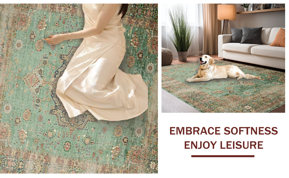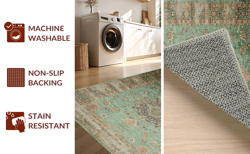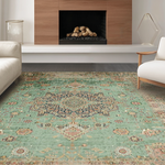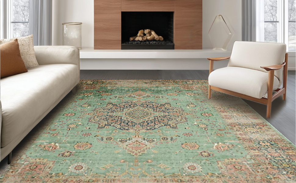 Ultra Soft Area Rug, Non Slip, Stain Resistant, Washable Area Rugs for Living Room, Bedroom, Minimalist Classic Medallion Style(Green) Overview: