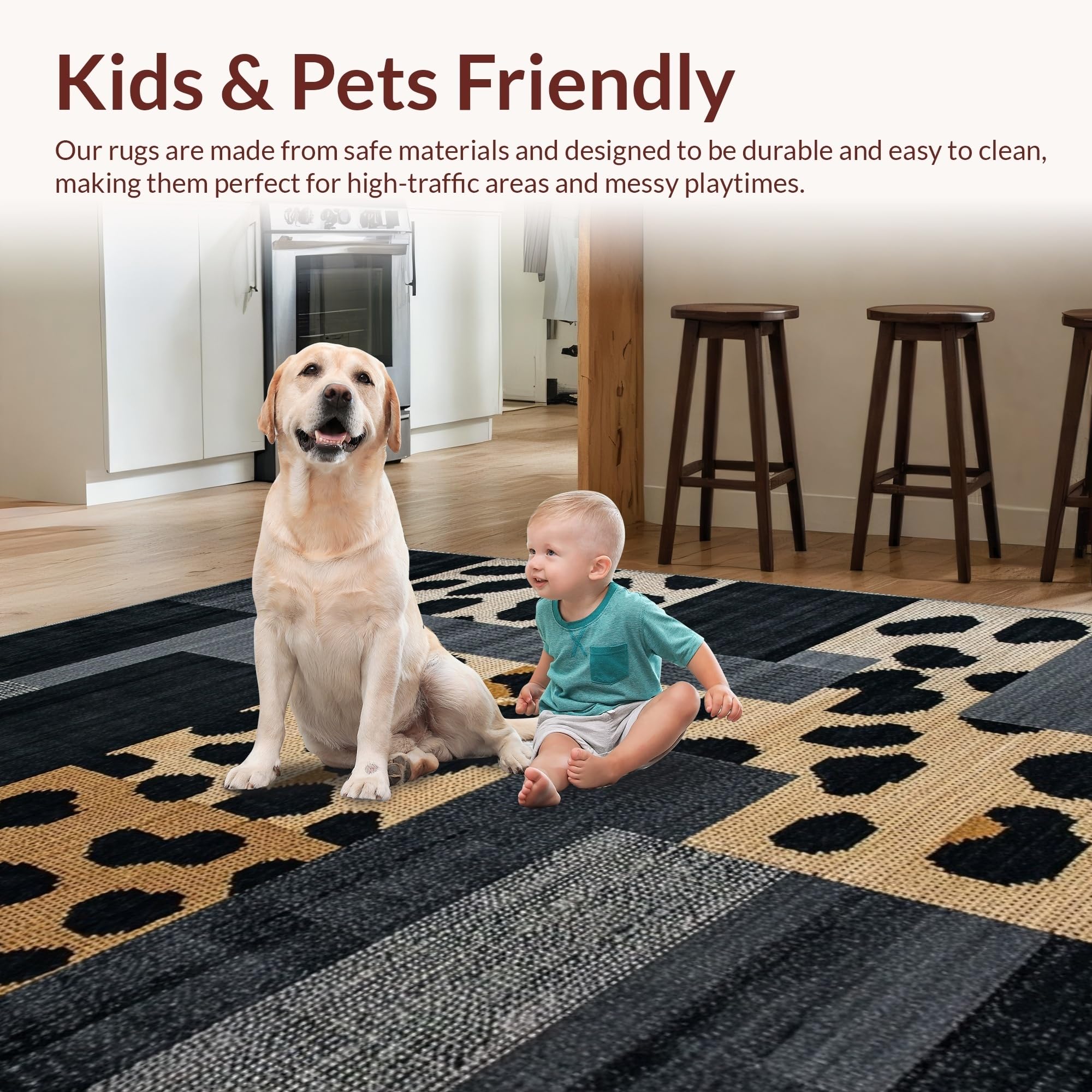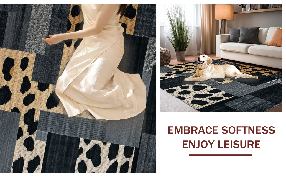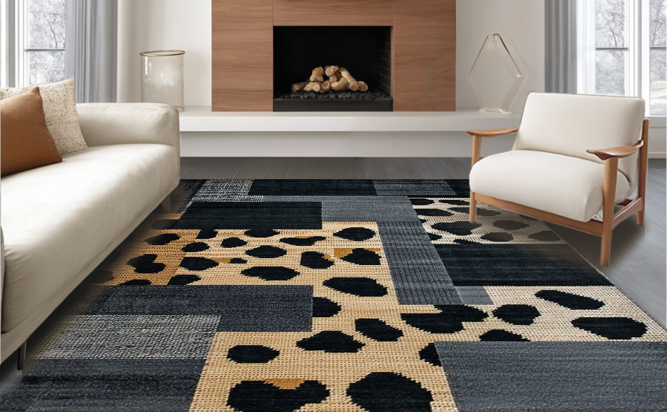 Ultra Soft Area Rug, Non Slip, Stain Resistant, Washable Area Rugs for Living Room, Bedroom, Minimalist Contemporary Print Inspiration(Black) Overview: