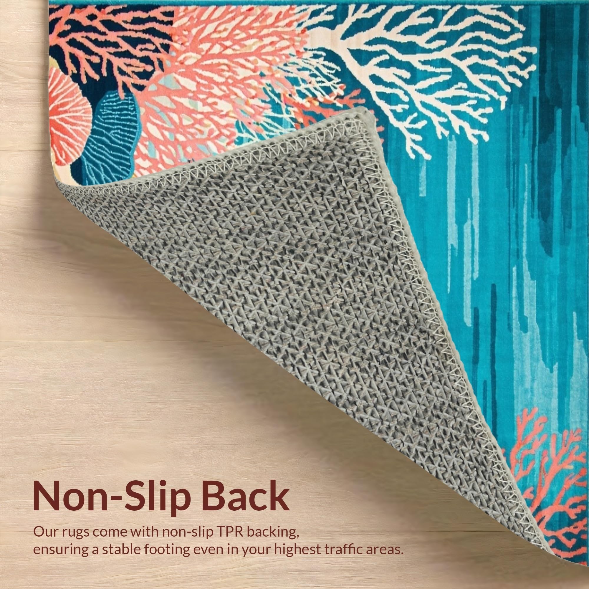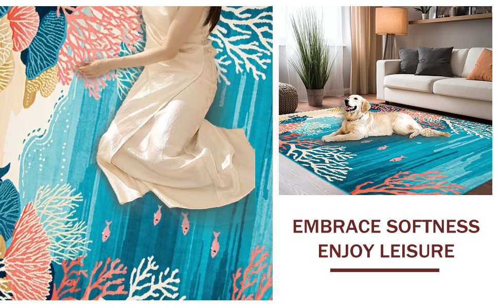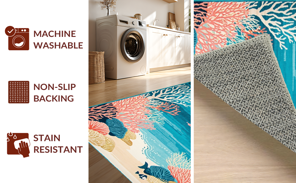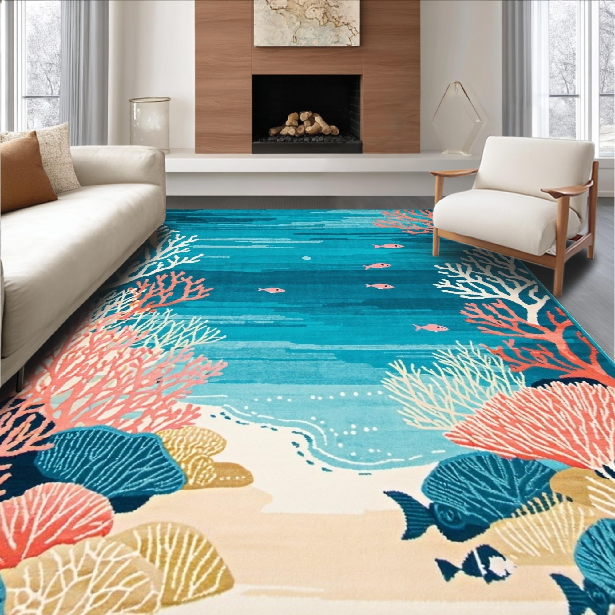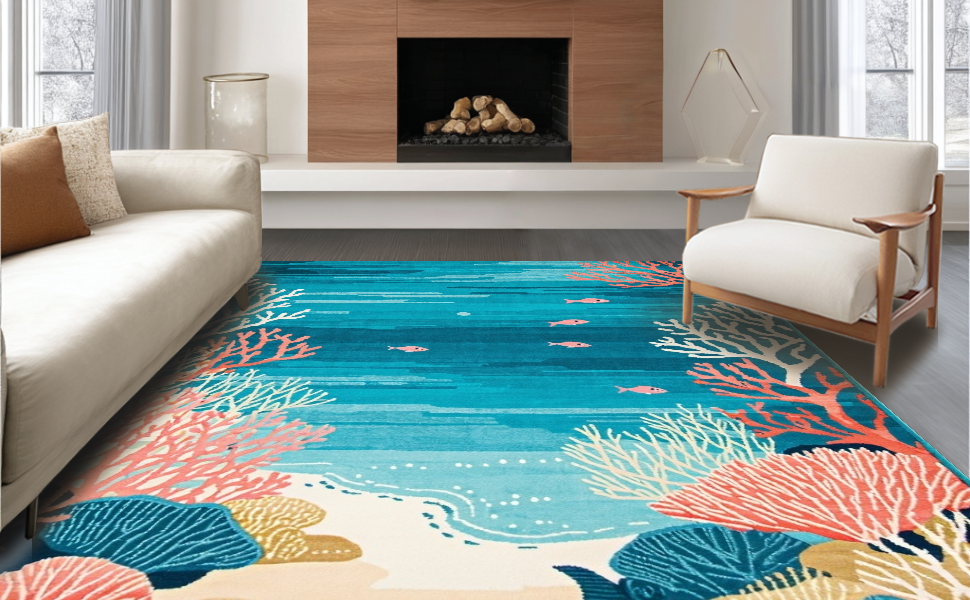 Ultra Soft Area Rug, Non Slip, Stain Resistant, Washable Area Rugs for Living Room, Bedroom, Minimalist Coral Diamond Arrangement(Blue) Overview: