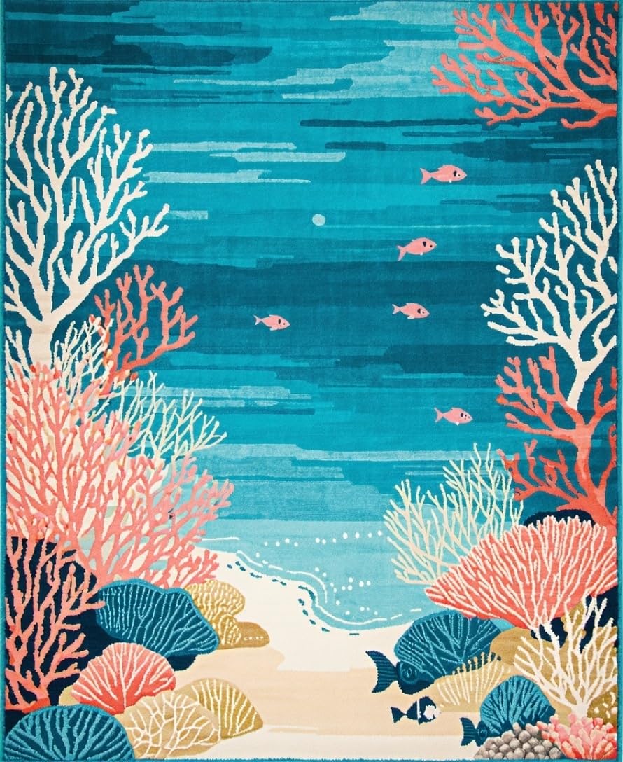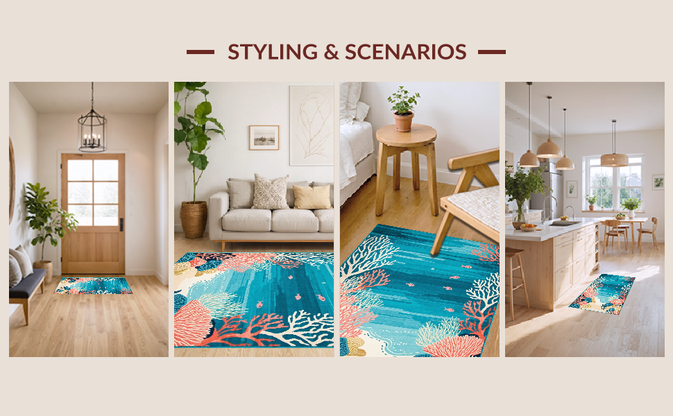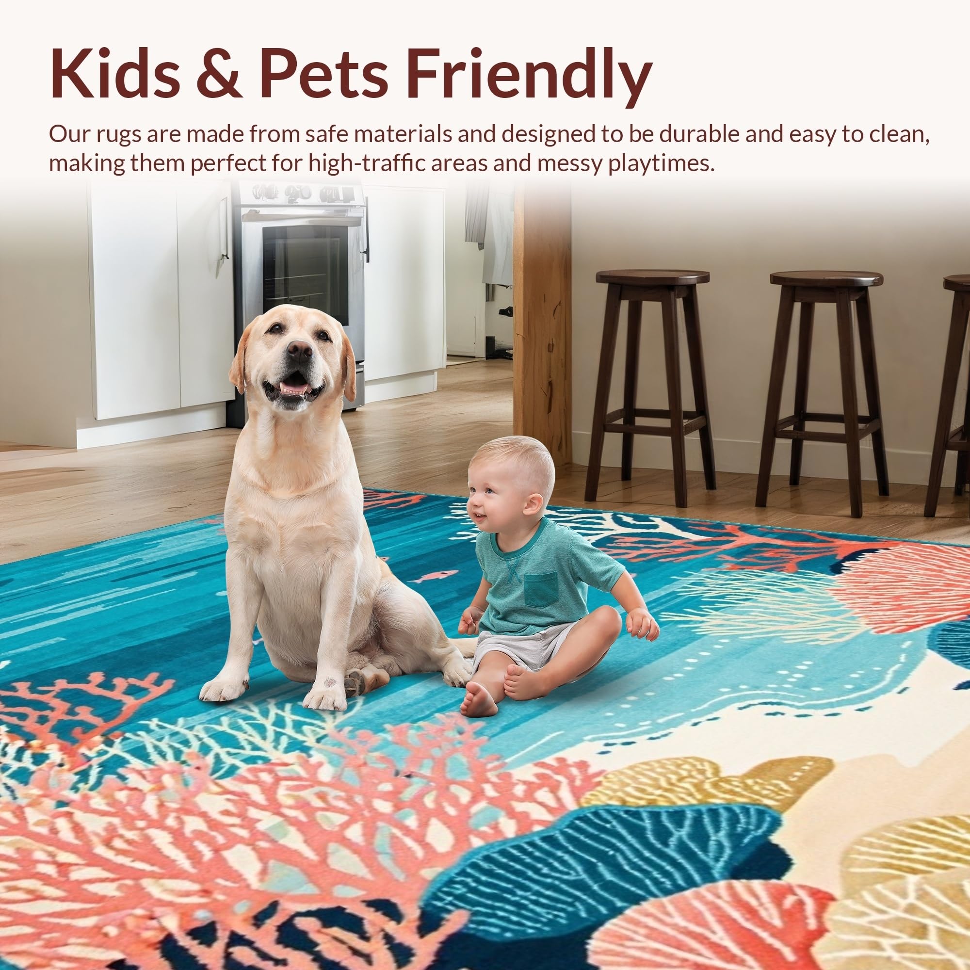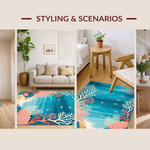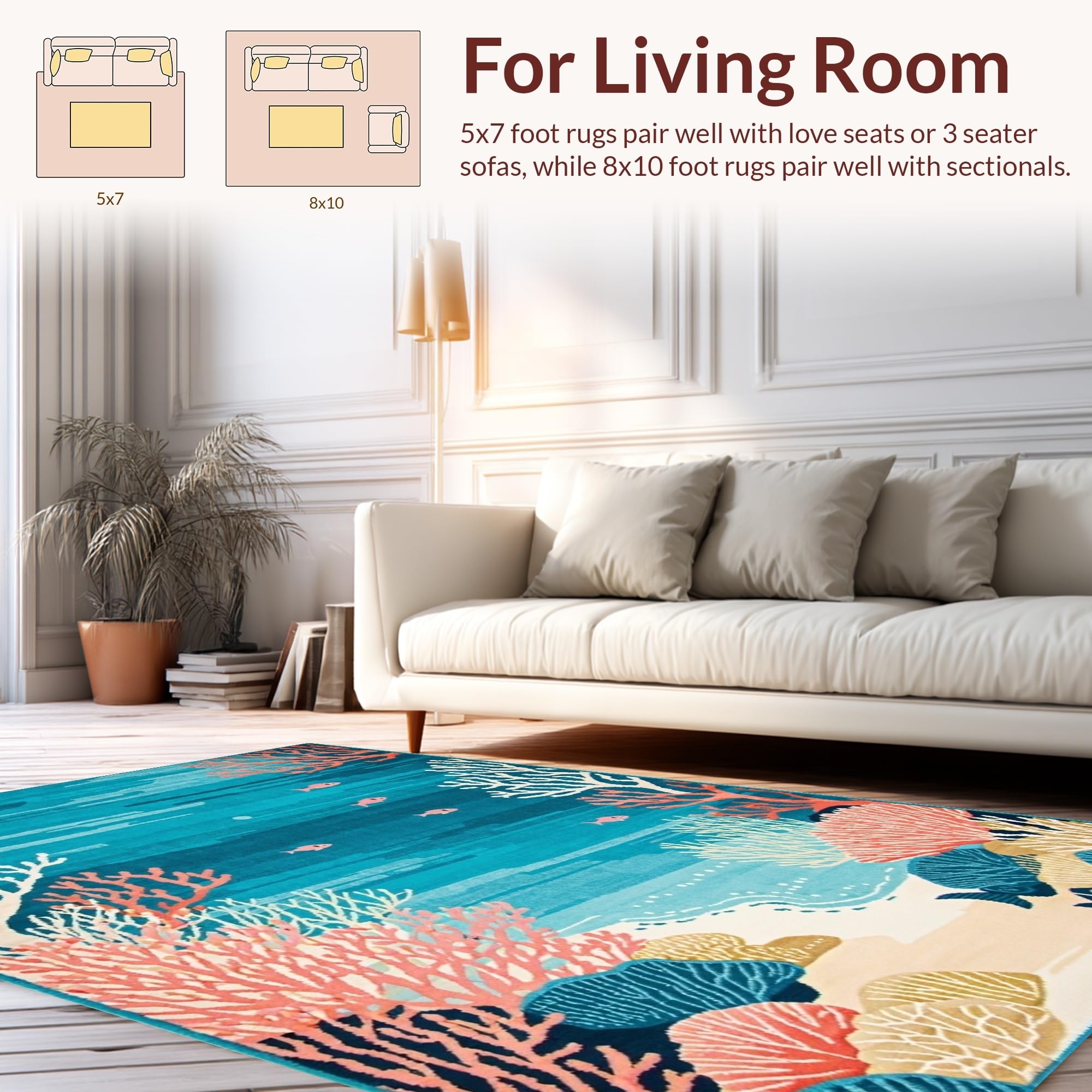 Ultra Soft Area Rug, Non Slip, Stain Resistant, Washable Area Rugs for Living Room, Bedroom, Minimalist Coral Diamond Arrangement(Blue) Overview:
