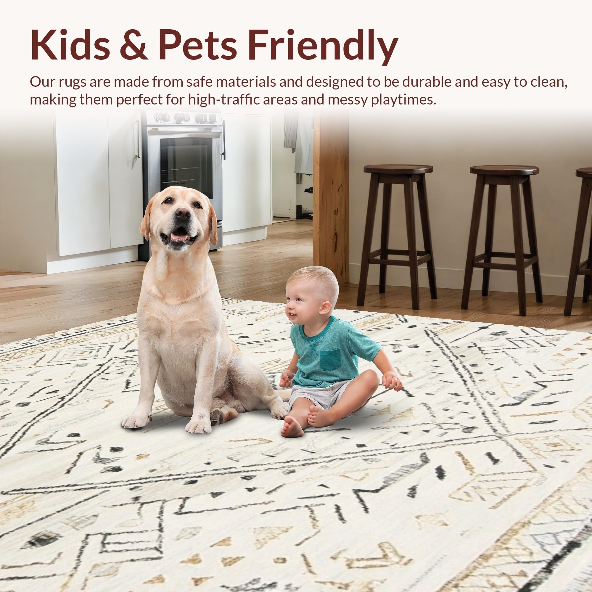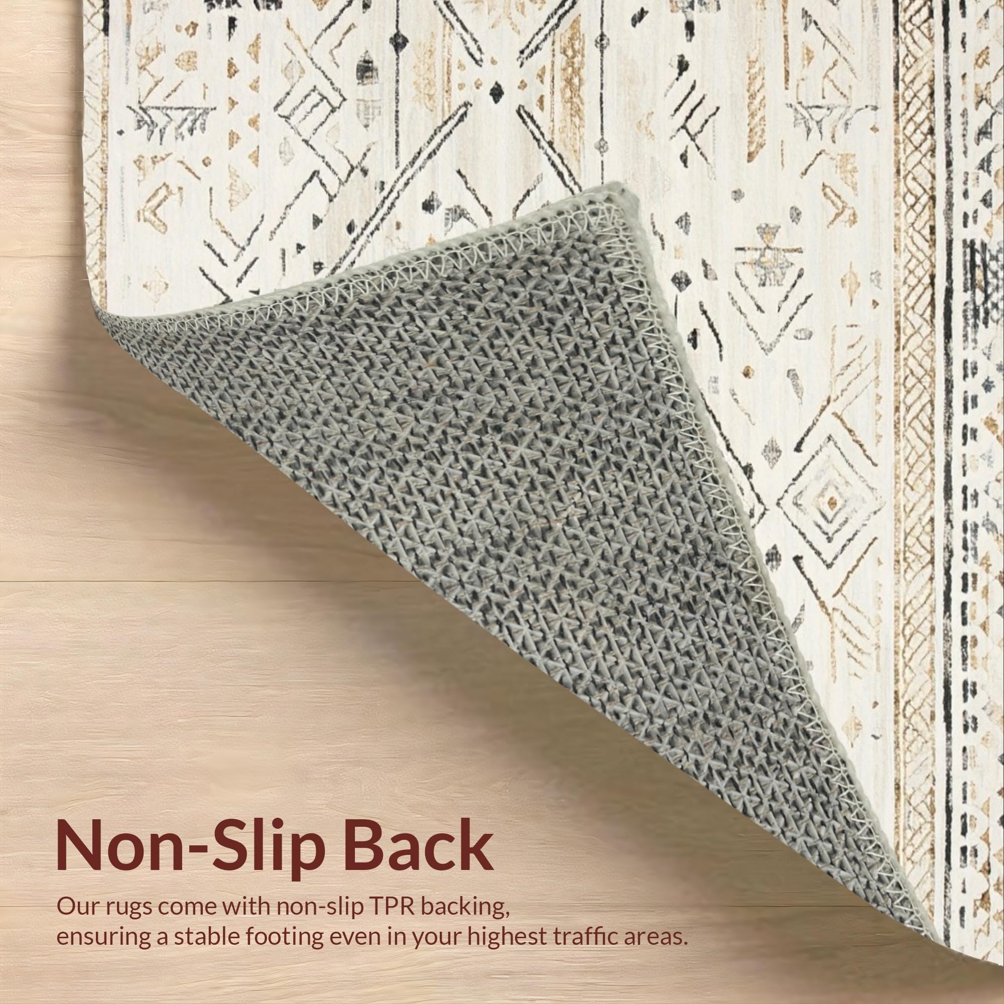 Ultra Soft Area Rug, Non Slip, Stain Resistant, Washable Area Rugs for Living Room, Bedroom, Minimalist Cozy Linear Design(Beige) Overview: