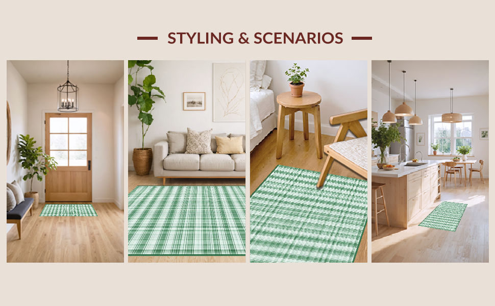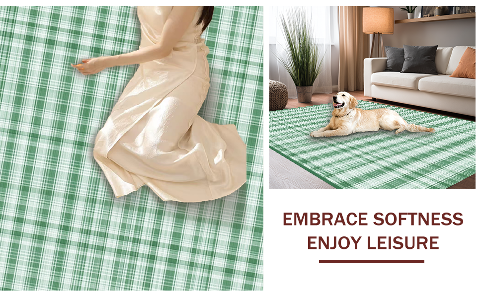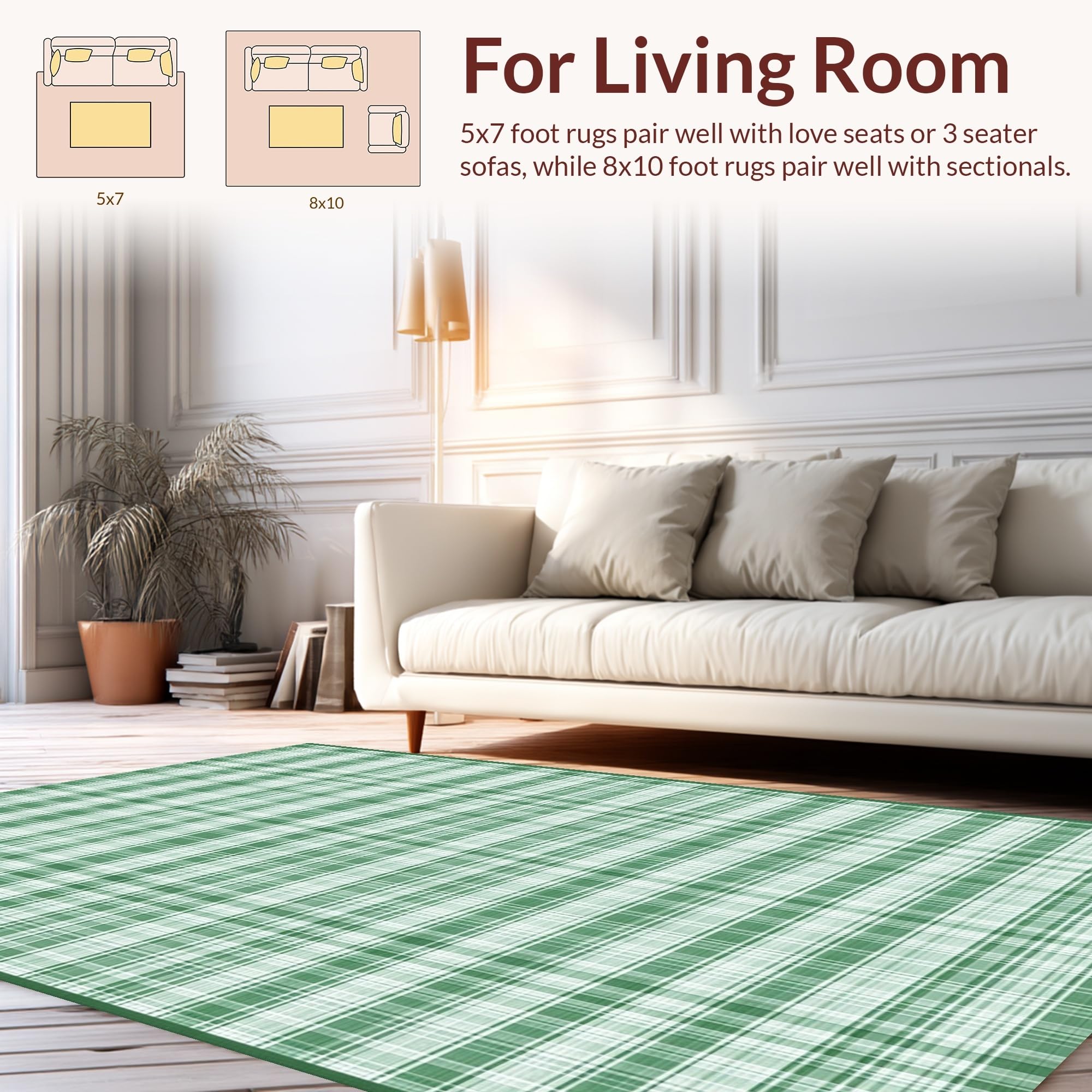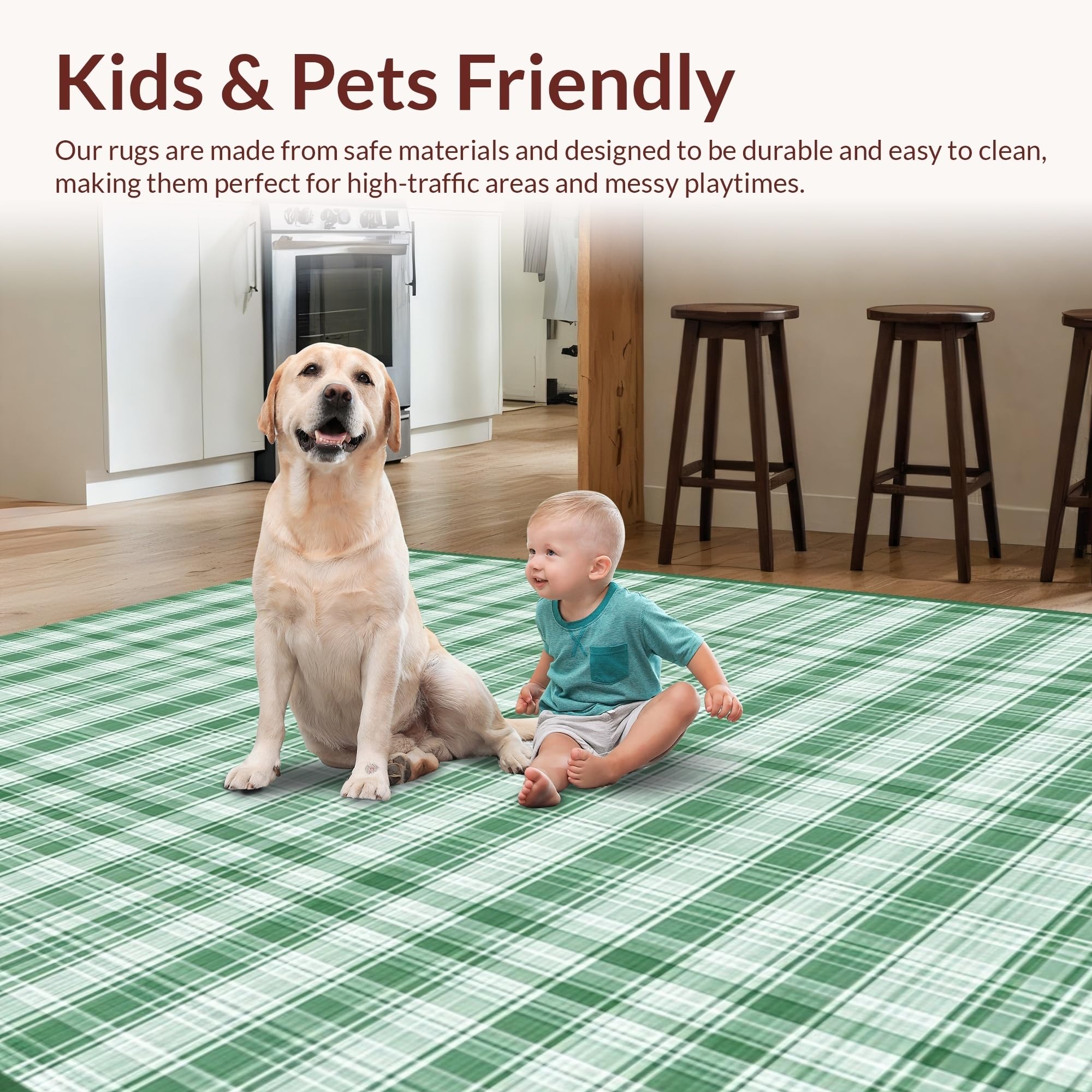 Ultra Soft Area Rug, Non Slip, Stain Resistant, Washable Area Rugs for Living Room, Bedroom, Minimalist Cozy Sage Tiled Aesthetic(Green) Overview: