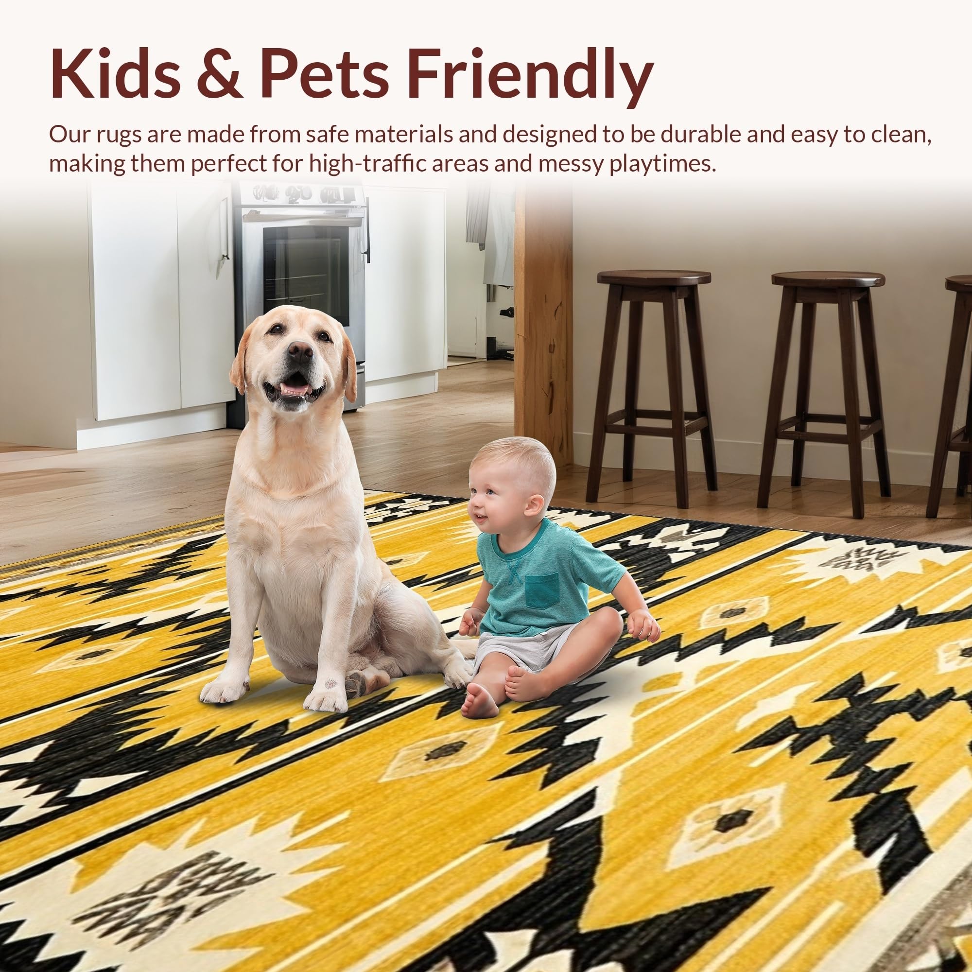 Ultra Soft Area Rug, Non Slip, Stain Resistant, Washable Area Rugs for Living Room, Bedroom, Minimalist Cream and Brown Textures(Yellow) Overview: