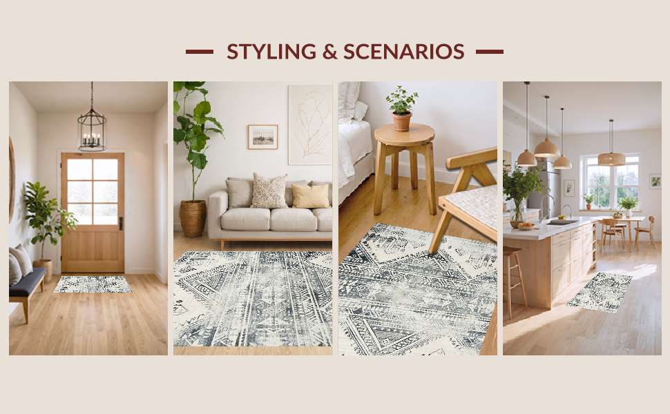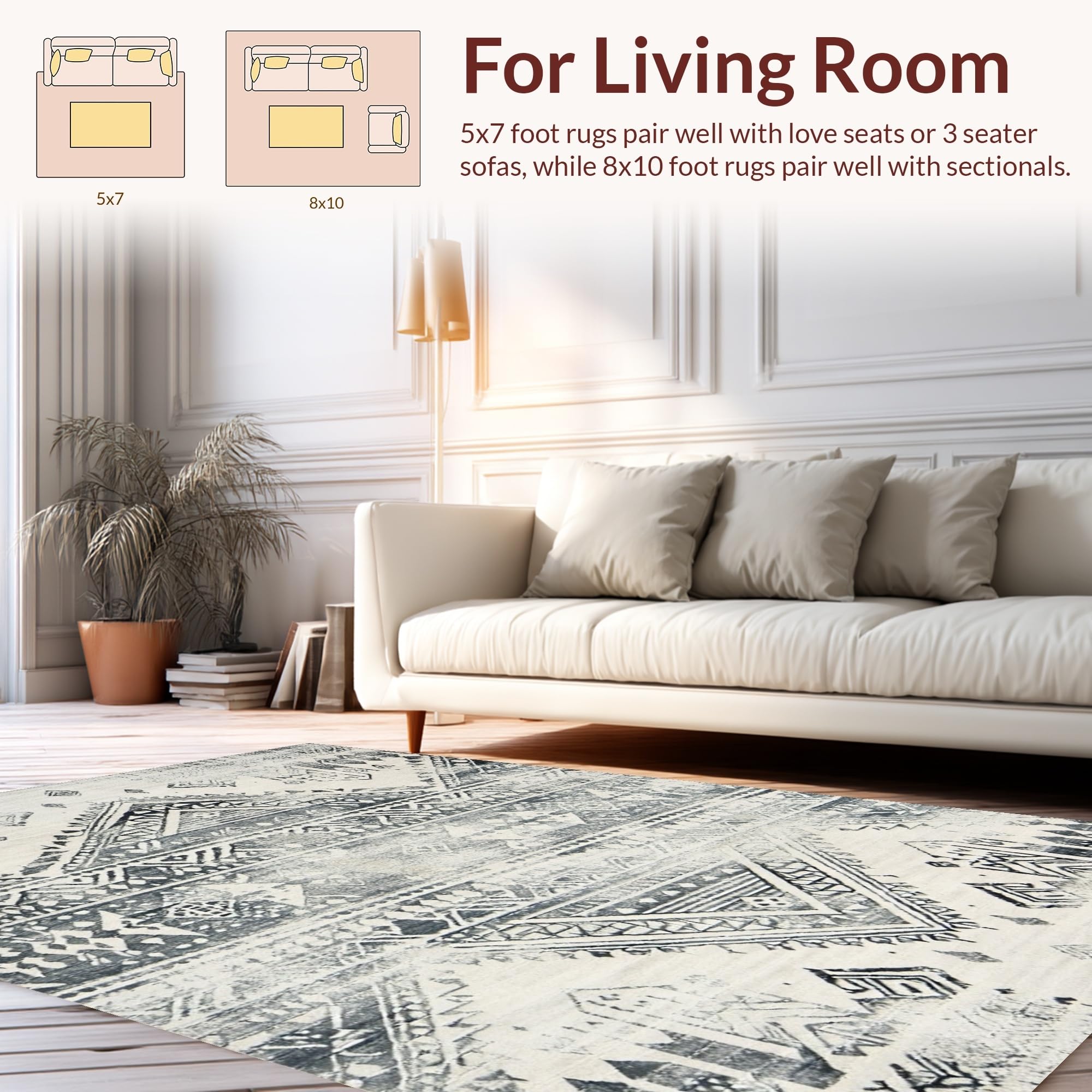 Ultra Soft Area Rug, Non Slip, Stain Resistant, Washable Area Rugs for Living Room, Bedroom, Minimalist Cream and Grey Fusion(Gray) Overview: