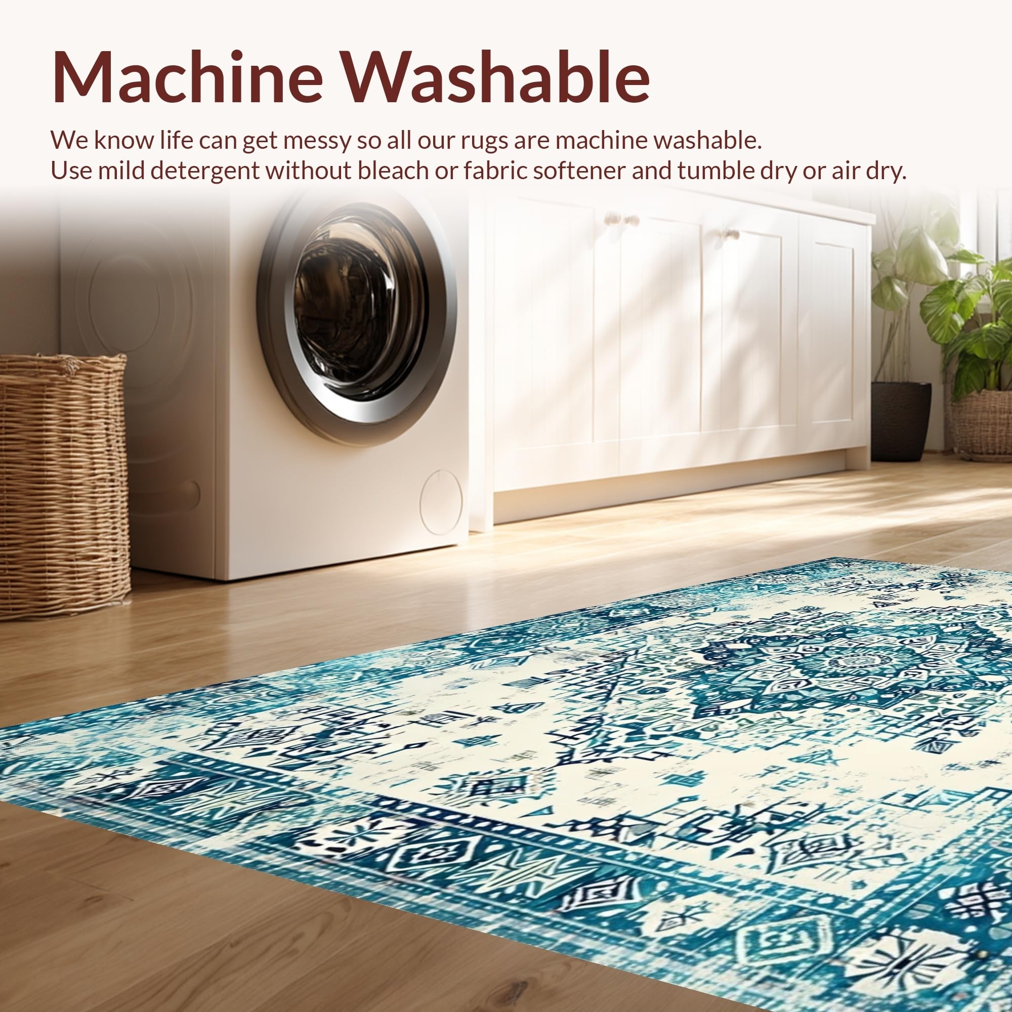- Machine Washable: Our rugs can be easily thrown in the wash machine.