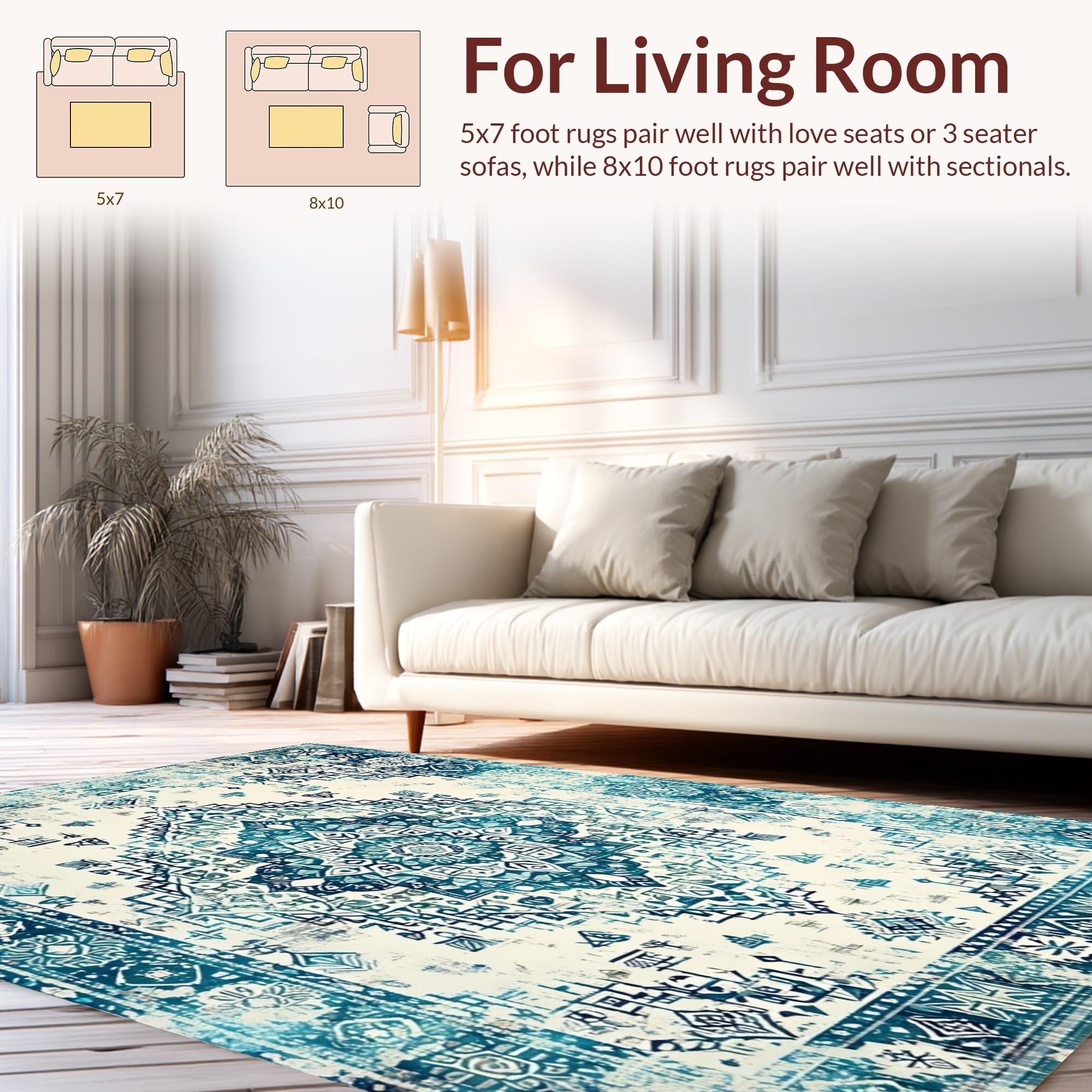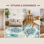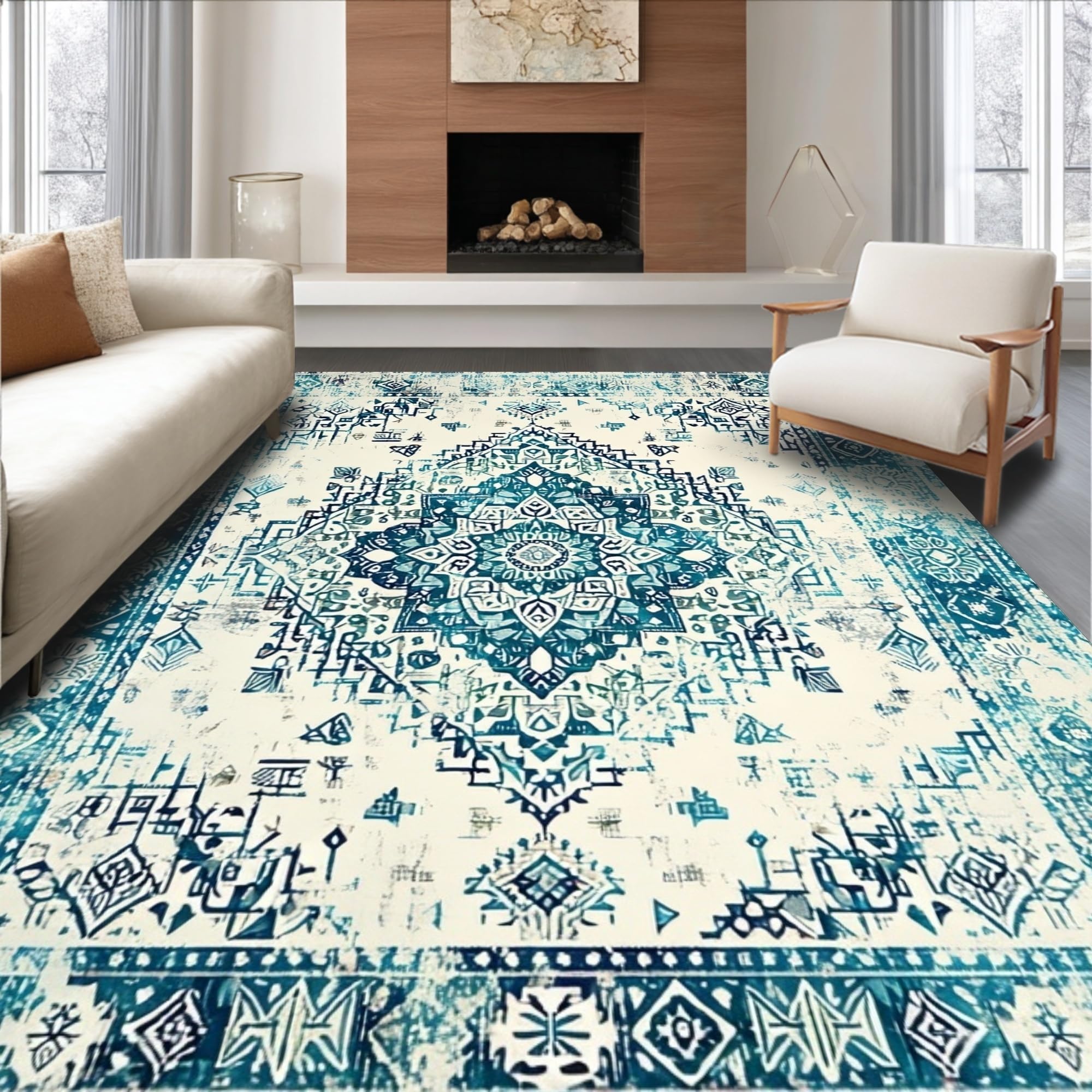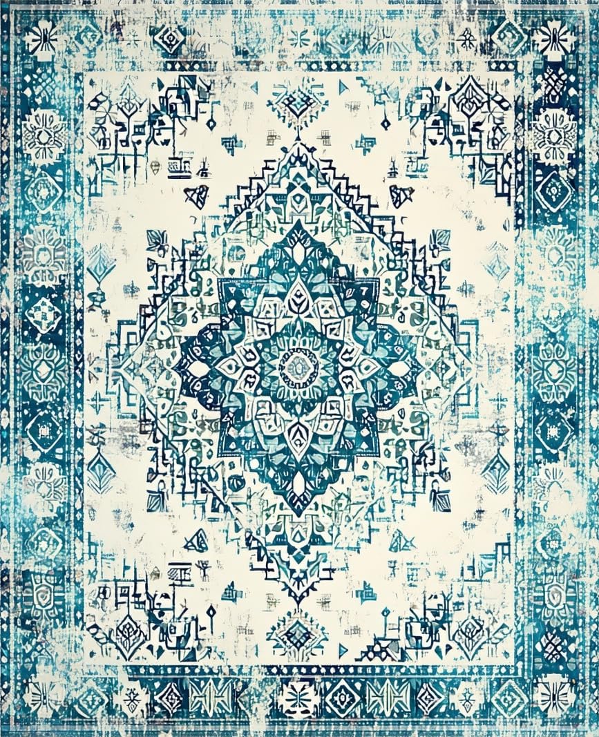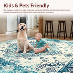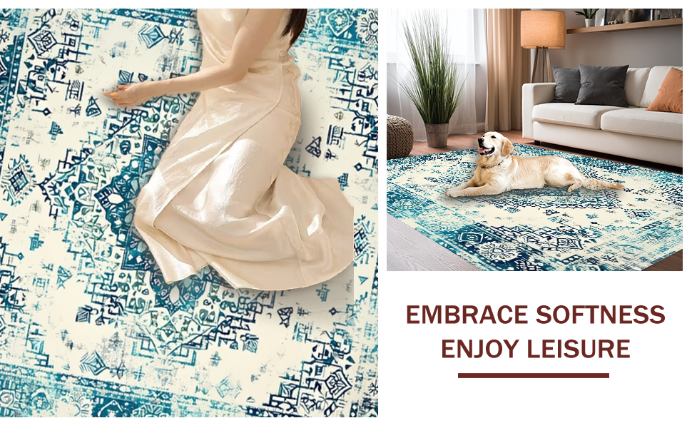 Ultra Soft Area Rug, Non Slip, Stain Resistant, Washable Area Rugs for Living Room, Bedroom, Minimalist Cream and Teal Contrast(Blue) Overview: