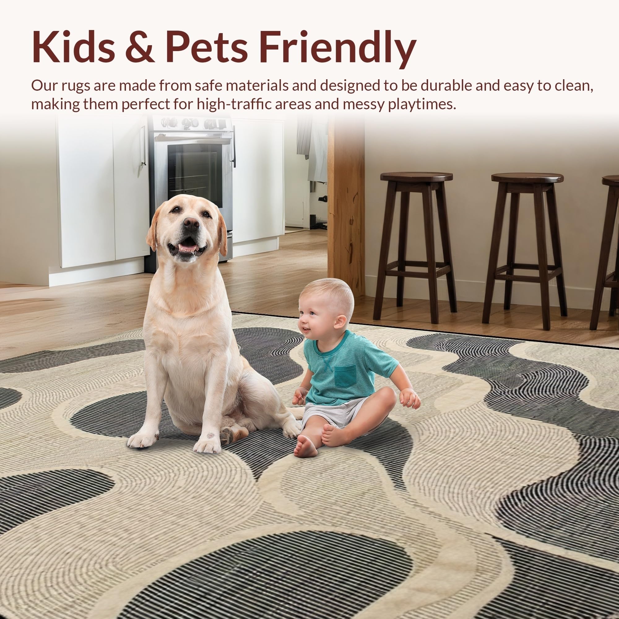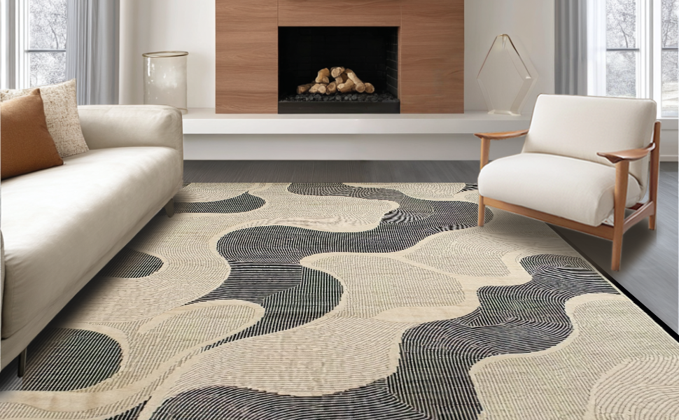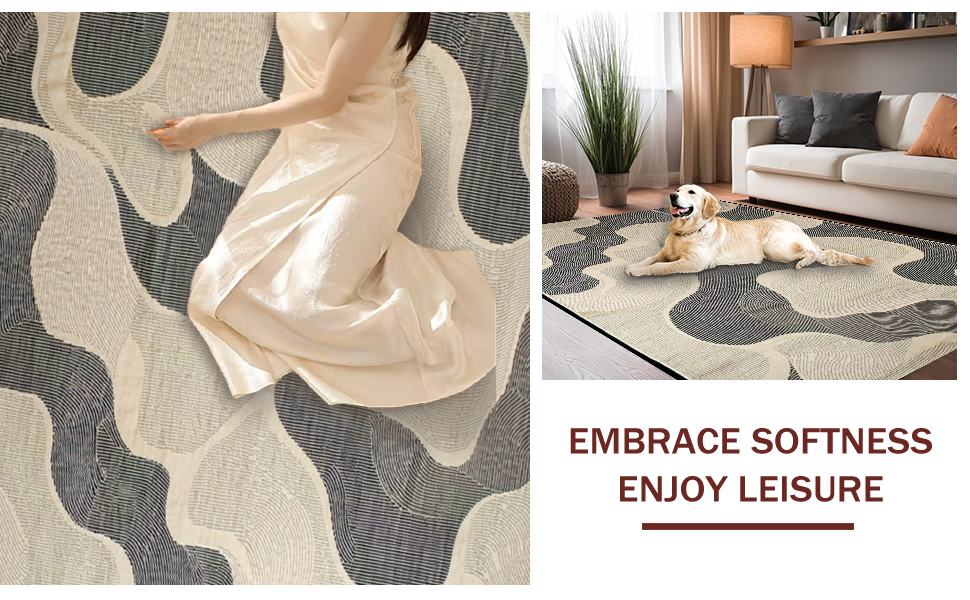 Ultra Soft Area Rug, Non Slip, Stain Resistant, Washable Area Rugs for Living Room, Bedroom, Minimalist Creamy Textured Visuals(Beige) Overview: