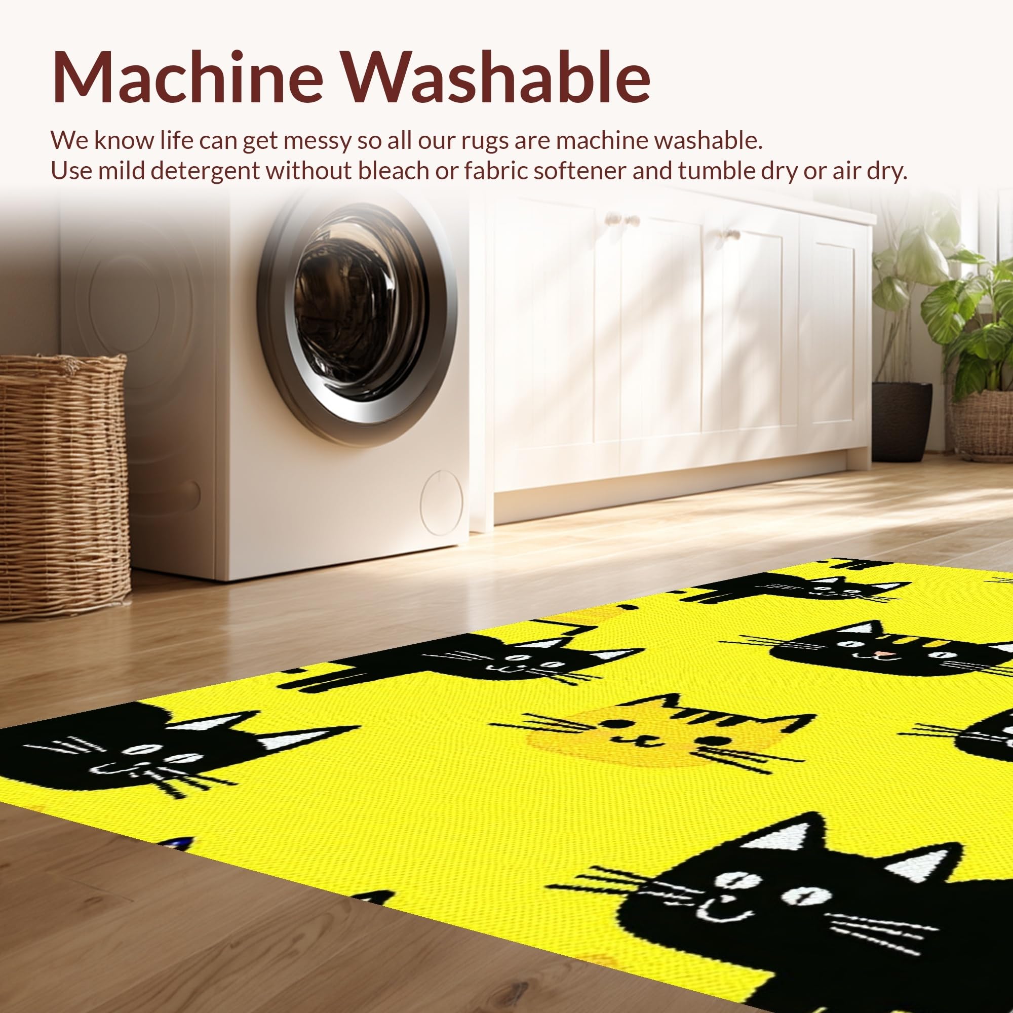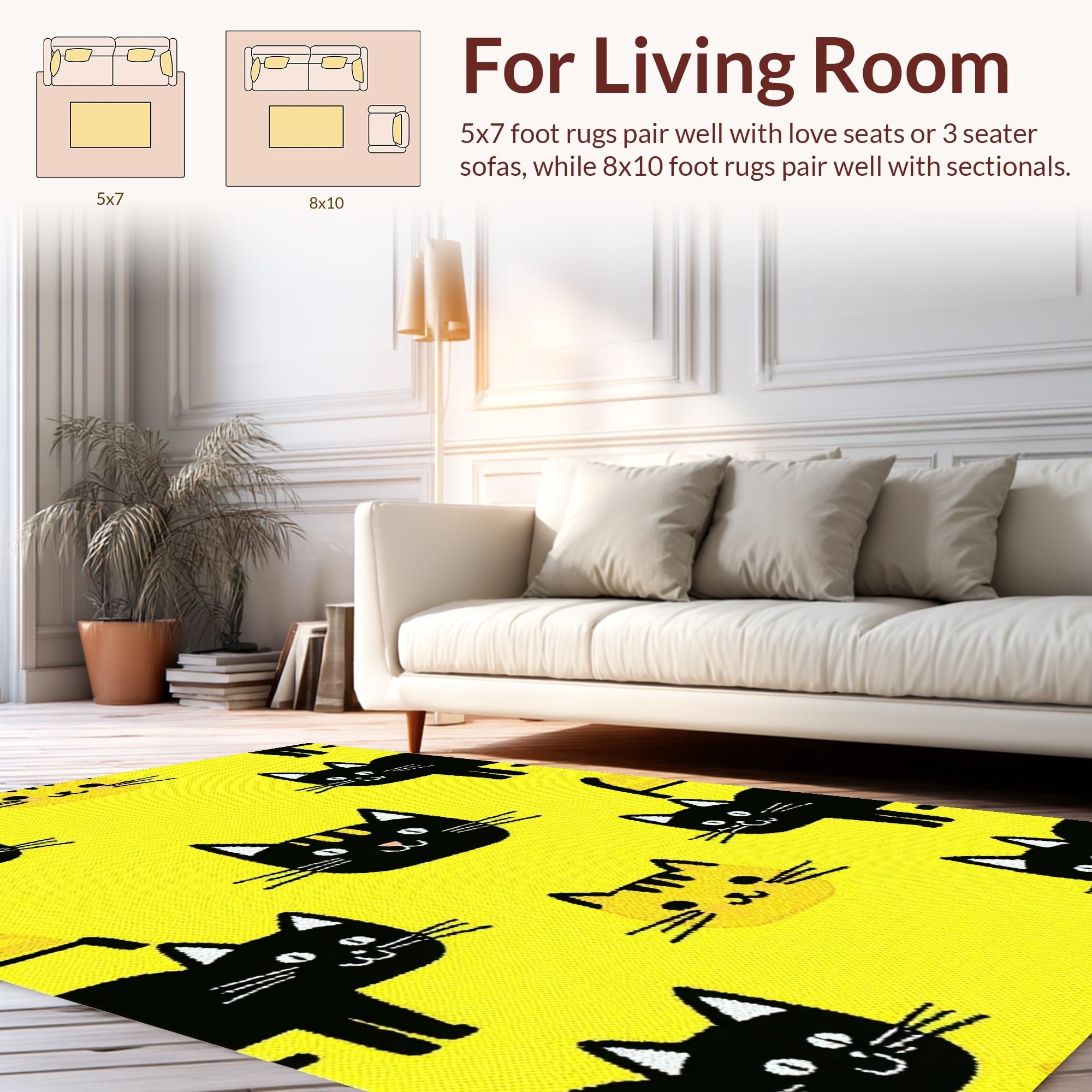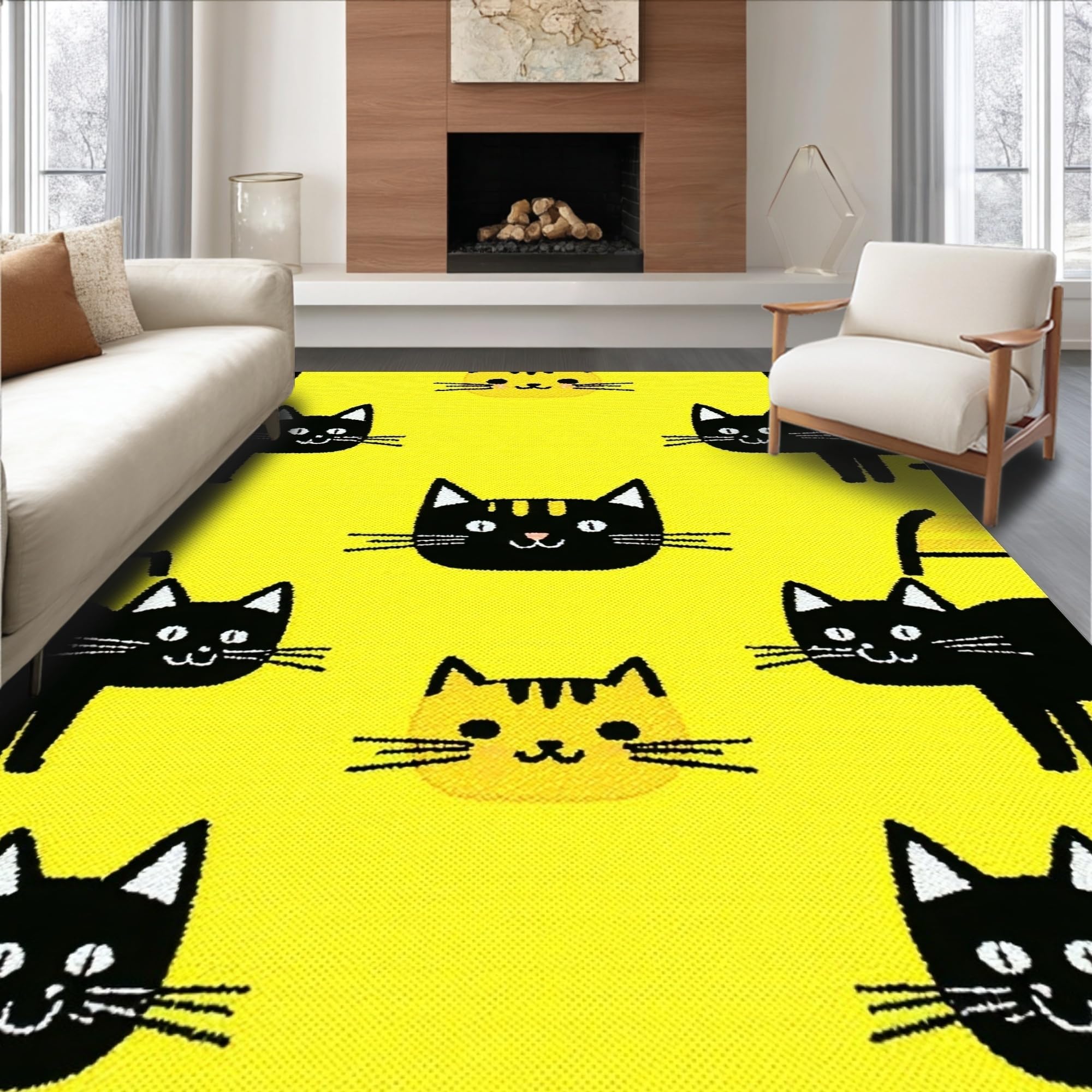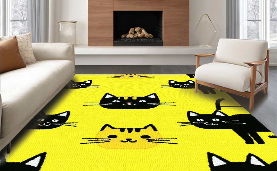 Ultra Soft Area Rug, Non Slip, Stain Resistant, Washable Area Rugs for Living Room, Bedroom, Minimalist Cute Feline Aesthetic(Yellow) Overview: