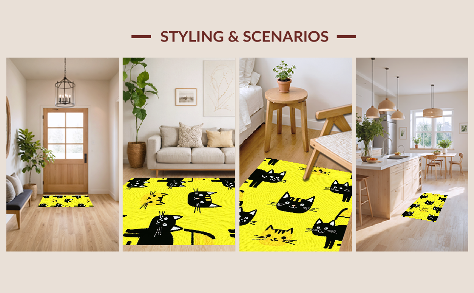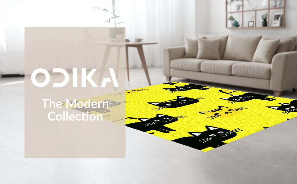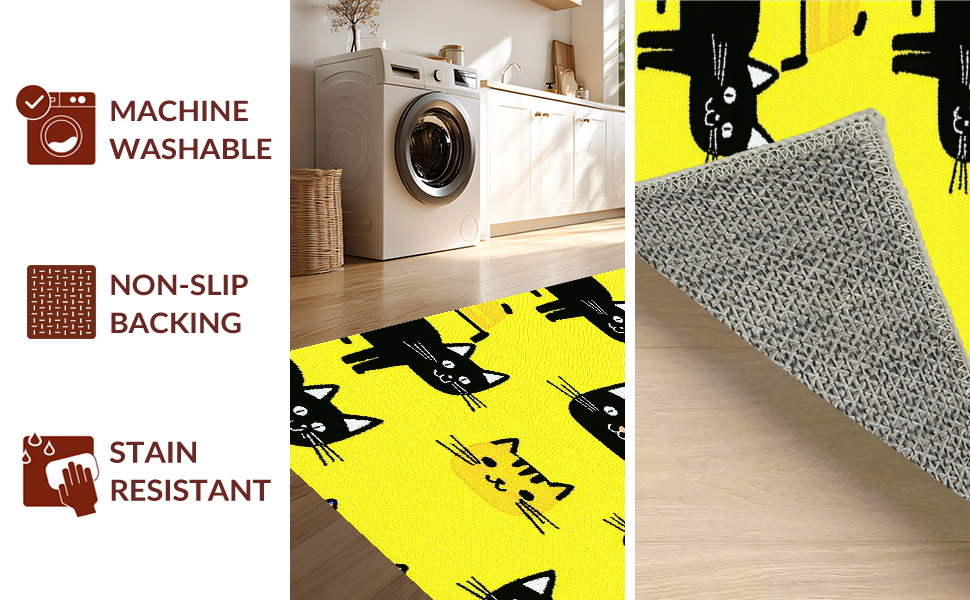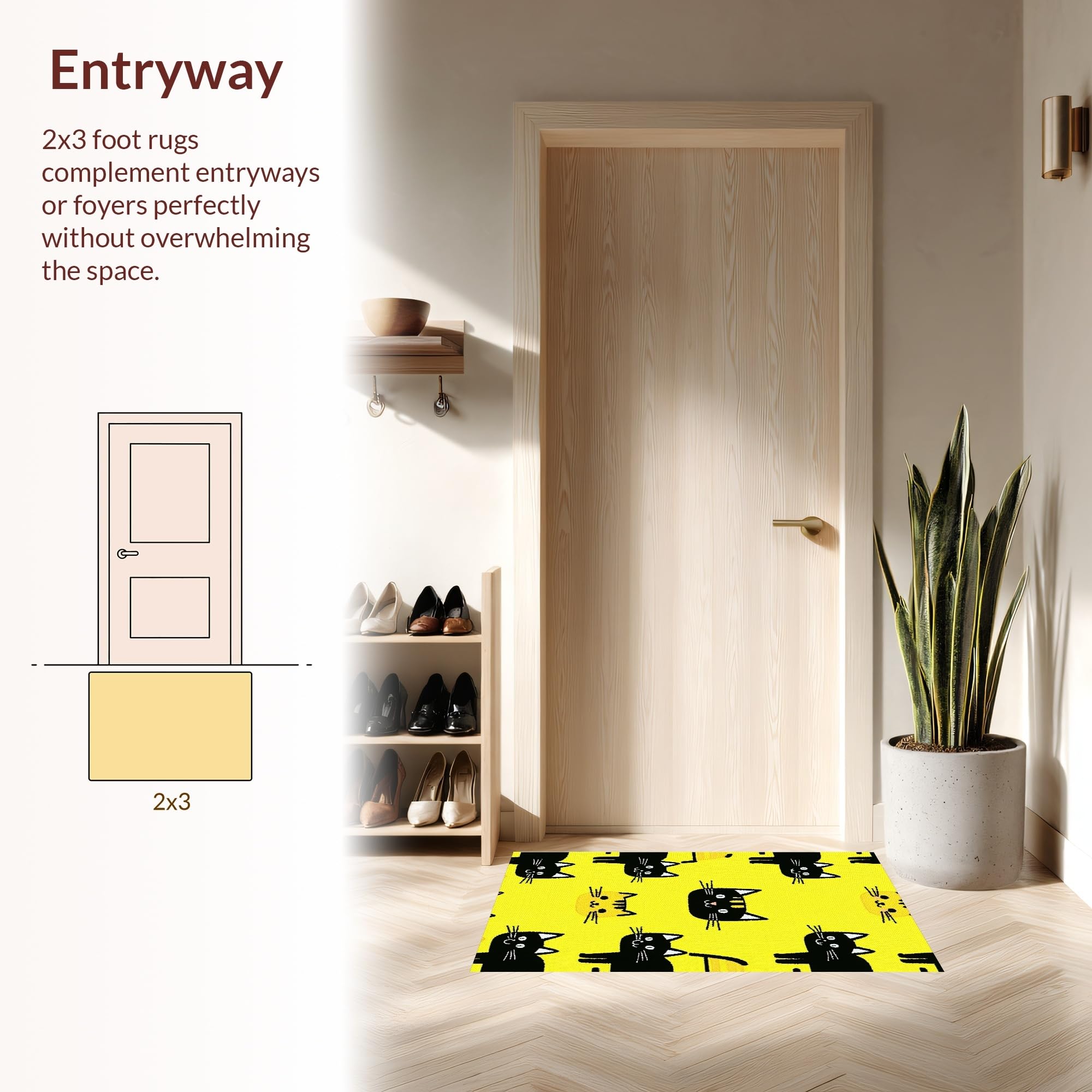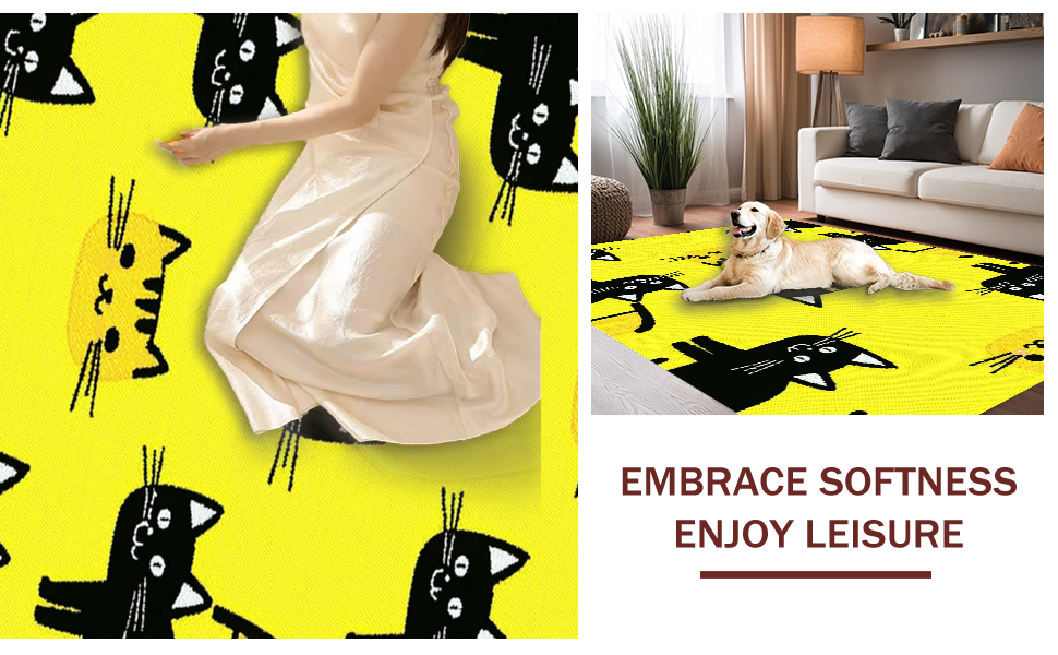 Ultra Soft Area Rug, Non Slip, Stain Resistant, Washable Area Rugs for Living Room, Bedroom, Minimalist Cute Feline Aesthetic(Yellow) Overview: