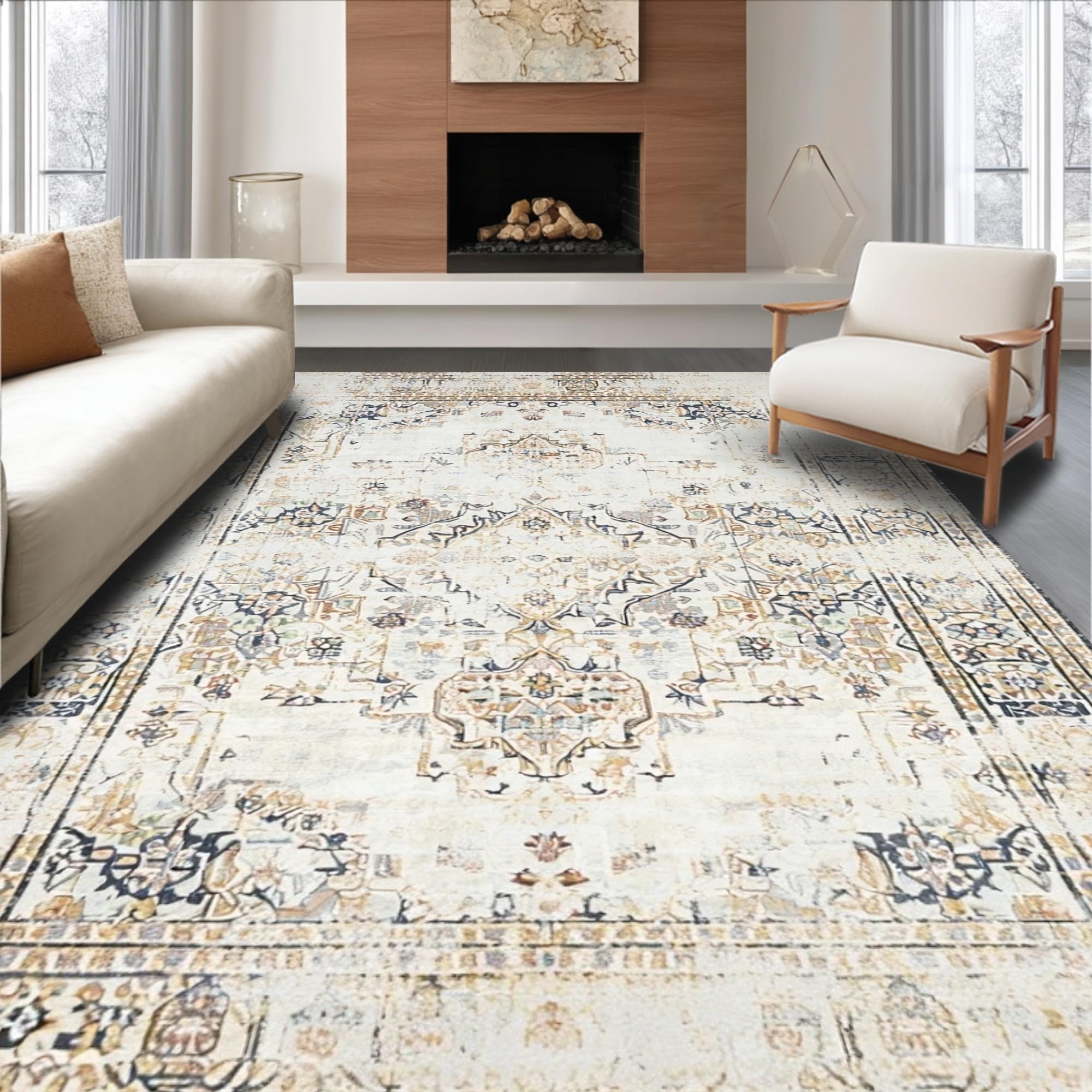 Ultra Soft Area Rug, Non Slip, Stain Resistant, Washable Area Rugs for Living Room, Bedroom, Minimalist Diamond Pattern Aesthetic(Beige) Overview: