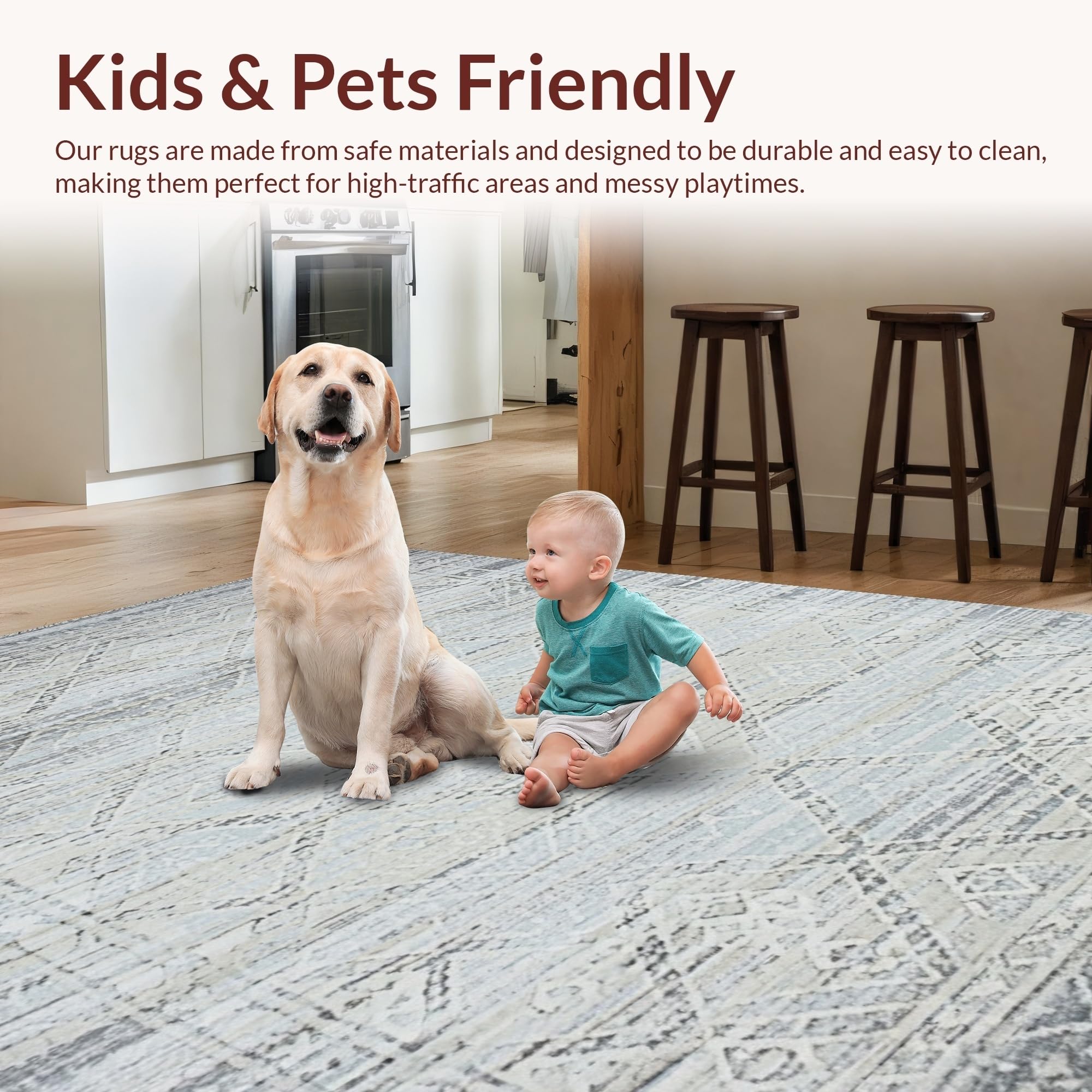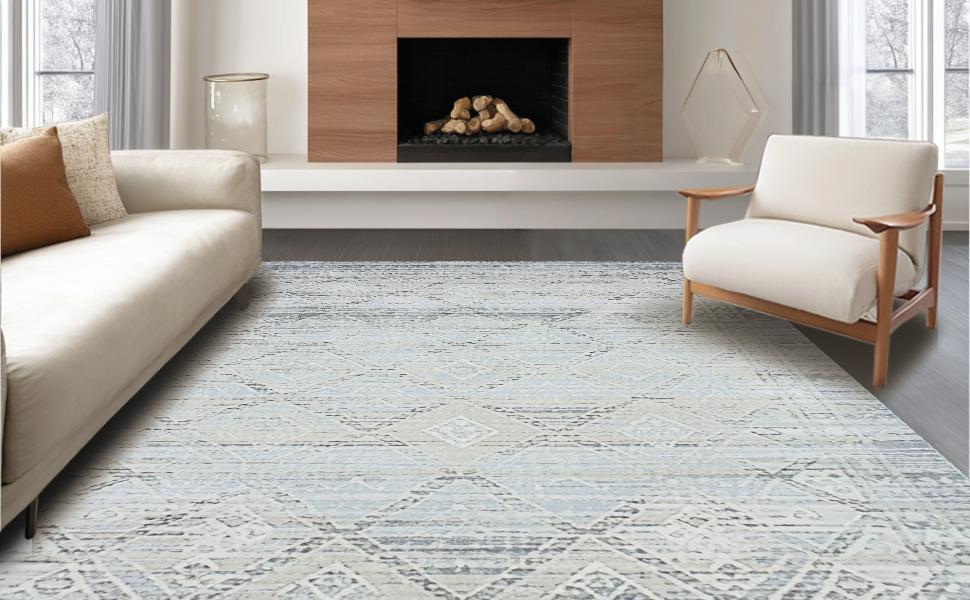 Ultra Soft Area Rug, Non Slip, Stain Resistant, Washable Area Rugs for Living Room, Bedroom, Minimalist Distressed Diamond Artwork(Gray) Overview: