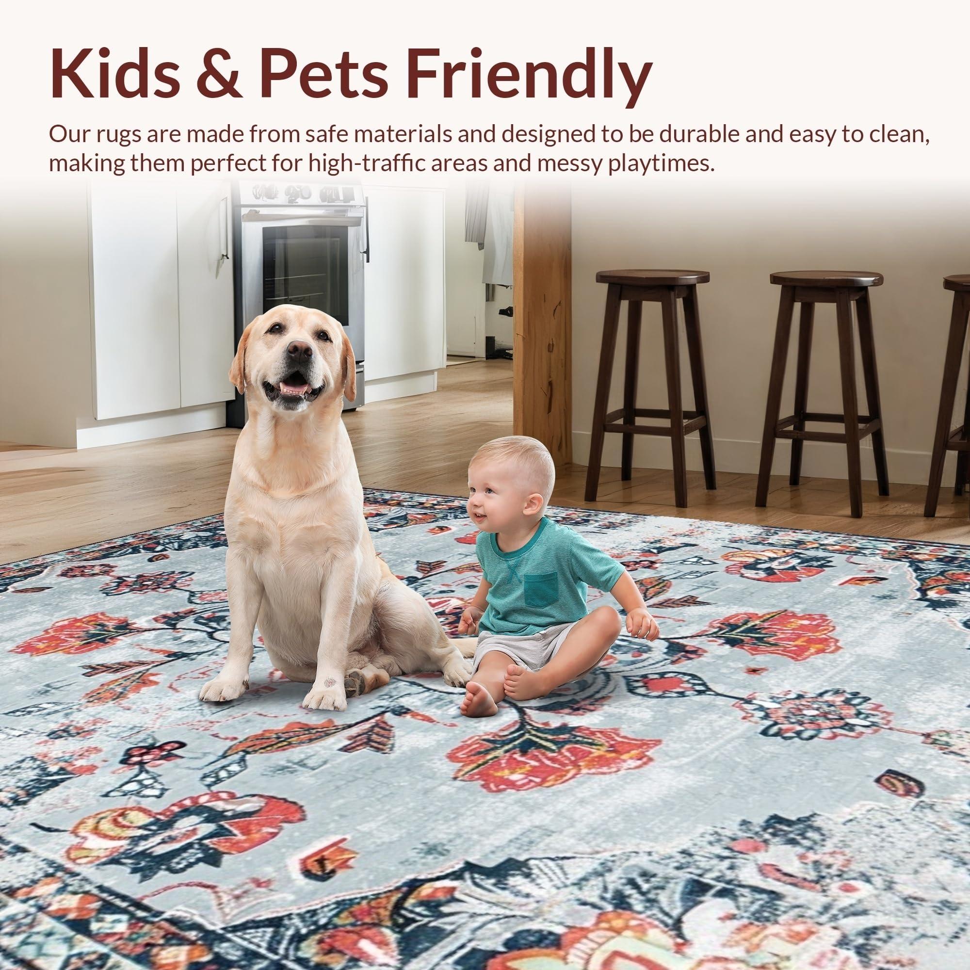 Ultra Soft Area Rug, Non Slip, Stain Resistant, Washable Area Rugs for Living Room, Bedroom, Minimalist Distressed Monochrome Theme(Gray) Overview: