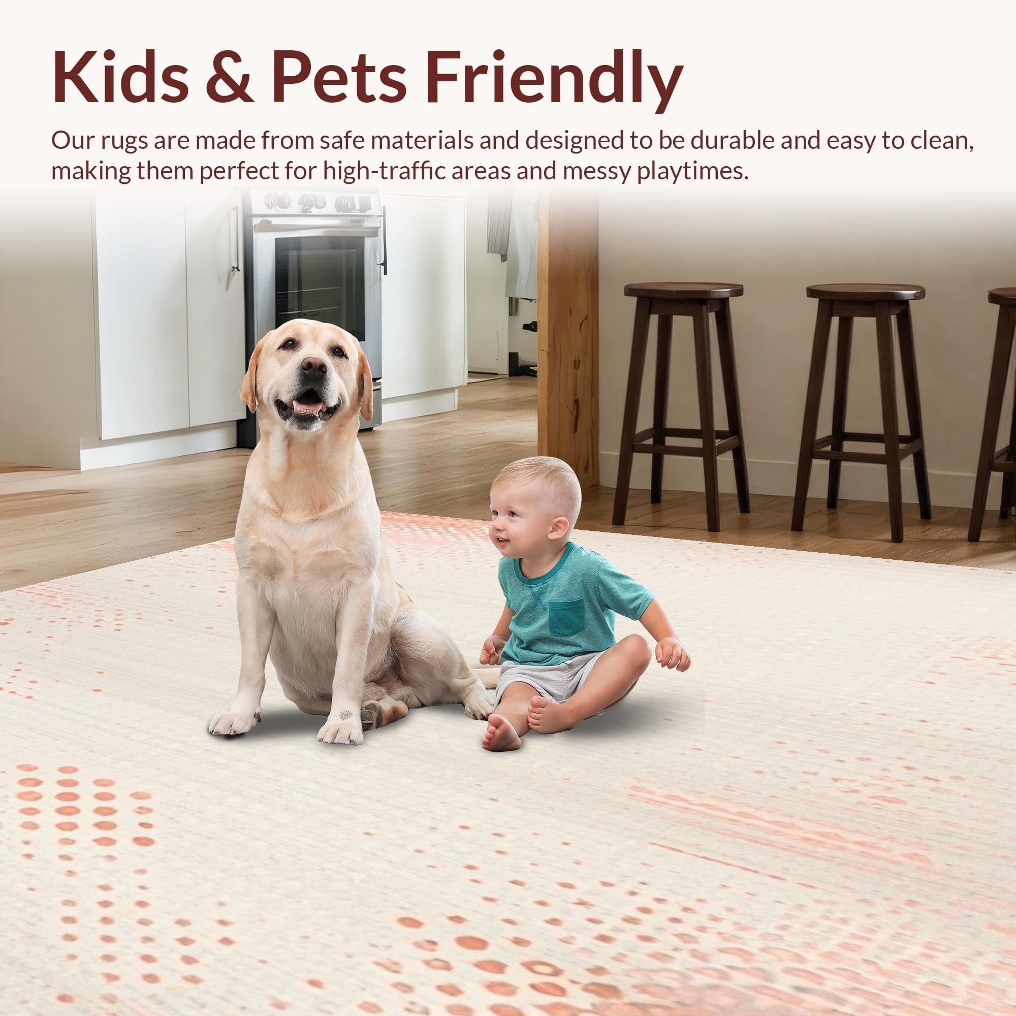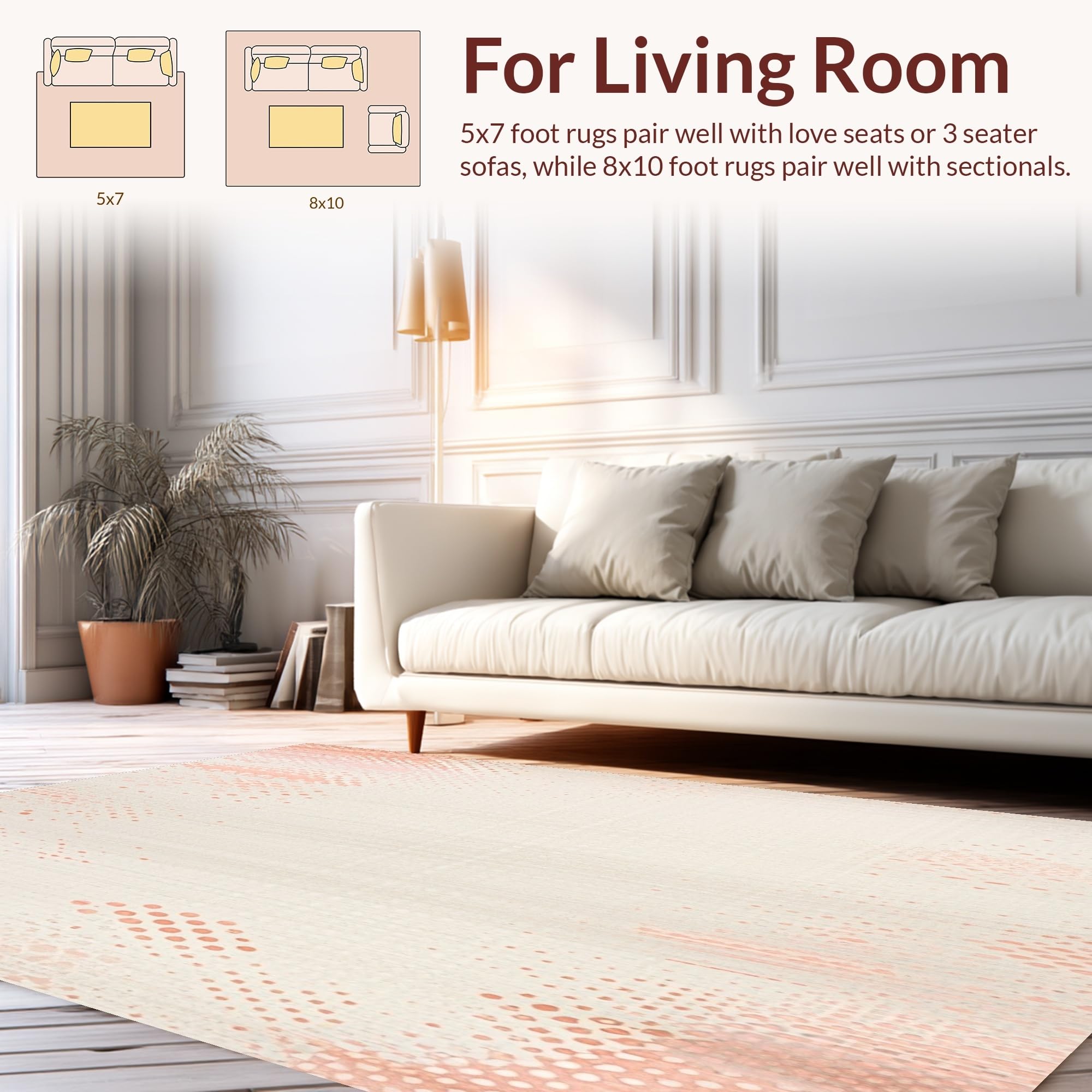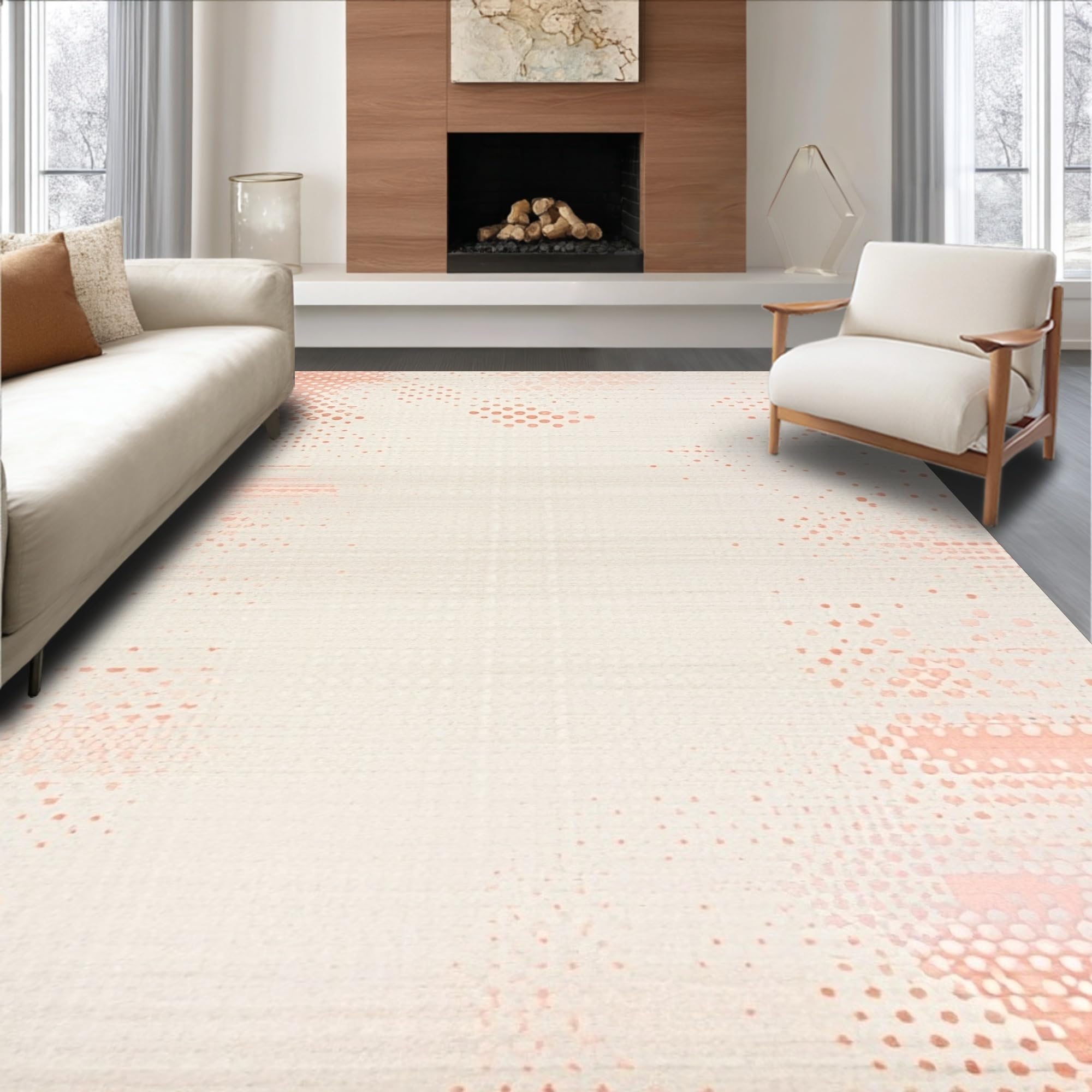 Ultra Soft Area Rug, Non Slip, Stain Resistant, Washable Area Rugs for Living Room, Bedroom, Minimalist Dotted Area Subtle Beige and Pink Spot(Beige) Overview: