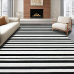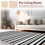 Ultra Soft Area Rug, Non Slip, Stain Resistant, Washable Area Rugs for Living Room, Bedroom, Minimalist Dual Tone Stripe Runner Carpet with Crisp Black and White Bands(Black) Overview: