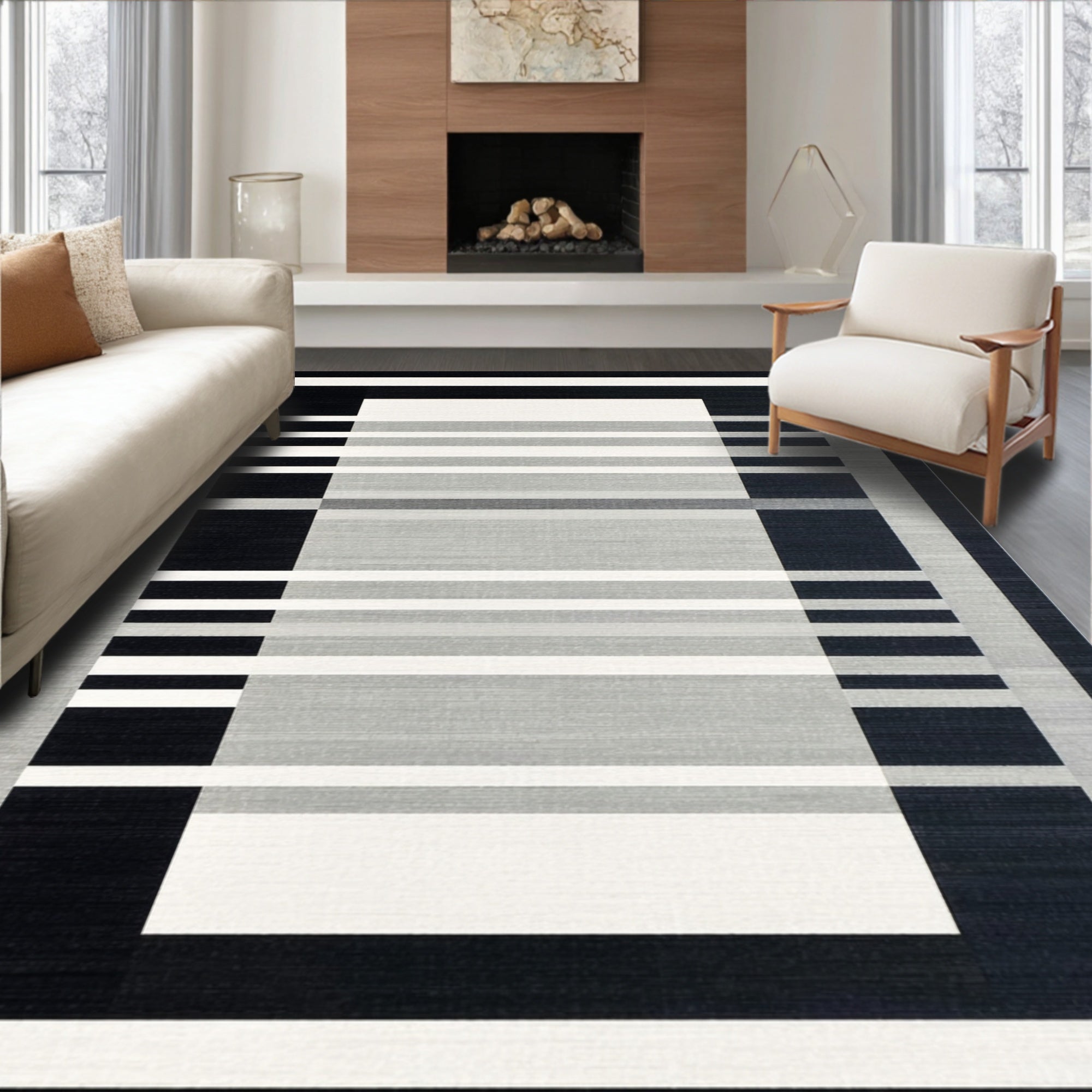 Ultra Soft Area Rug, Non Slip, Stain Resistant, Washable Area Rugs for Living Room, Bedroom, Minimalist Dual-Tone Striped Floor Covering with Absorbent Non-Slip Texture(Gray) Overview: