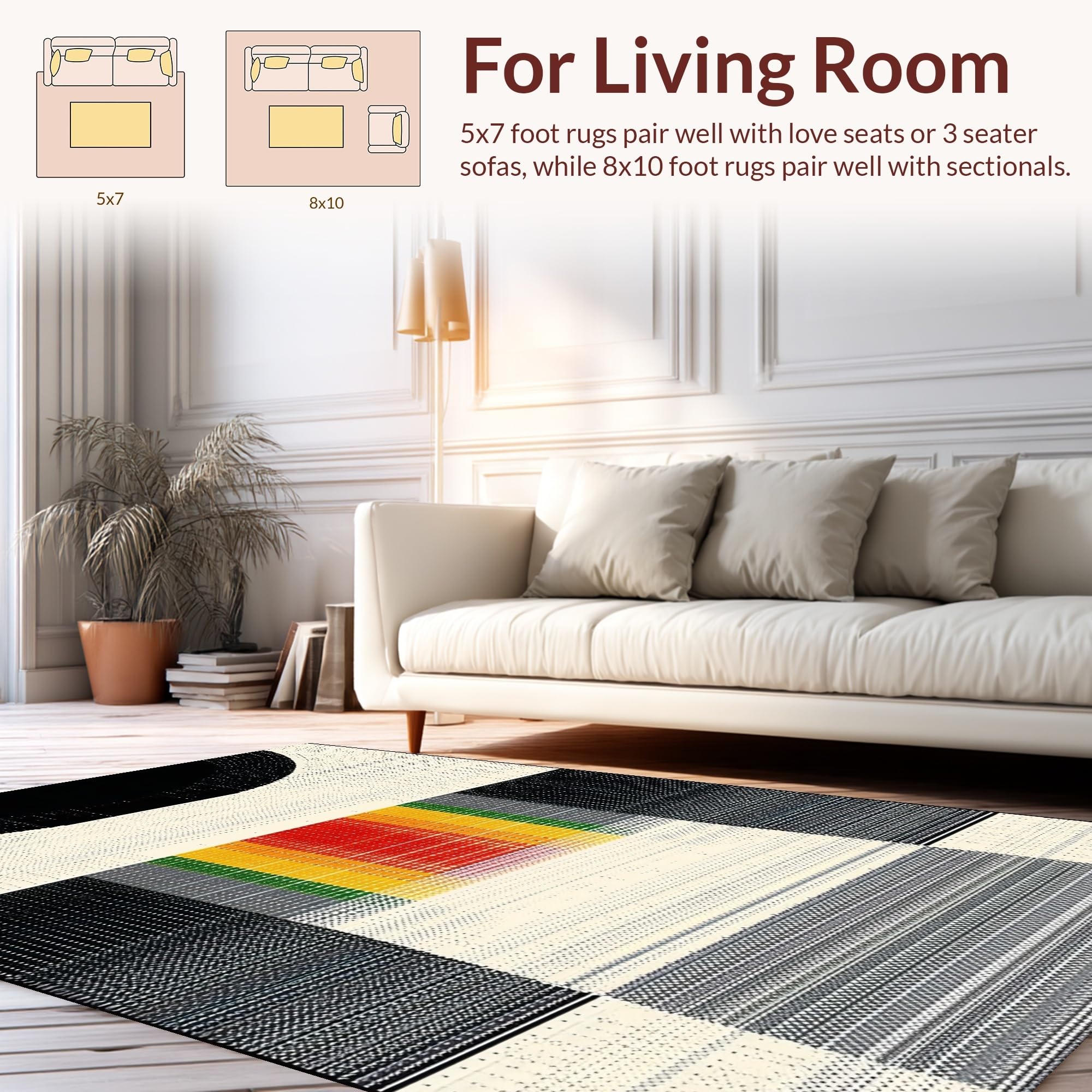 Ultra Soft Area Rug, Non Slip, Stain Resistant, Washable Area Rugs for Living Room, Bedroom, Minimalist Dynamic Shape Layout(Gray) Overview: