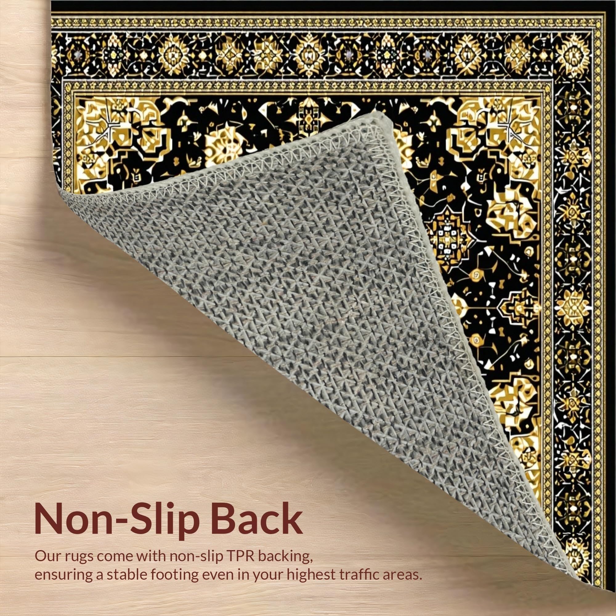 Ultra Soft Area Rug, Non Slip, Stain Resistant, Washable Area Rugs for Living Room, Bedroom, Minimalist Earth Tones Trellis Style(Black) Overview:
