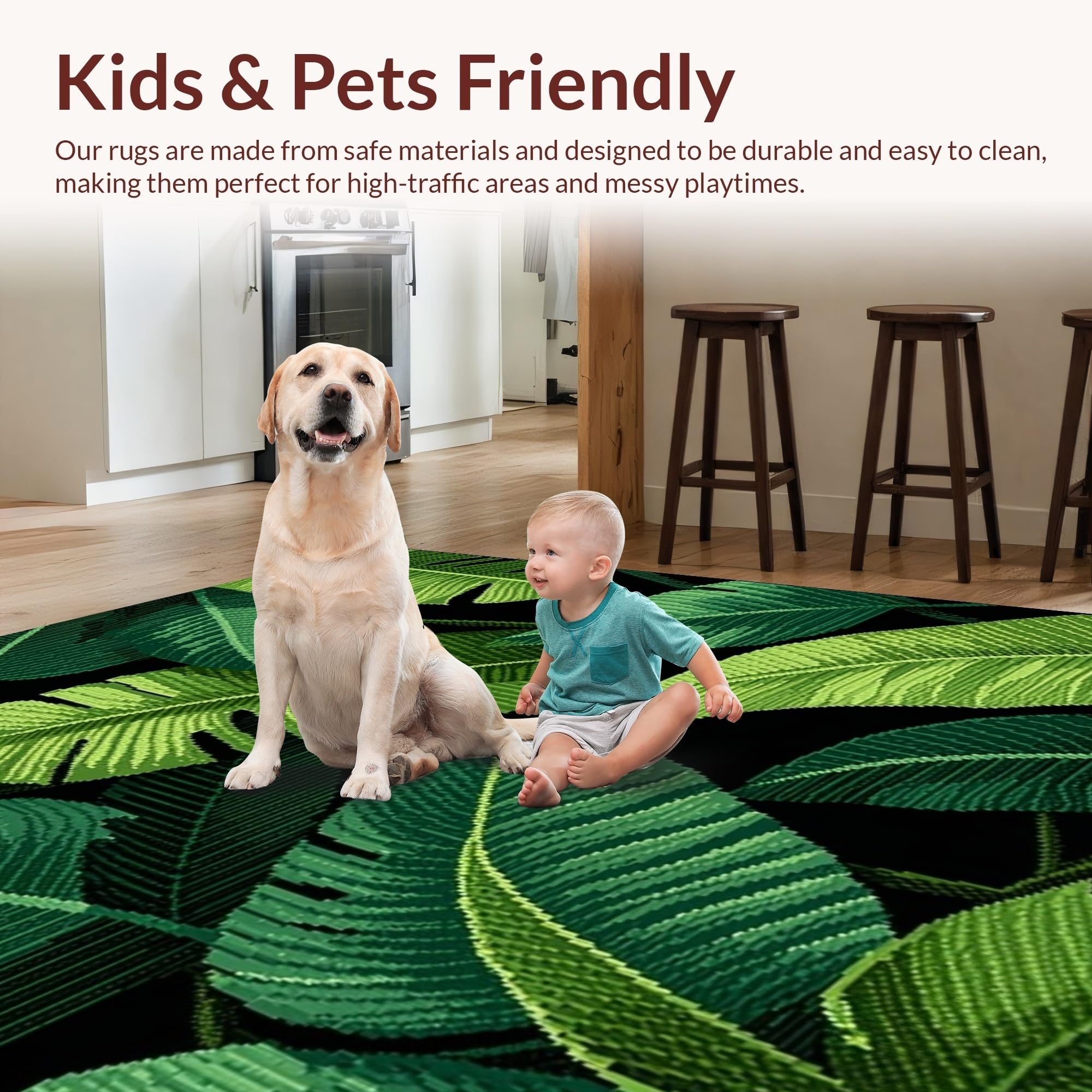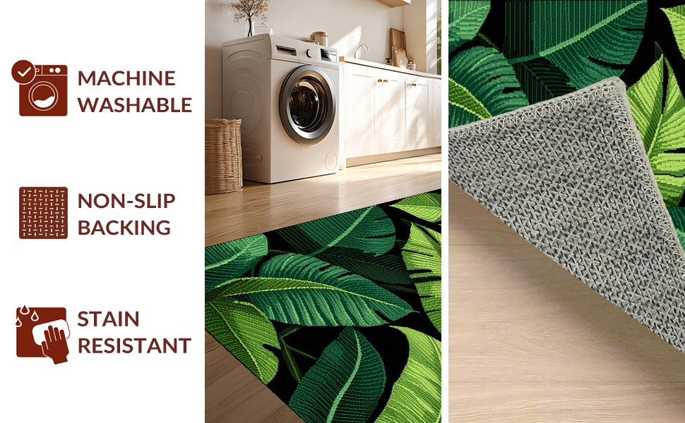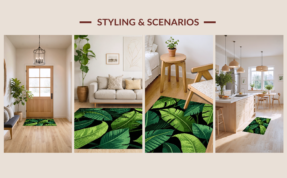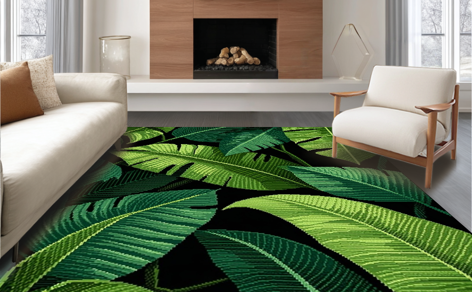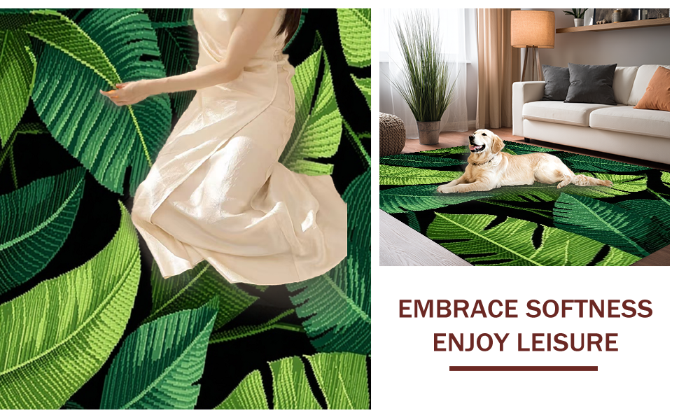 Ultra Soft Area Rug, Non Slip, Stain Resistant, Washable Area Rugs for Living Room, Bedroom, Minimalist Earthy Leaf Decor(Green) Overview: