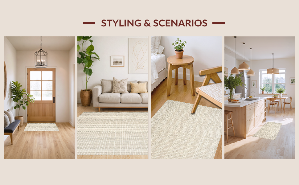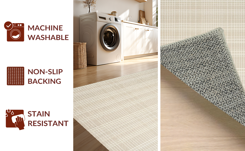 Ultra Soft Area Rug, Non Slip, Stain Resistant, Washable Area Rugs for Living Room, Bedroom, Minimalist Earthy Soft Stripe Design(Beige) Overview: