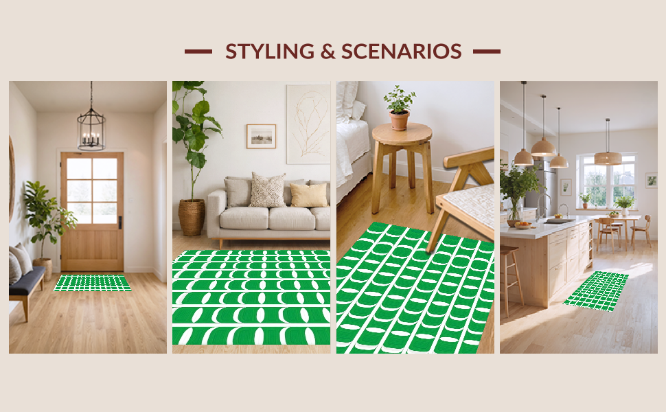 Ultra Soft Area Rug, Non Slip, Stain Resistant, Washable Area Rugs for Living Room, Bedroom, Minimalist Earthy Toned Patterns(Green) Overview: