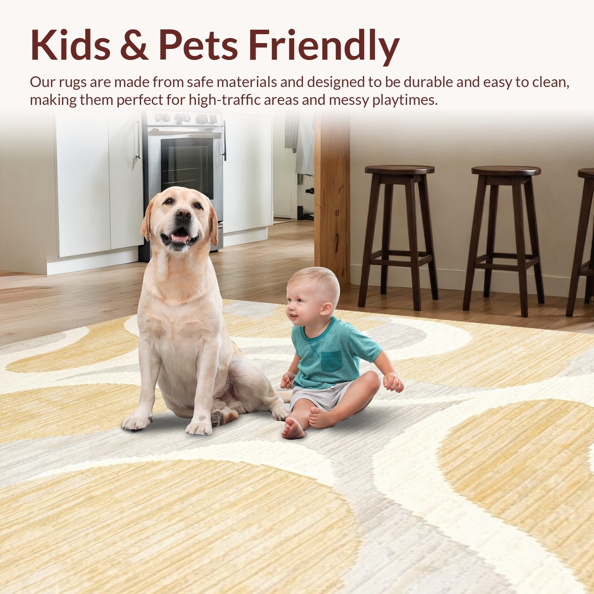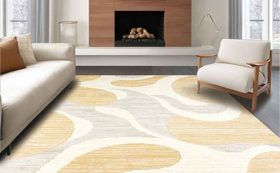 Ultra Soft Area Rug, Non Slip, Stain Resistant, Washable Area Rugs for Living Room, Bedroom, Minimalist Earthy Toned Waves(Beige) Overview: