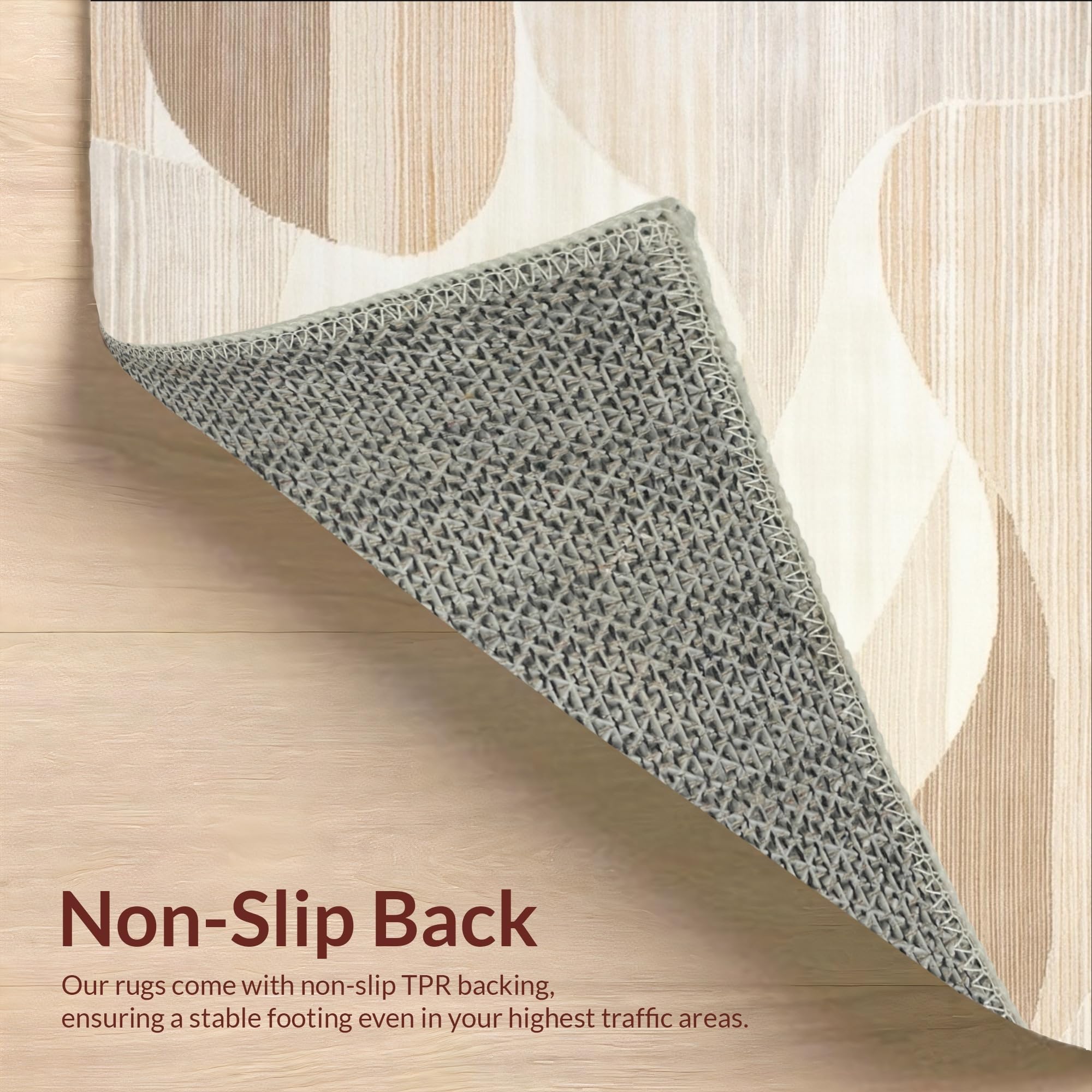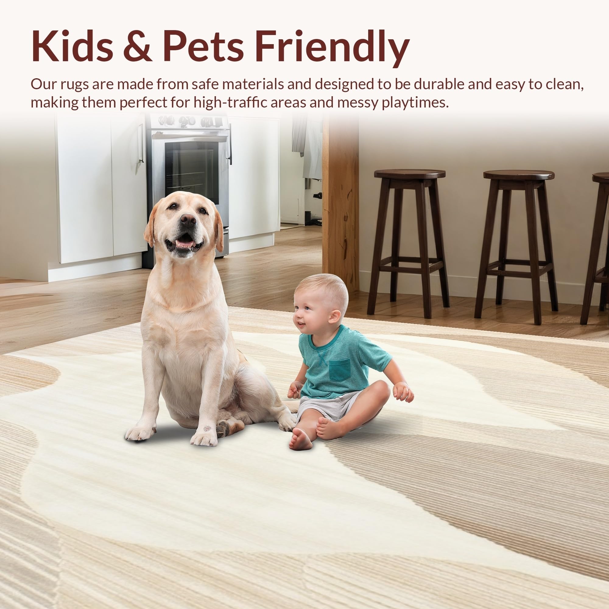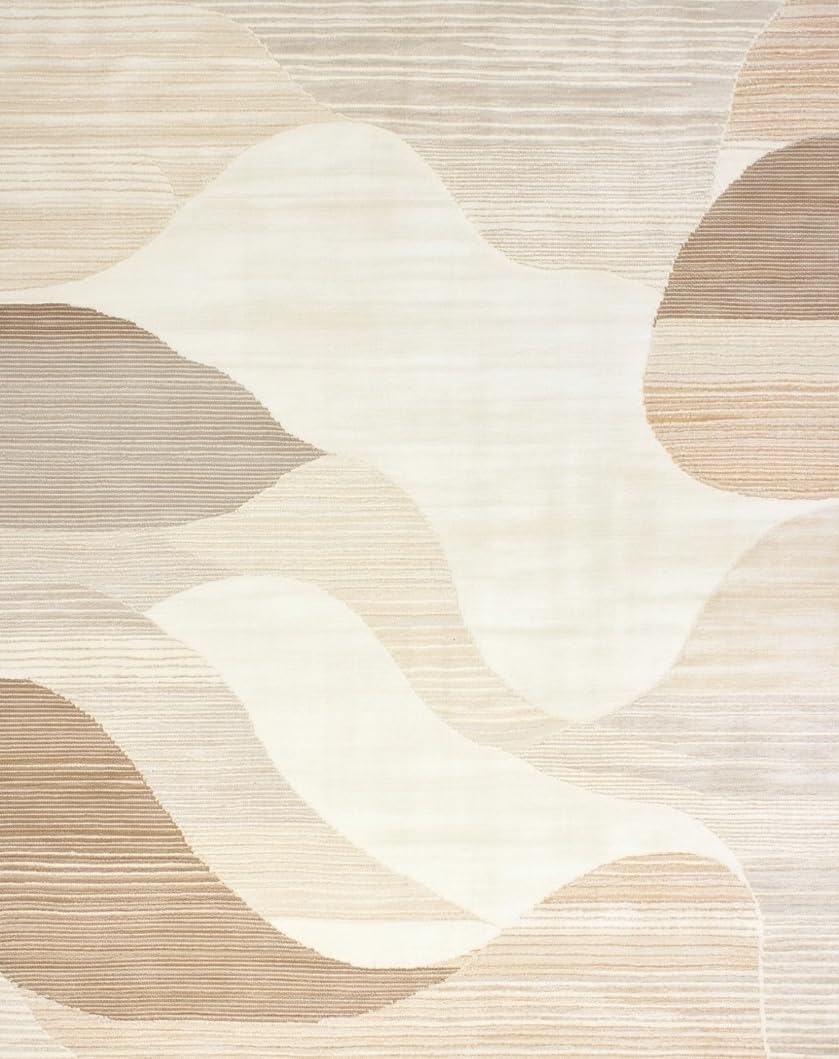 Ultra Soft Area Rug, Non Slip, Stain Resistant, Washable Area Rugs for Living Room, Bedroom, Minimalist Featuring Beige Tones and Abstract Linear Wave Design(Beige) Overview: