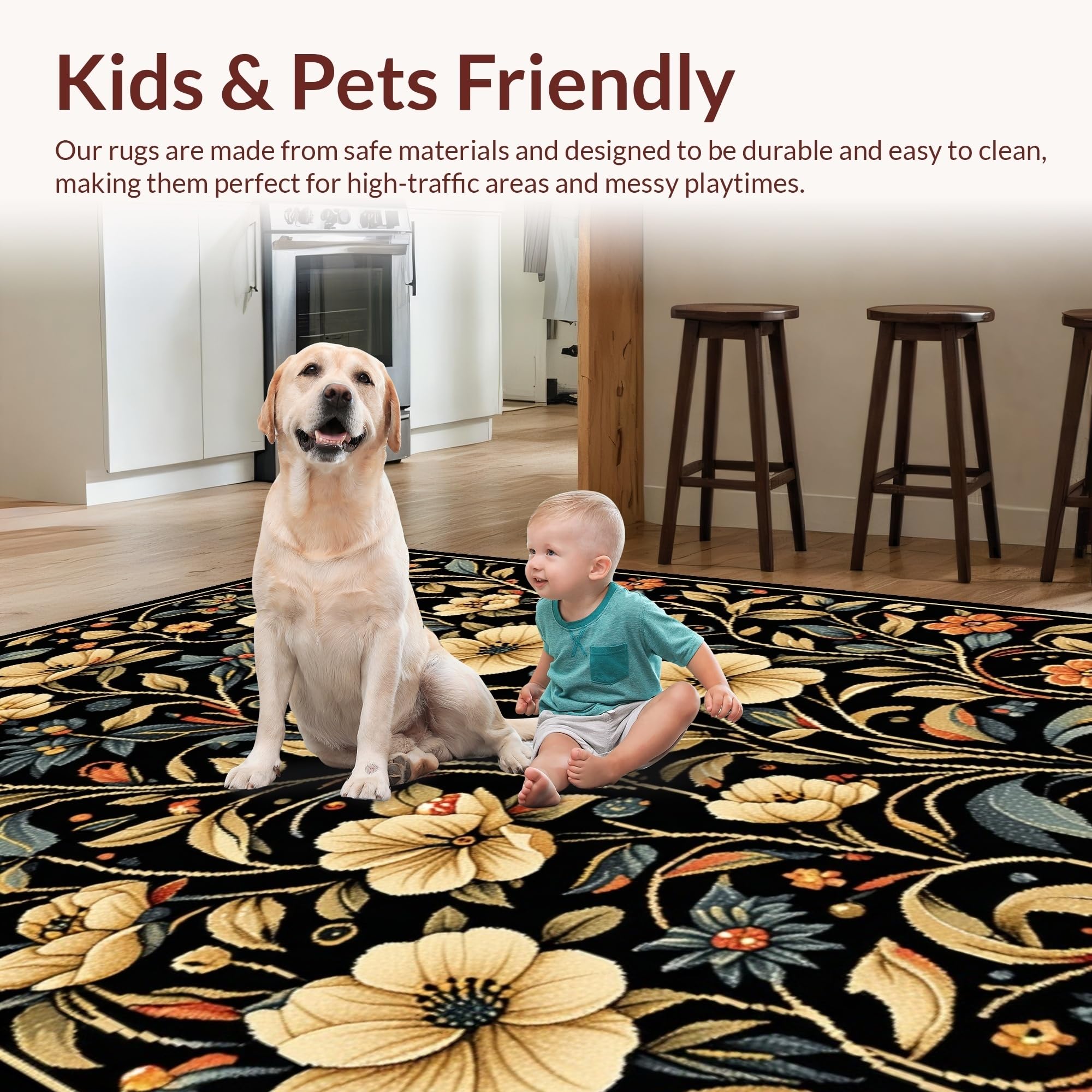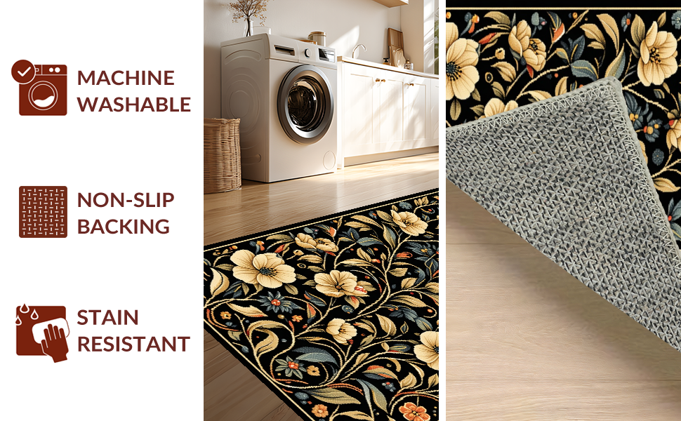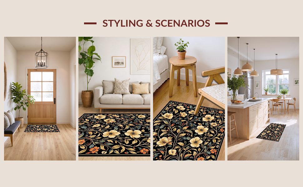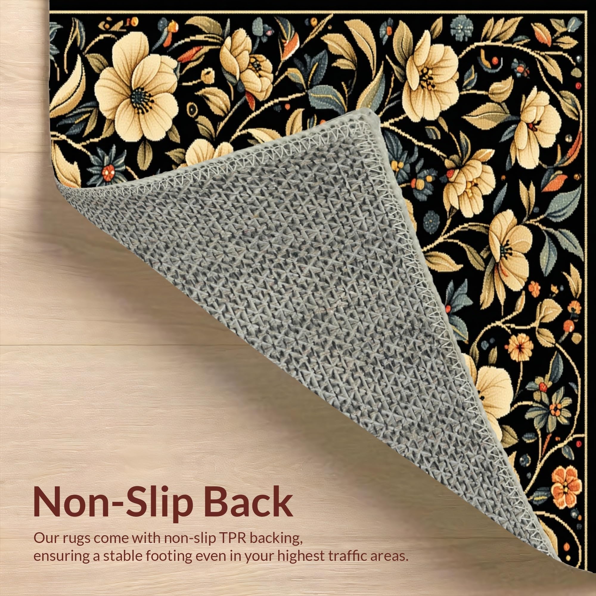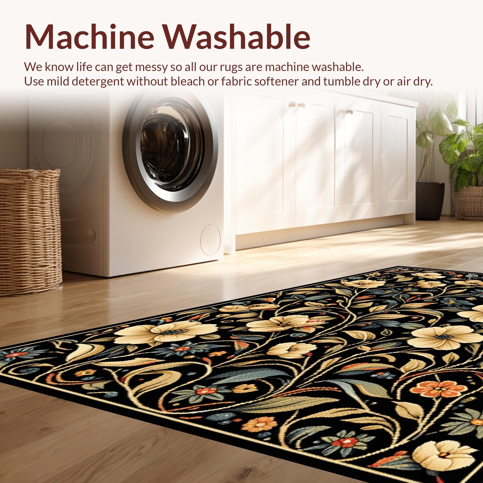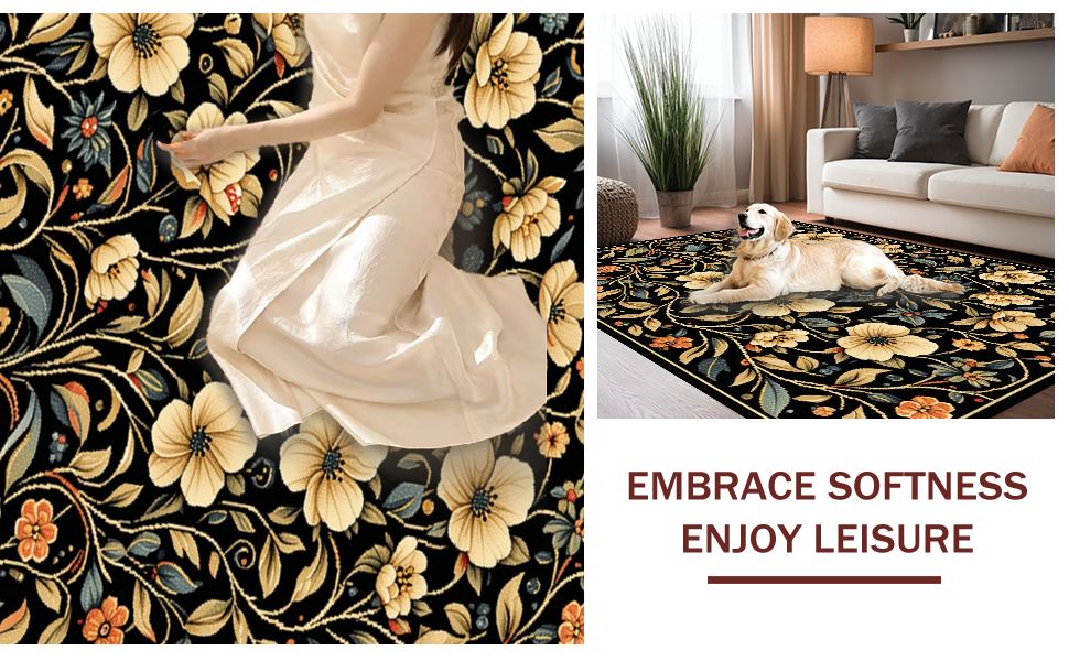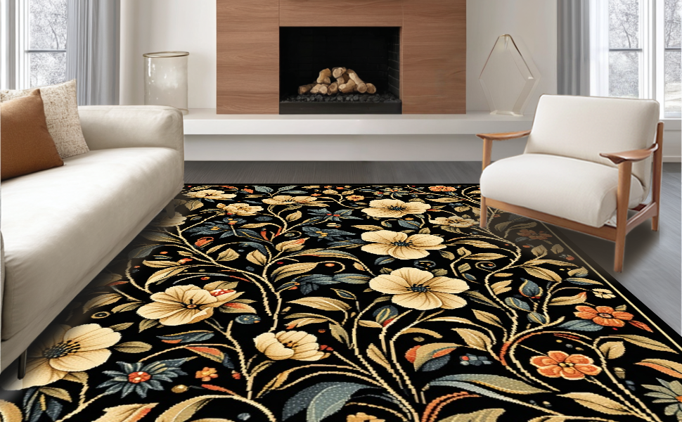 Ultra Soft Area Rug, Non Slip, Stain Resistant, Washable Area Rugs for Living Room, Bedroom, Minimalist Floral Elegance in Black(Black) Overview: