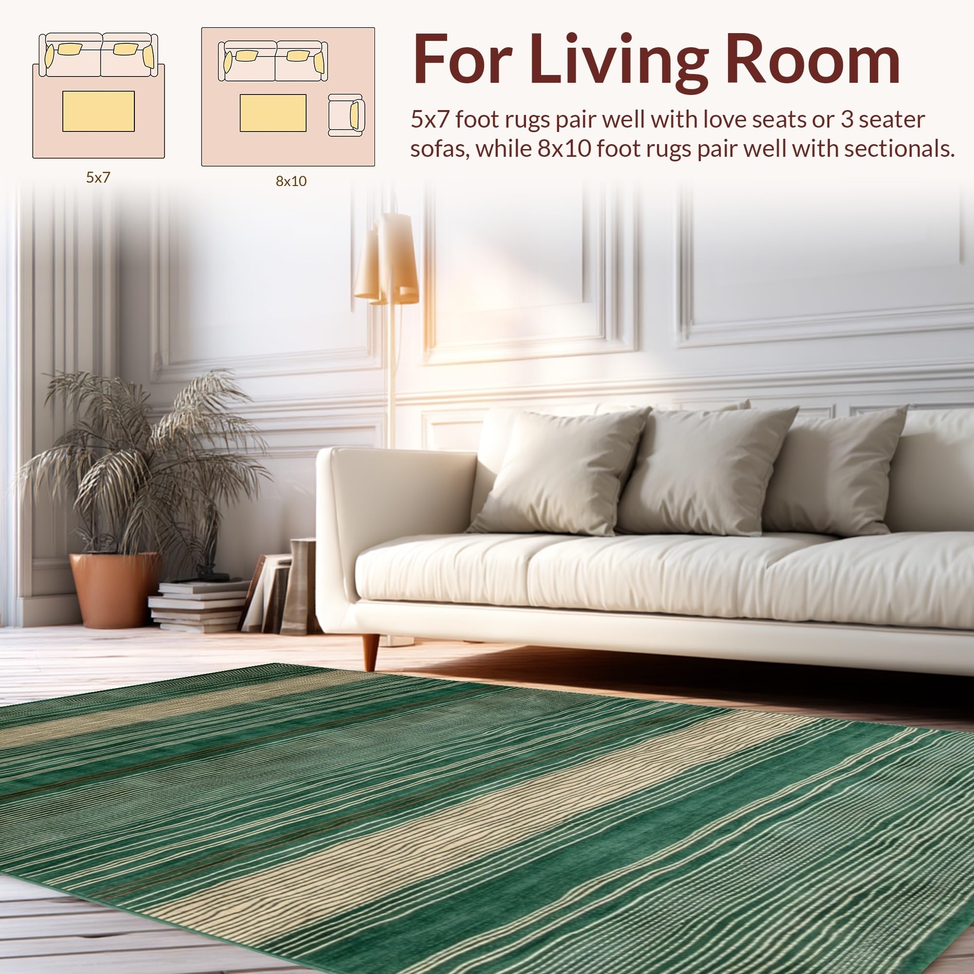 Ultra Soft Area Rug, Non Slip, Stain Resistant, Washable Area Rugs for Living Room, Bedroom, Minimalist Freeform Design Element(Green) Overview: