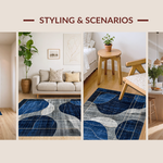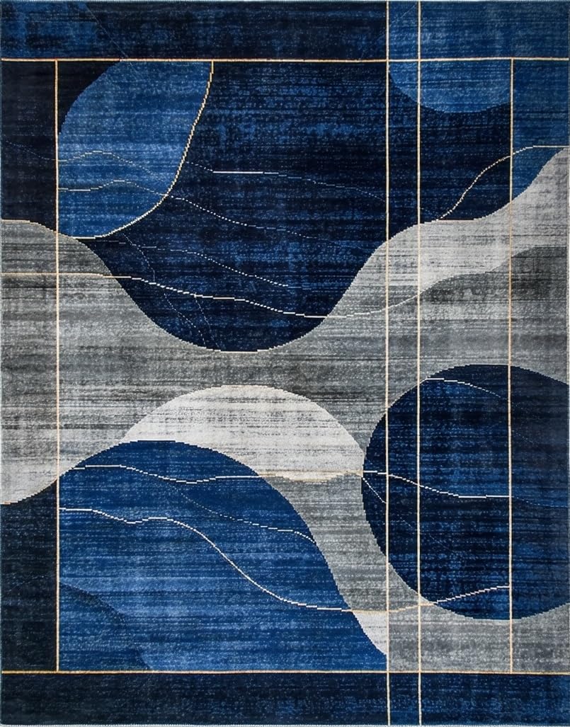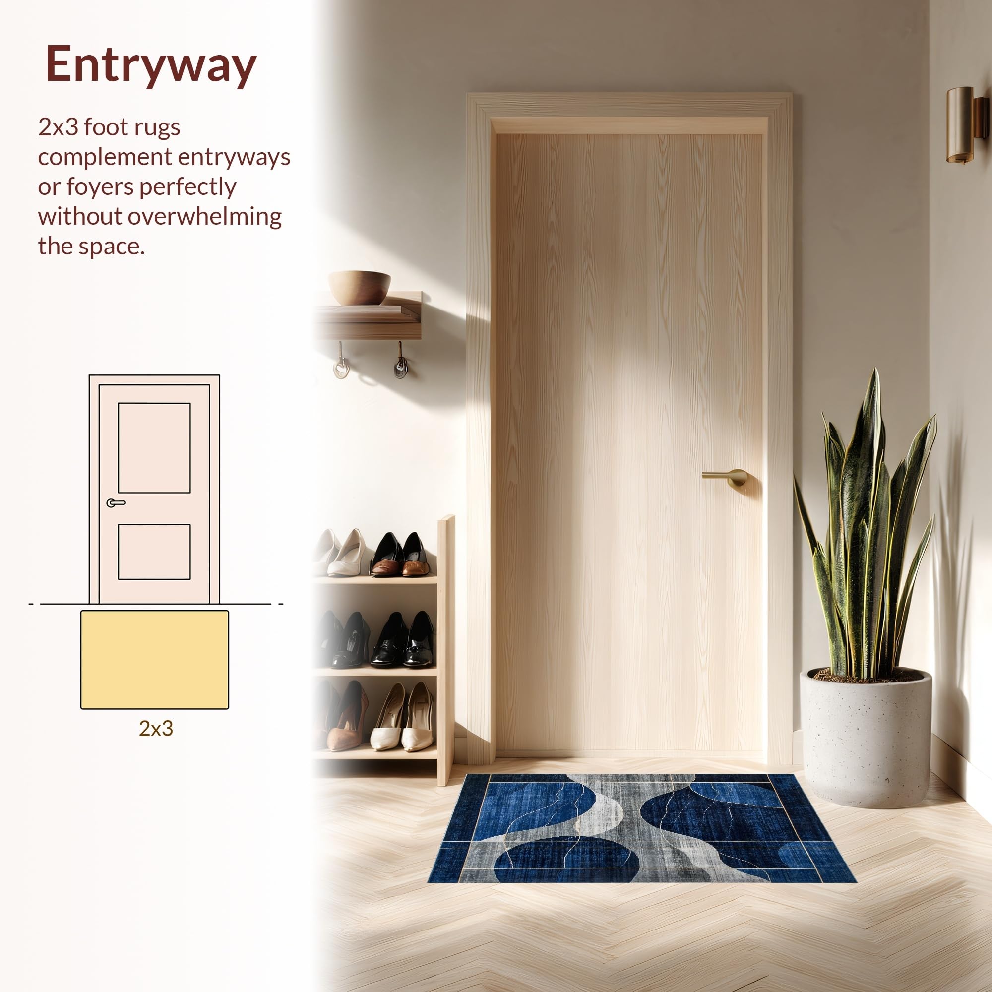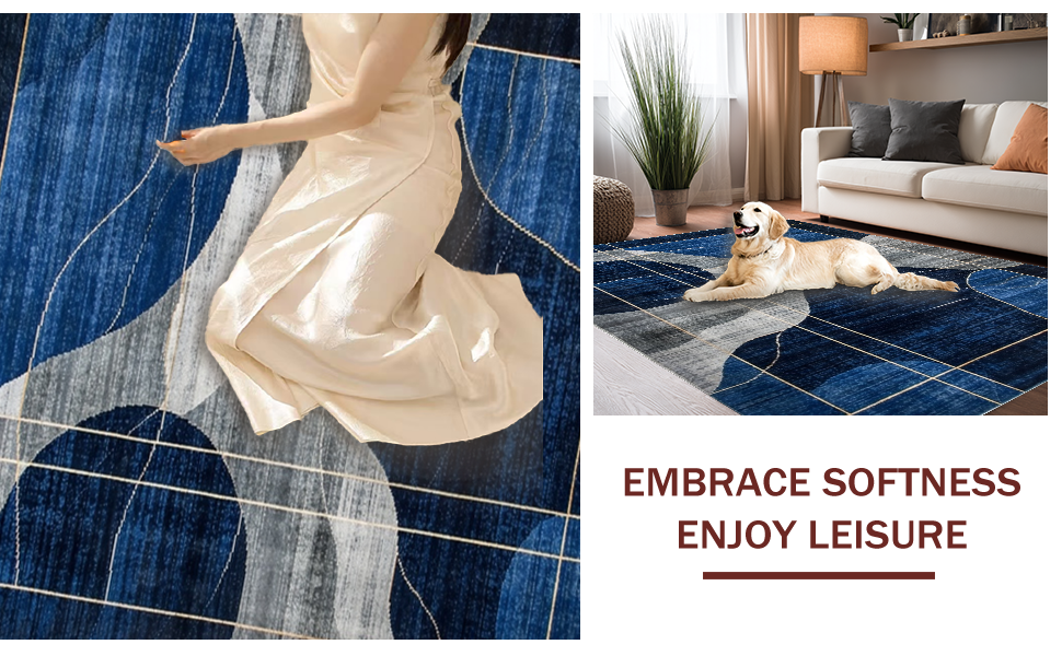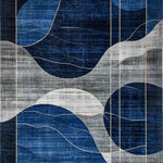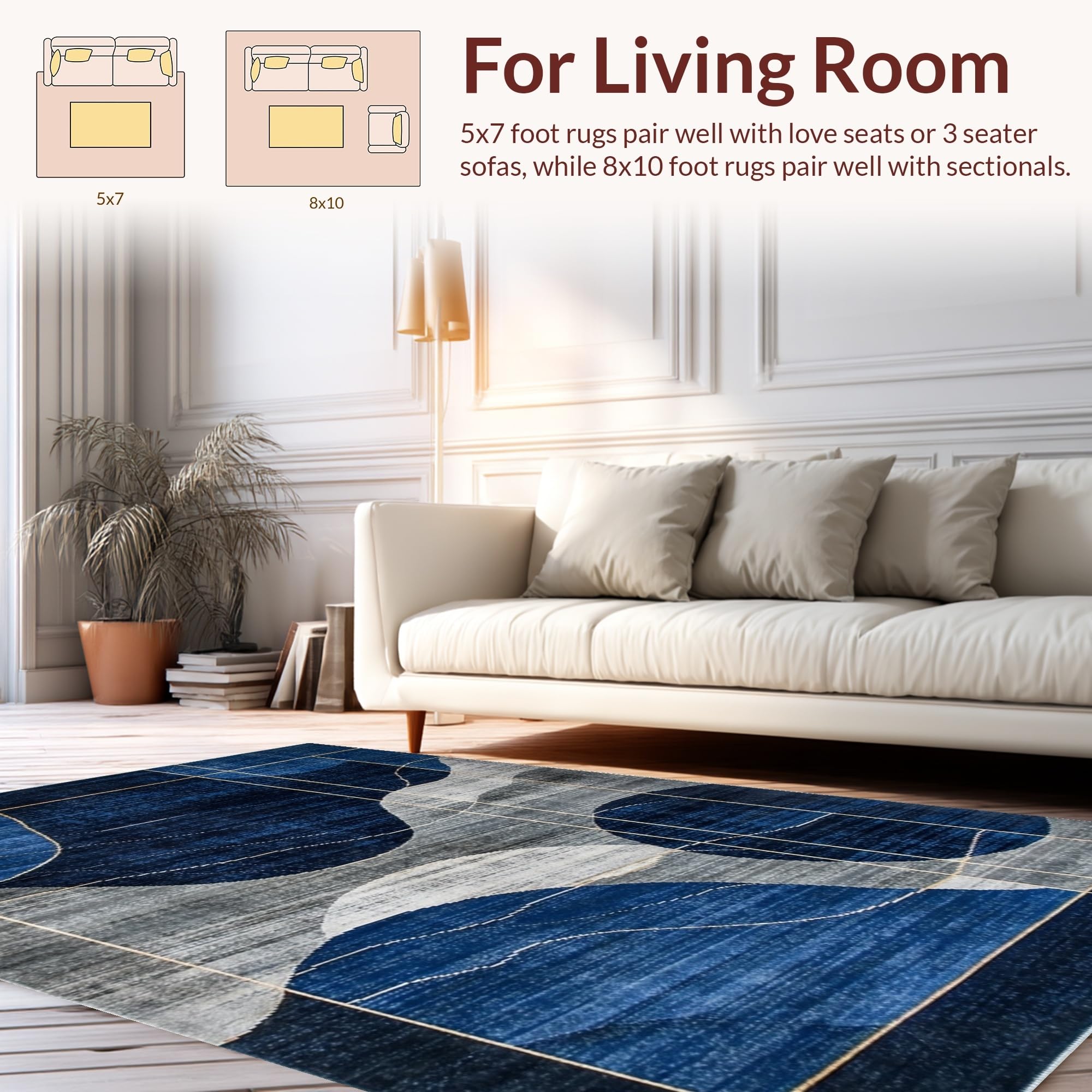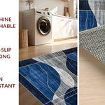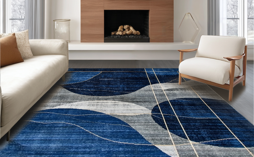 Ultra Soft Area Rug, Non Slip, Stain Resistant, Washable Area Rugs for Living Room, Bedroom, Minimalist Gray Blue Linear Composition(Blue) Overview: