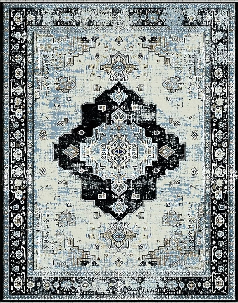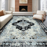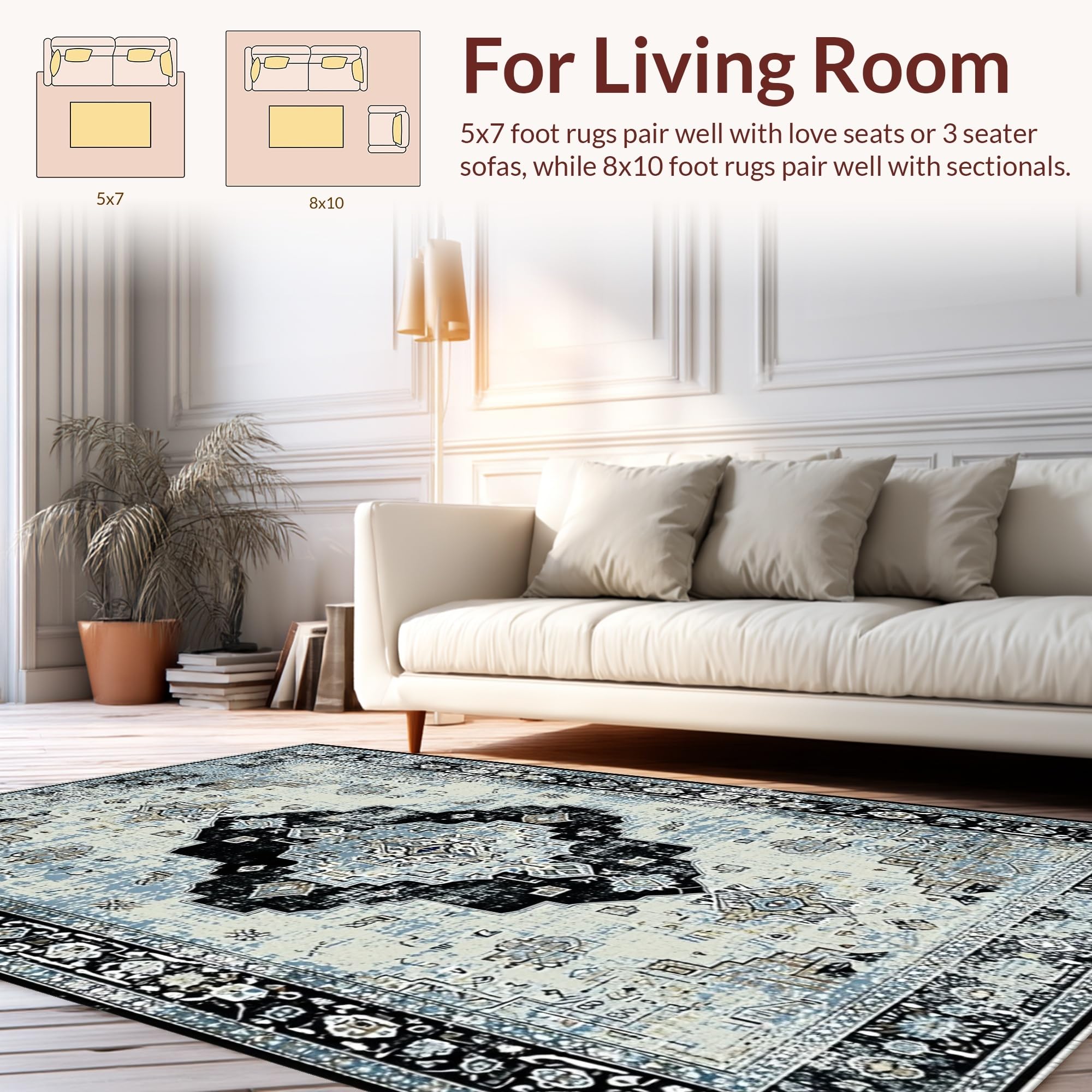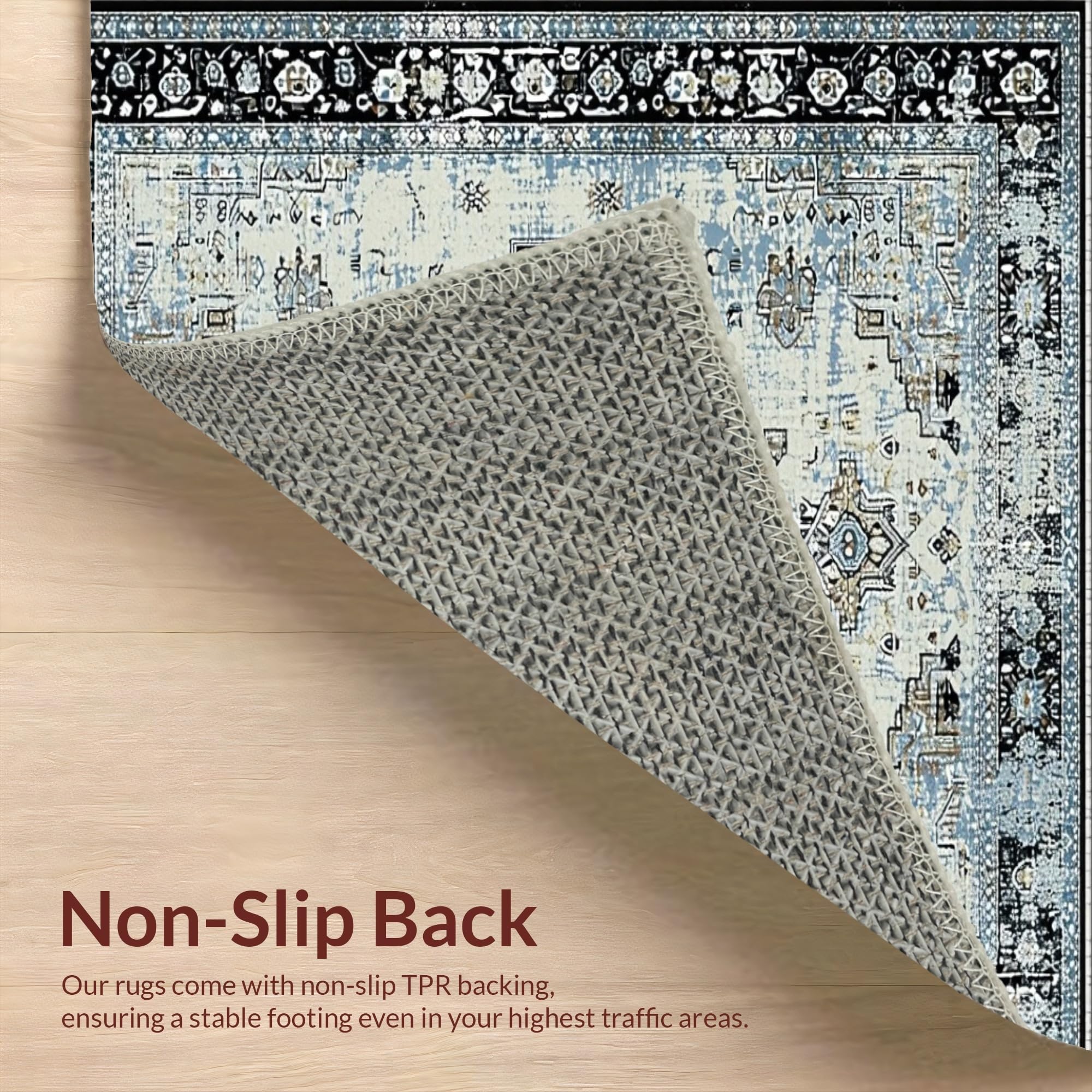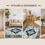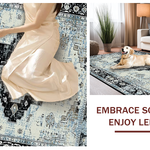 Ultra Soft Area Rug, Non Slip, Stain Resistant, Washable Area Rugs for Living Room, Bedroom, Minimalist Gray Floral Composition(Blue) Overview: