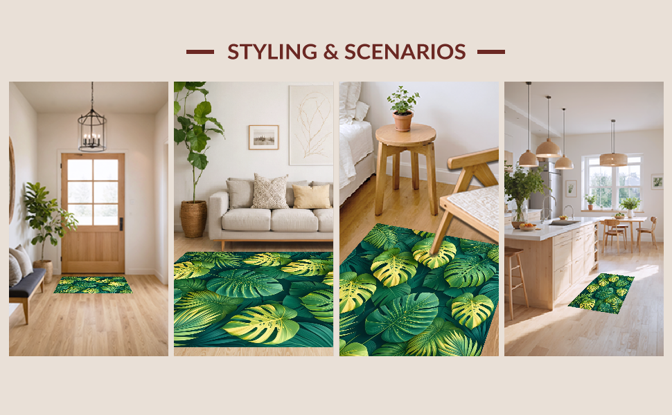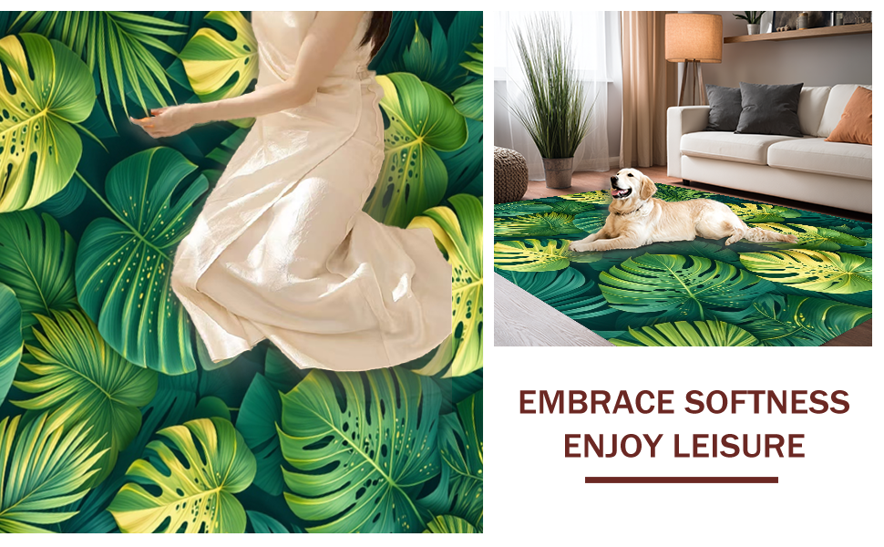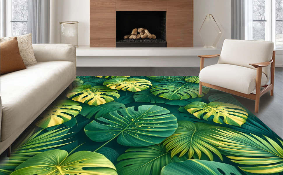 Ultra Soft Area Rug, Non Slip, Stain Resistant, Washable Area Rugs for Living Room, Bedroom, Minimalist Green Nature Theme(Green) Overview: