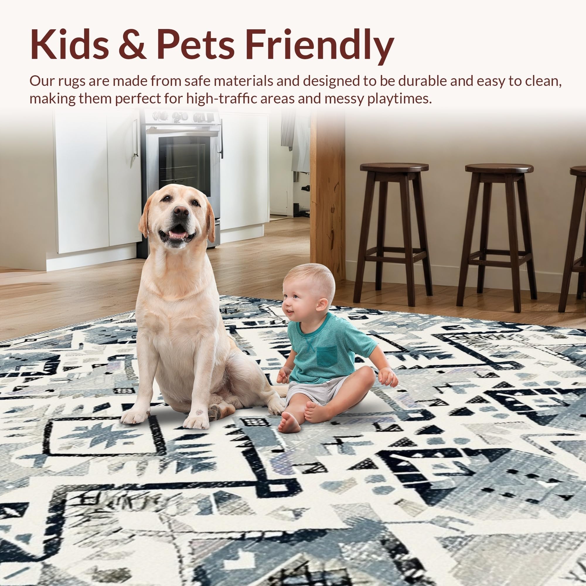 Ultra Soft Area Rug, Non Slip, Stain Resistant, Washable Area Rugs for Living Room, Bedroom, Minimalist Grey and White Medallion(Gray) Overview: