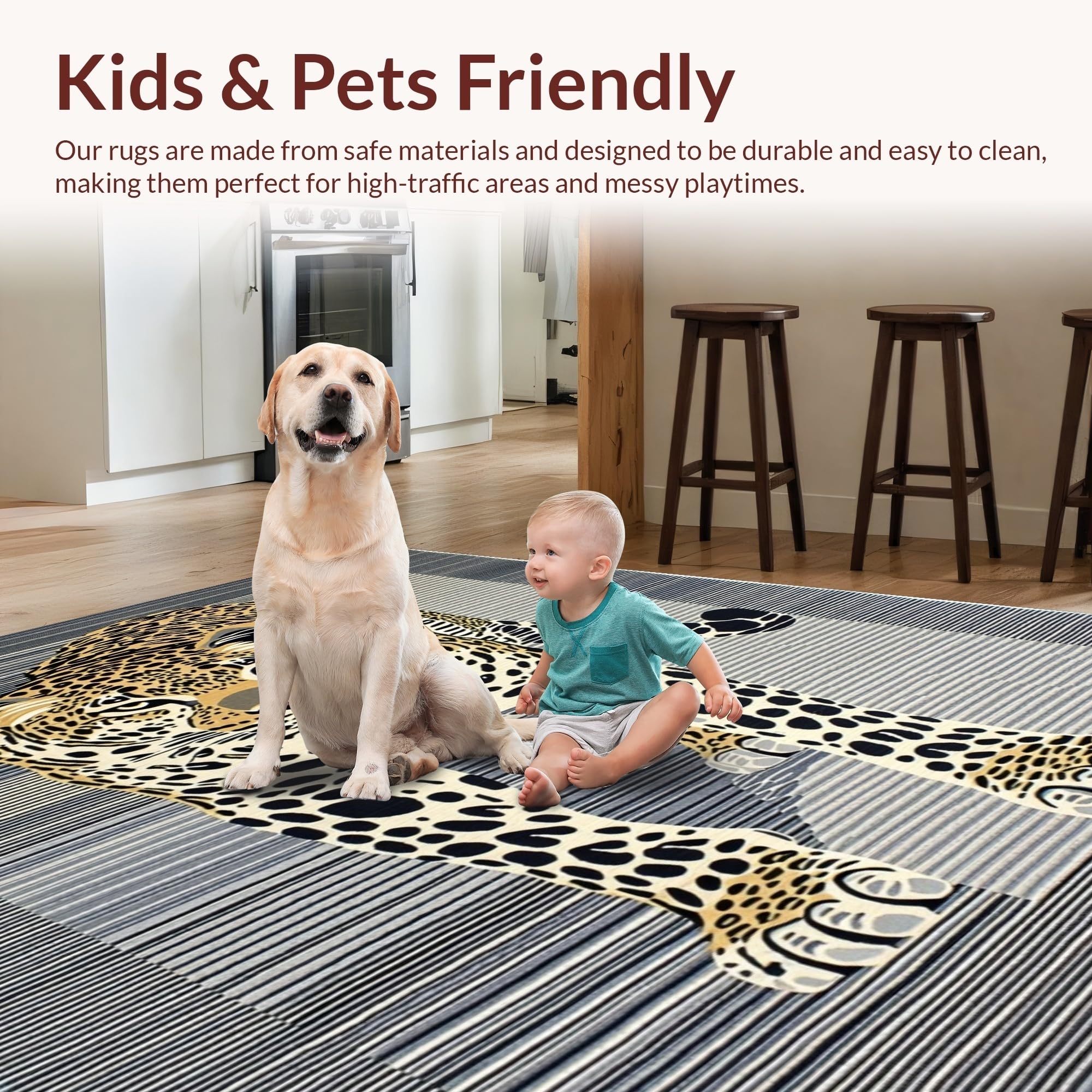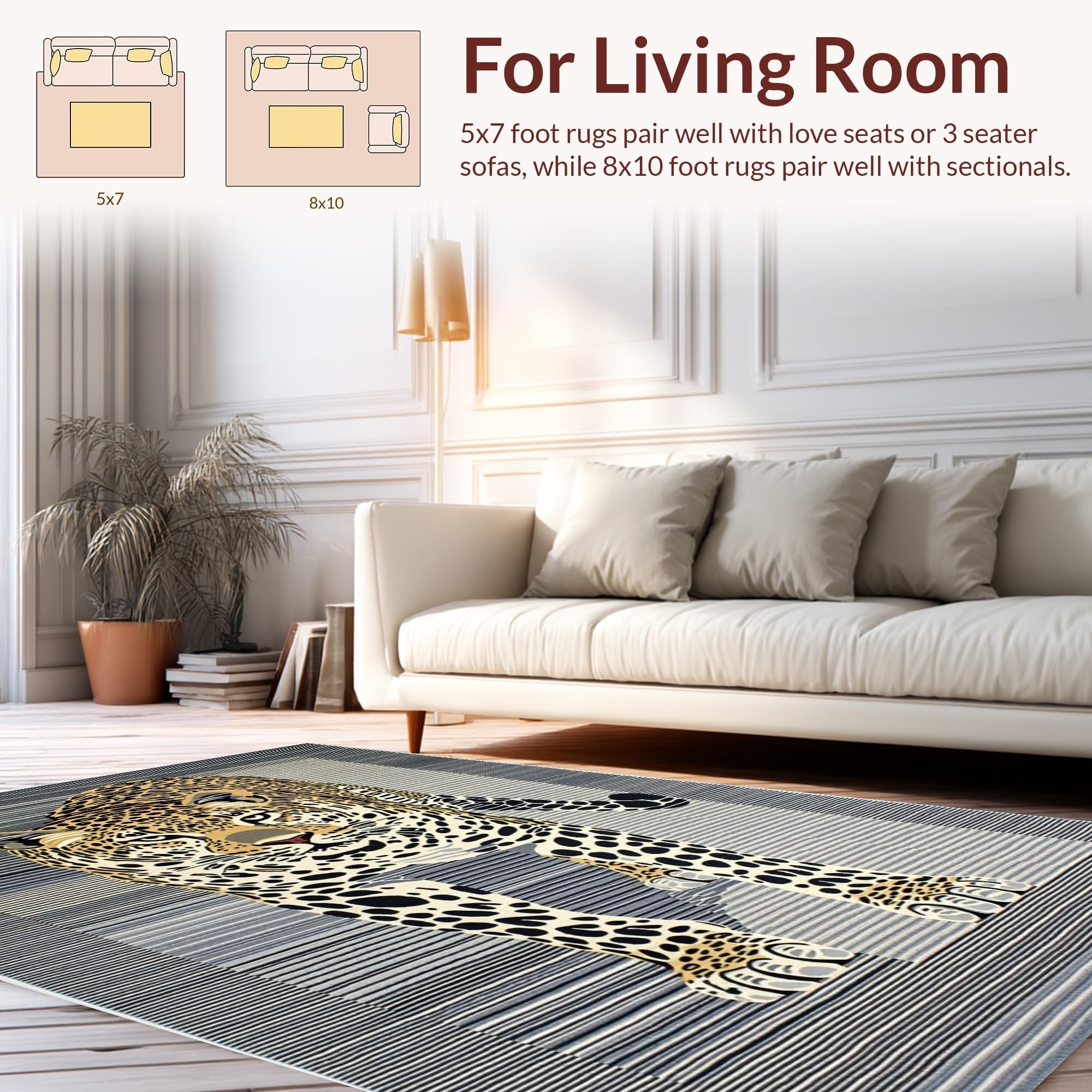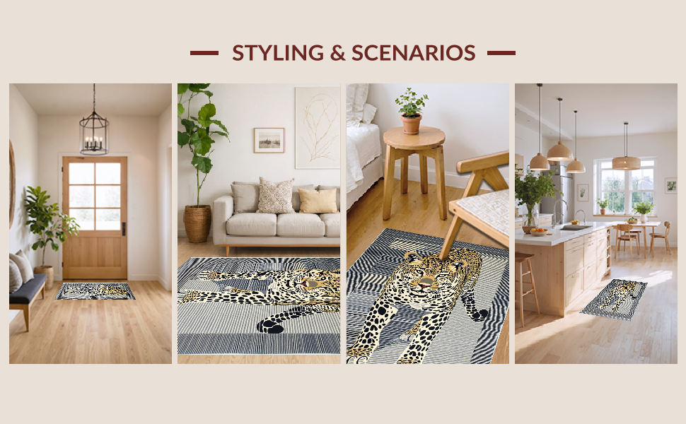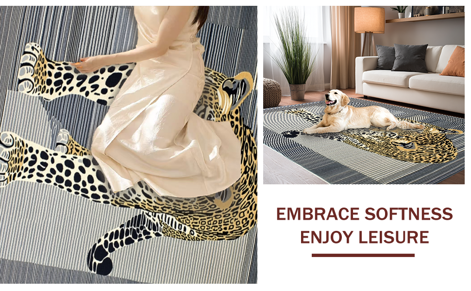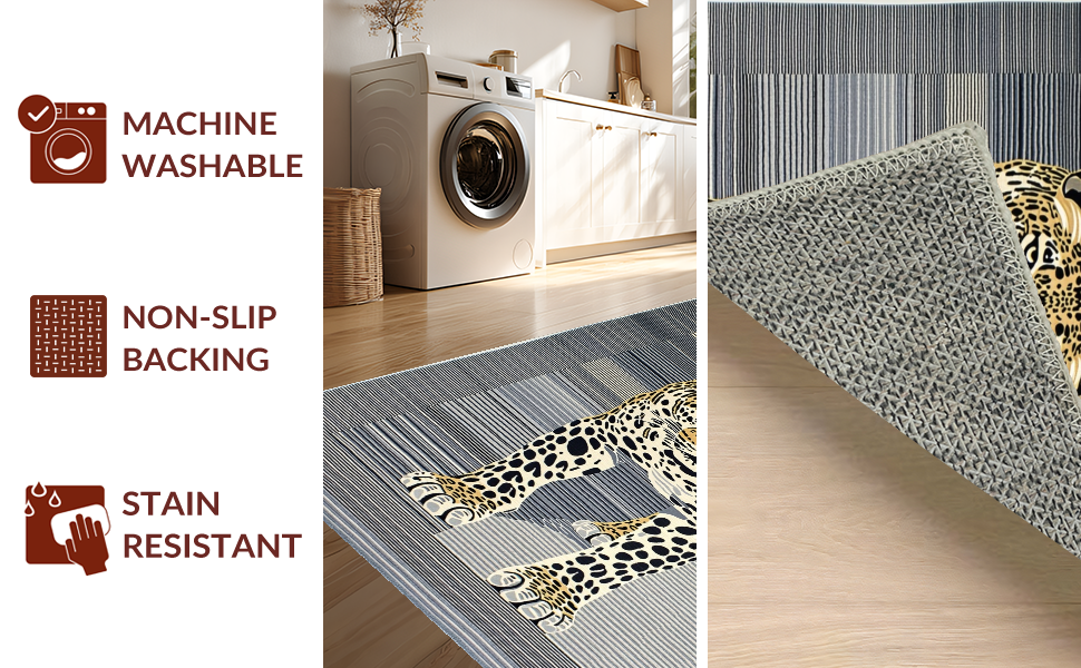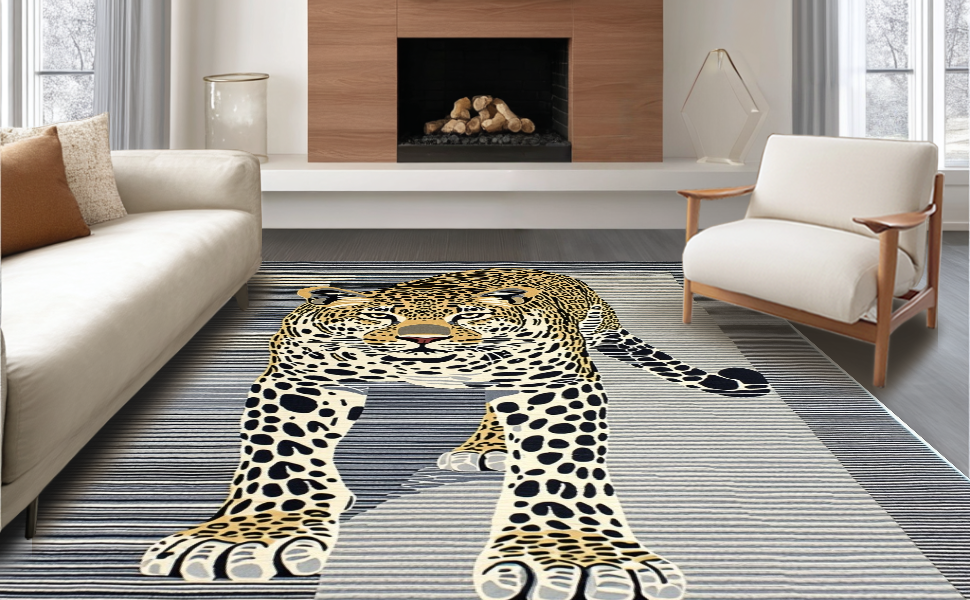 Ultra Soft Area Rug, Non Slip, Stain Resistant, Washable Area Rugs for Living Room, Bedroom, Minimalist Grey Animal Motif(Black) Overview: