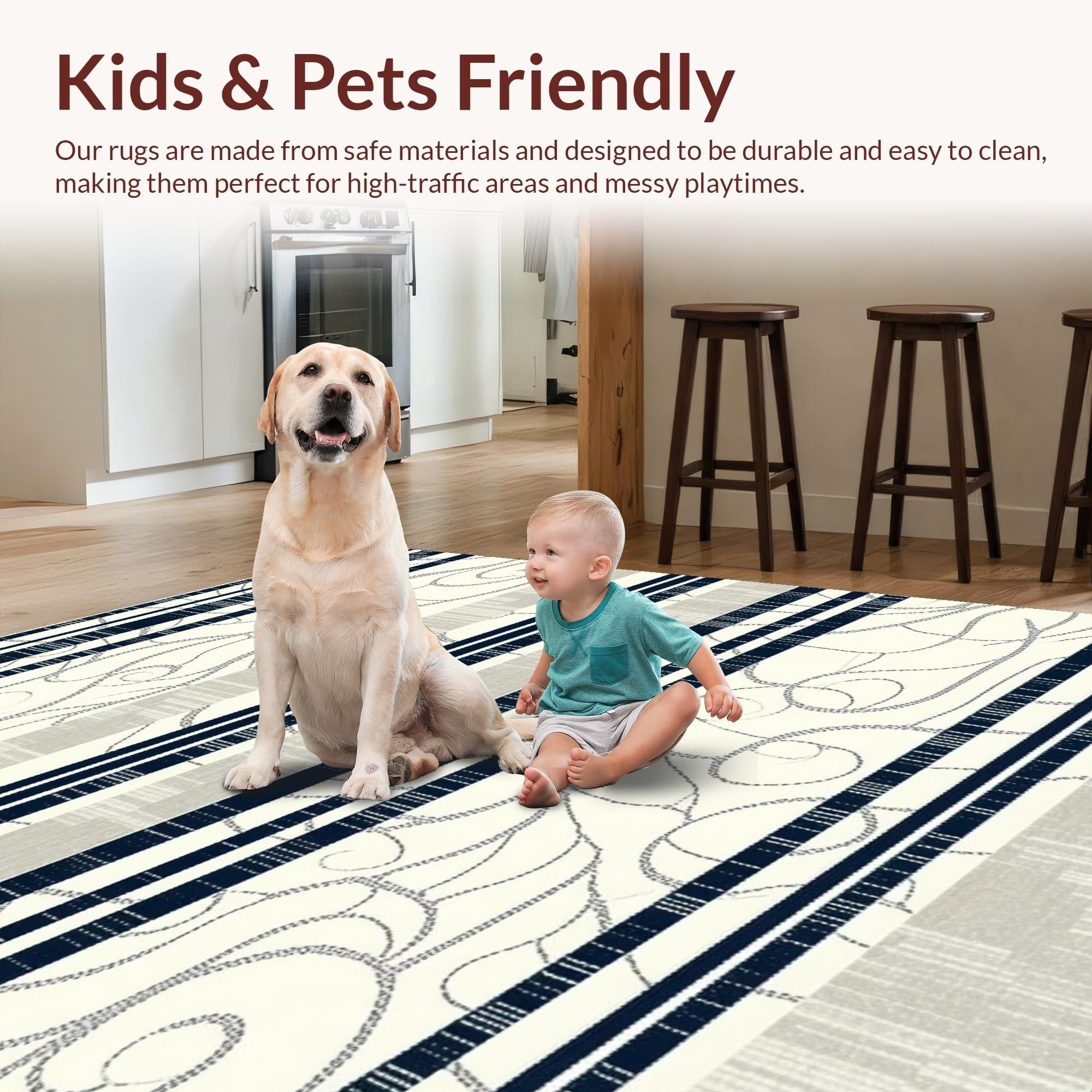 Ultra Soft Area Rug, Non Slip, Stain Resistant, Washable Area Rugs for Living Room, Bedroom, Minimalist Groovy Patterned Elegance(Gray) Overview: