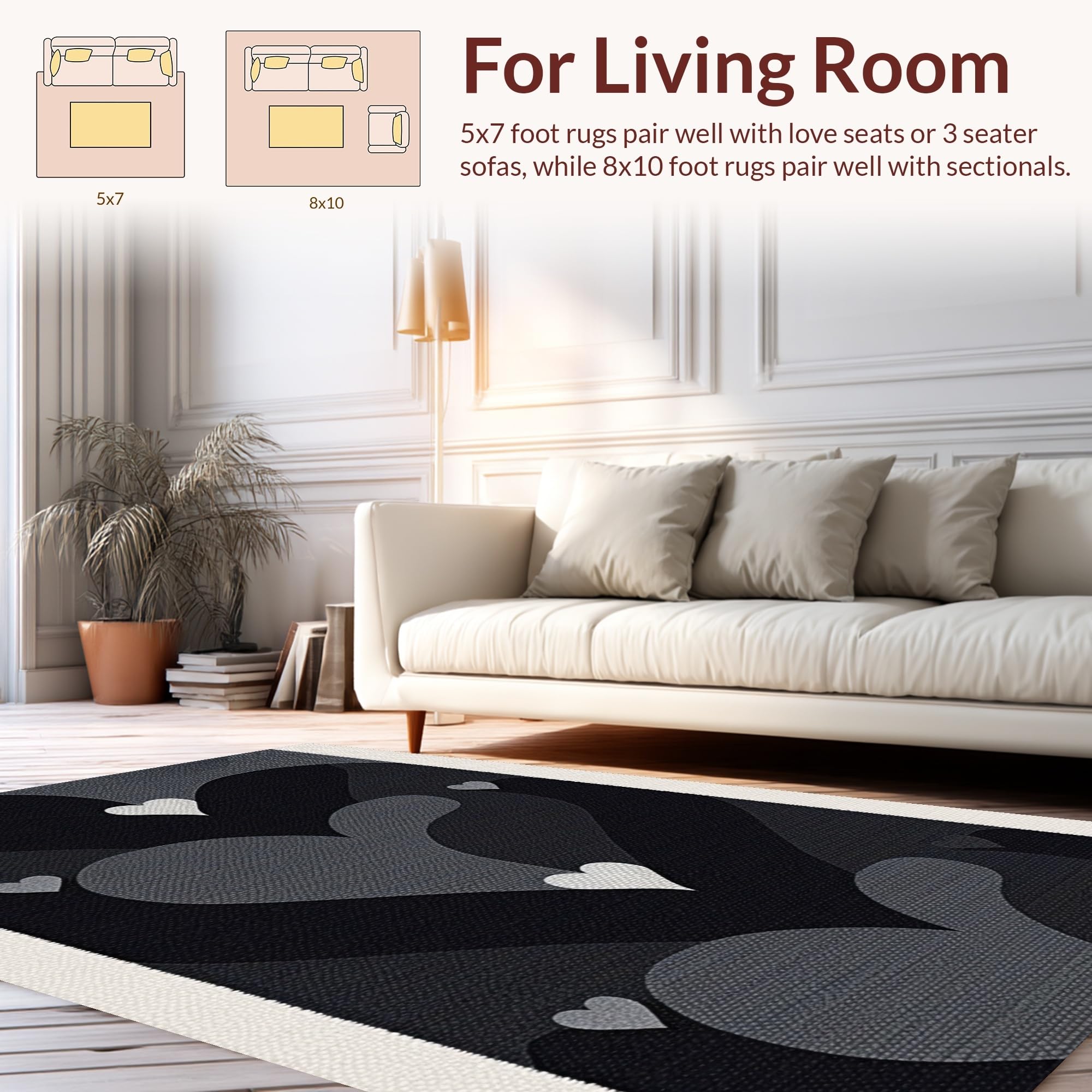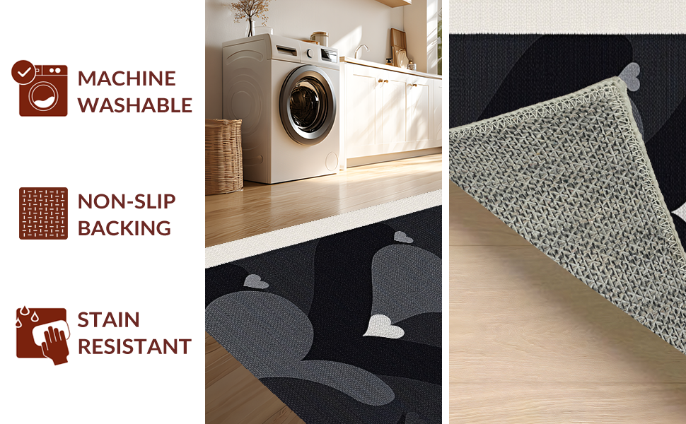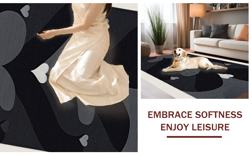 Ultra Soft Area Rug, Non Slip, Stain Resistant, Washable Area Rugs for Living Room, Bedroom, Minimalist Heart Pattern Delight(Black) Overview:
