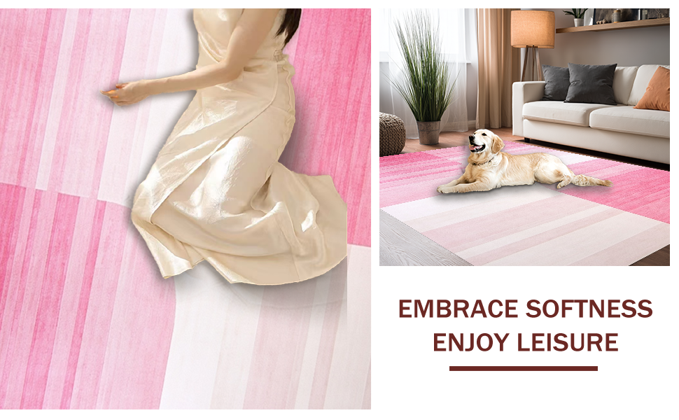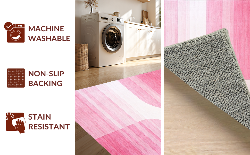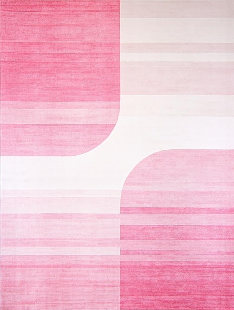 Ultra Soft Area Rug, Non Slip, Stain Resistant, Washable Area Rugs for Living Room, Bedroom, Minimalist Light Pink Brushstroke Motif(Pink) Overview: