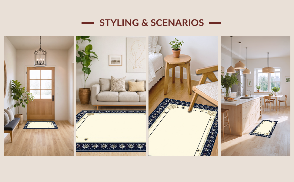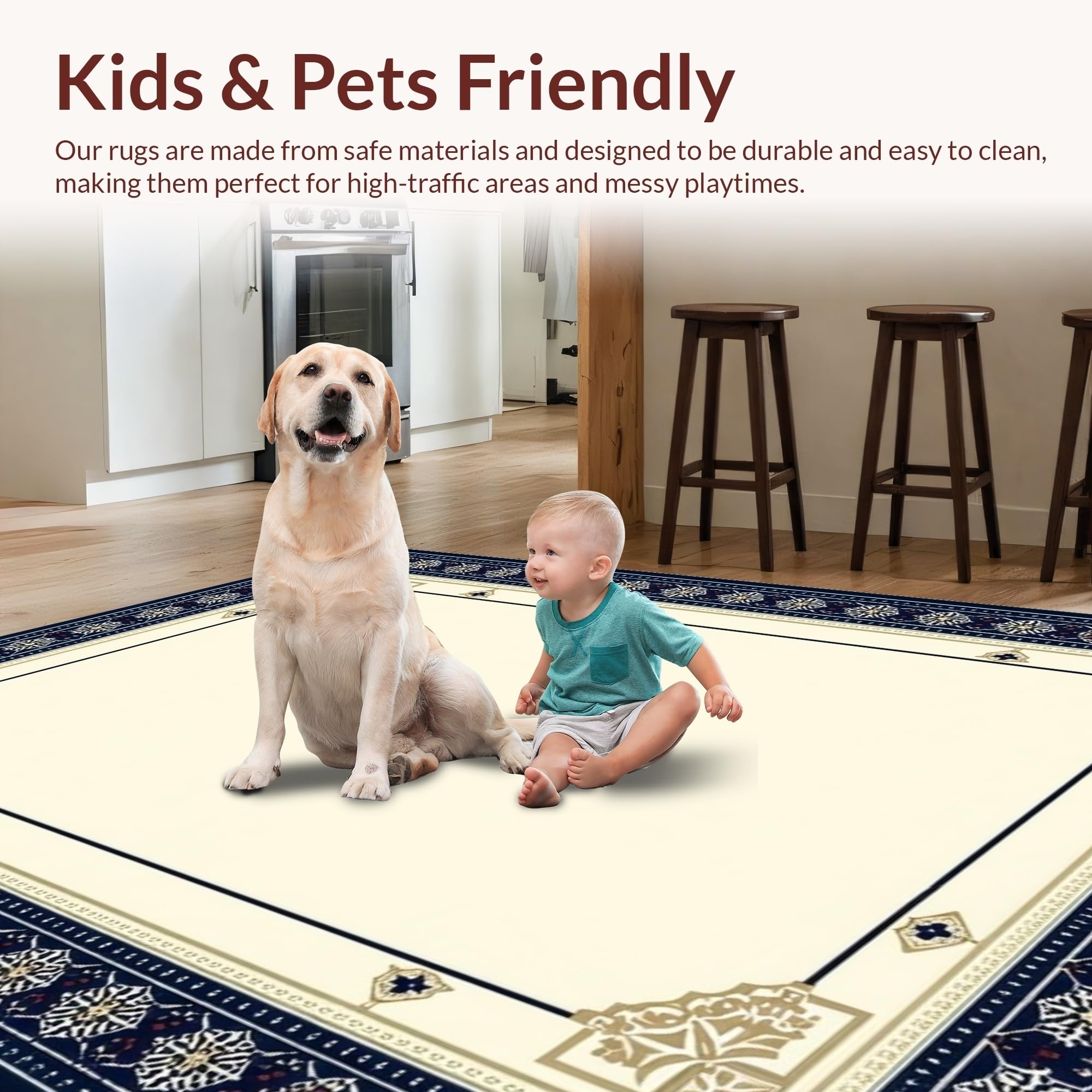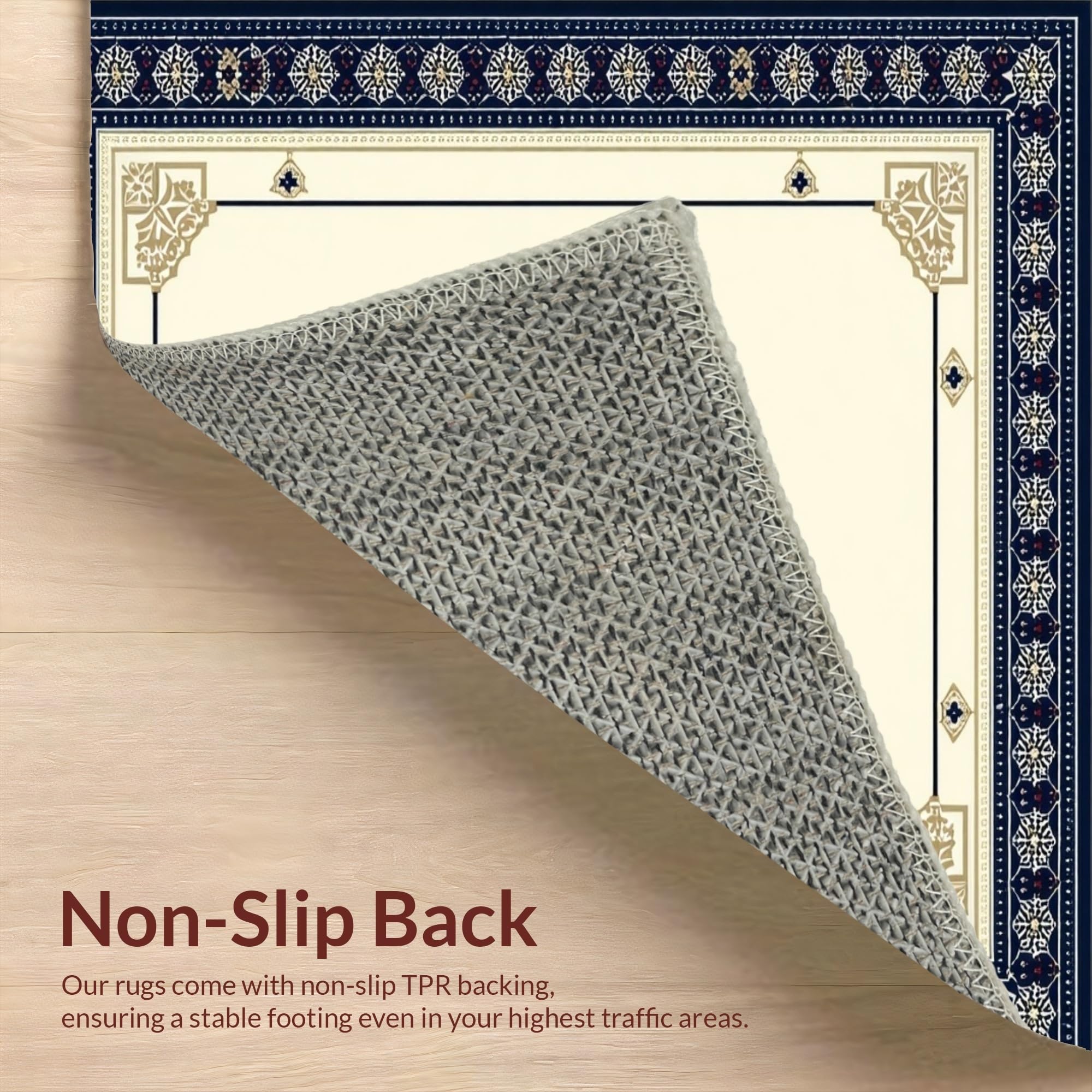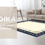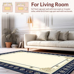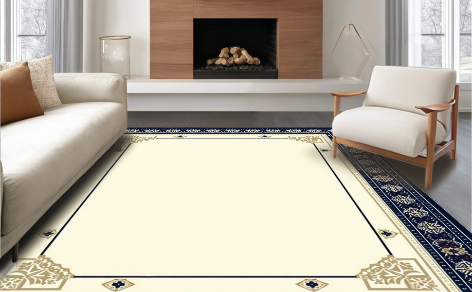 Ultra Soft Area Rug, Non Slip, Stain Resistant, Washable Area Rugs for Living Room, Bedroom, Minimalist Navy Blue Symmetry(Beige) Overview: