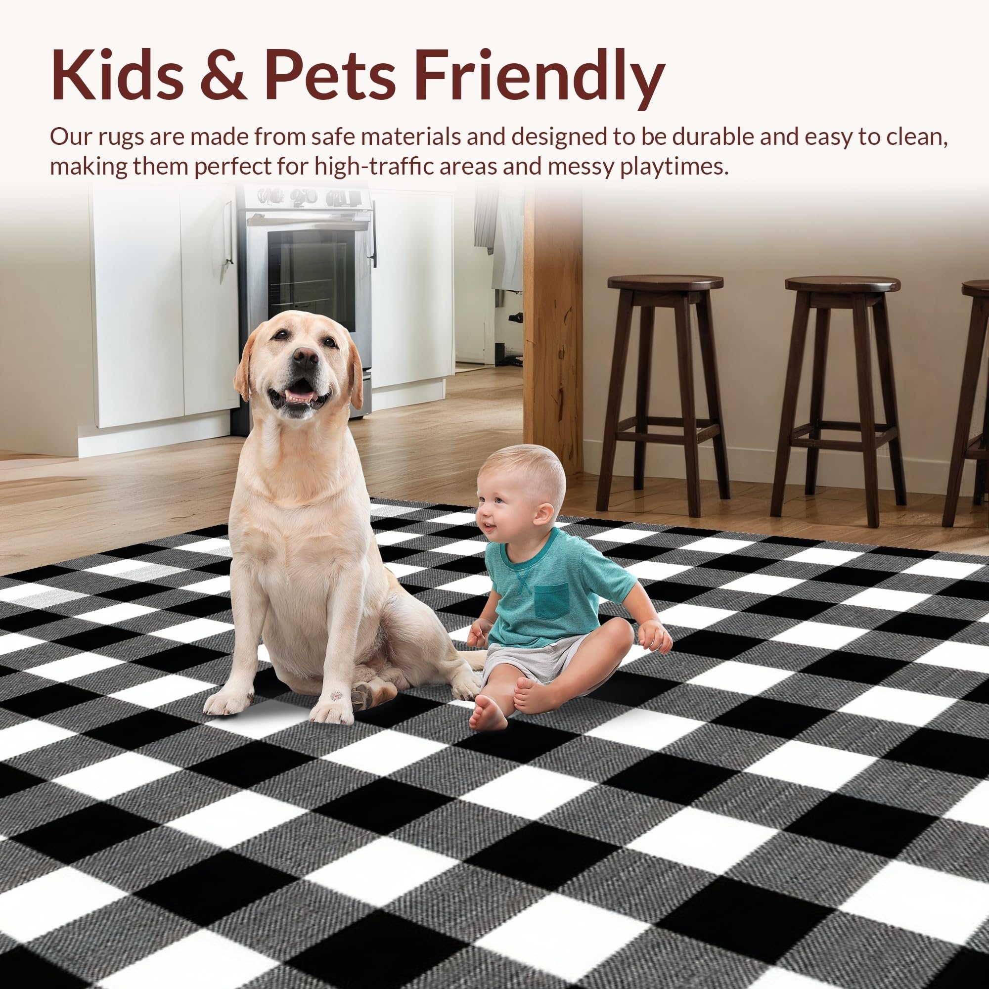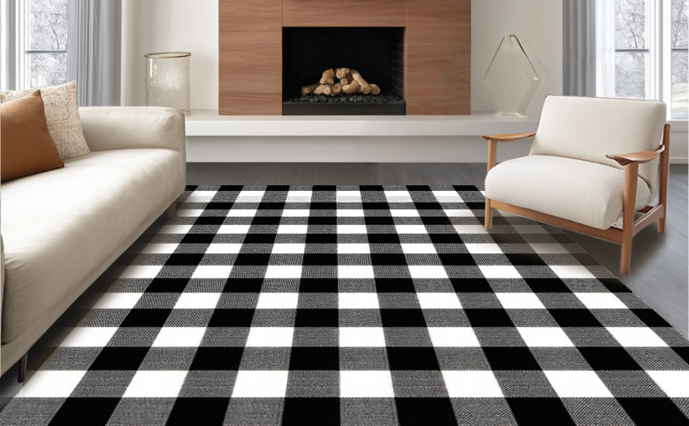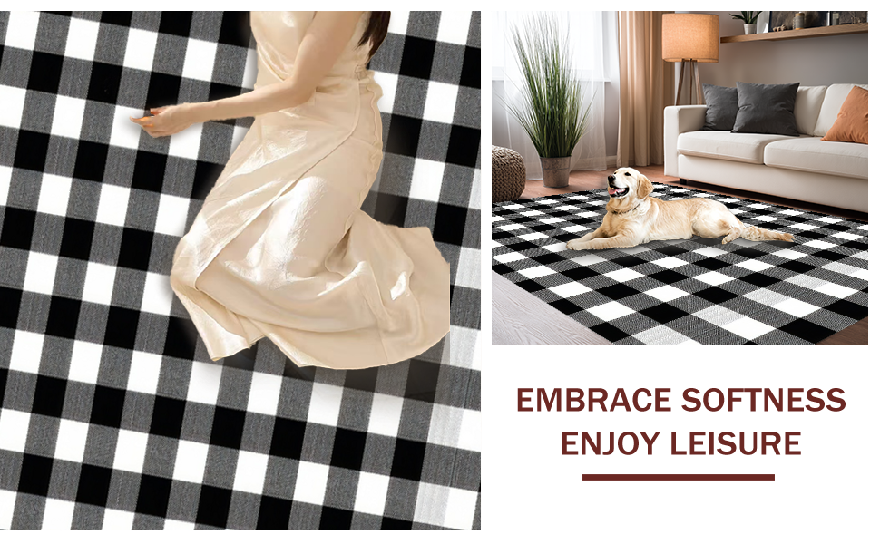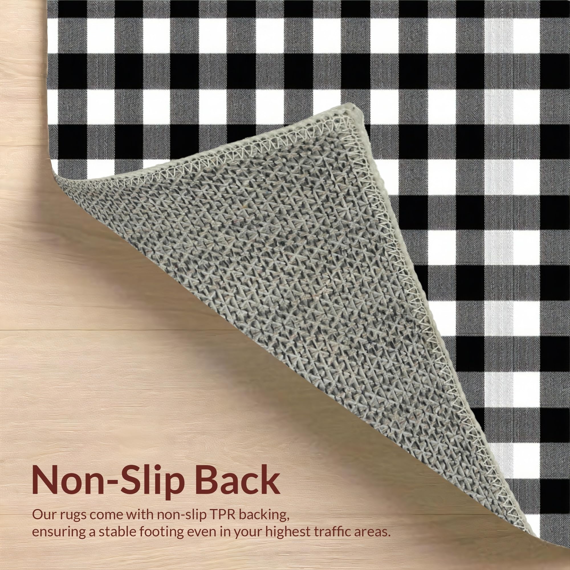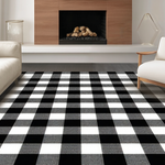 Ultra Soft Area Rug, Non Slip, Stain Resistant, Washable Area Rugs for Living Room, Bedroom, Minimalist Neutral Tartan Appeal(Black) Overview: