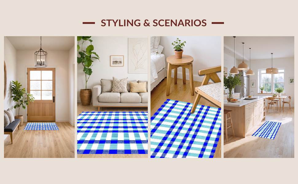 Ultra Soft Area Rug, Non Slip, Stain Resistant, Washable Area Rugs for Living Room, Bedroom, Minimalist Outdoor Blue Tartan Style(Blue) Overview: