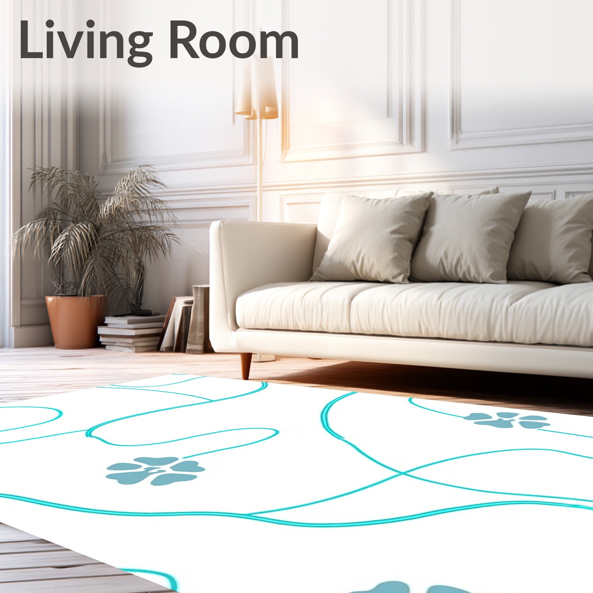 Ultra Soft Area Rug, Non Slip, Stain Resistant, Washable Area Rugs for Living Room, Bedroom, Minimalist Paw Print Trail with Sequential Light Path(Blue) Overview: