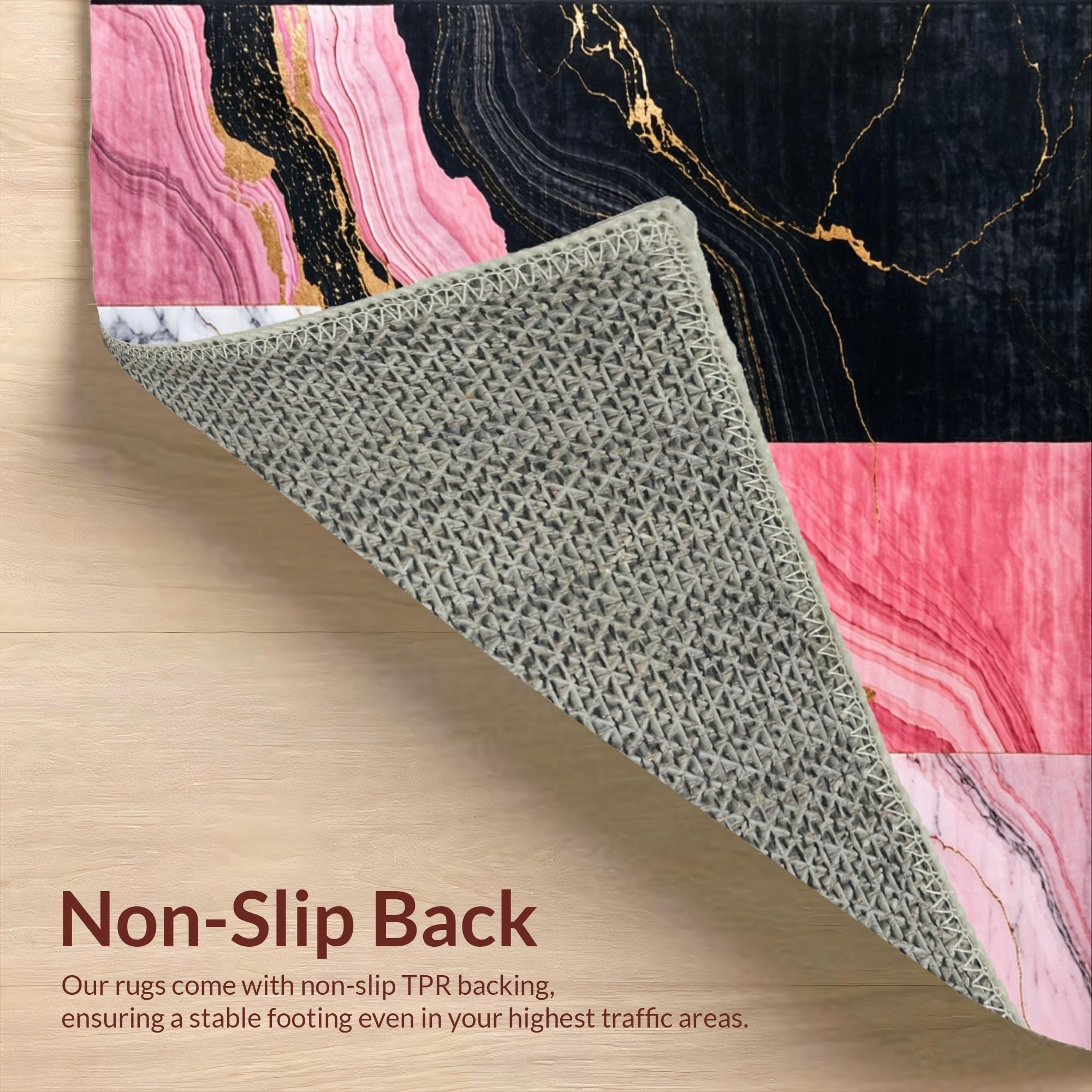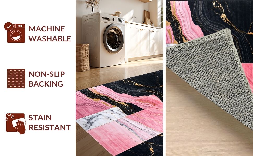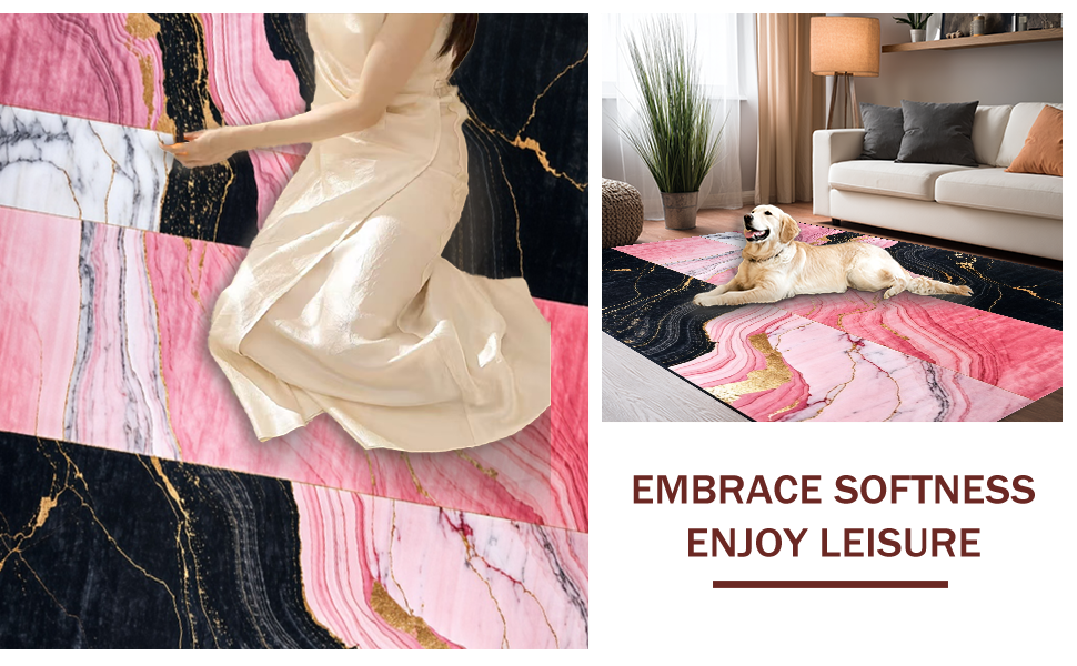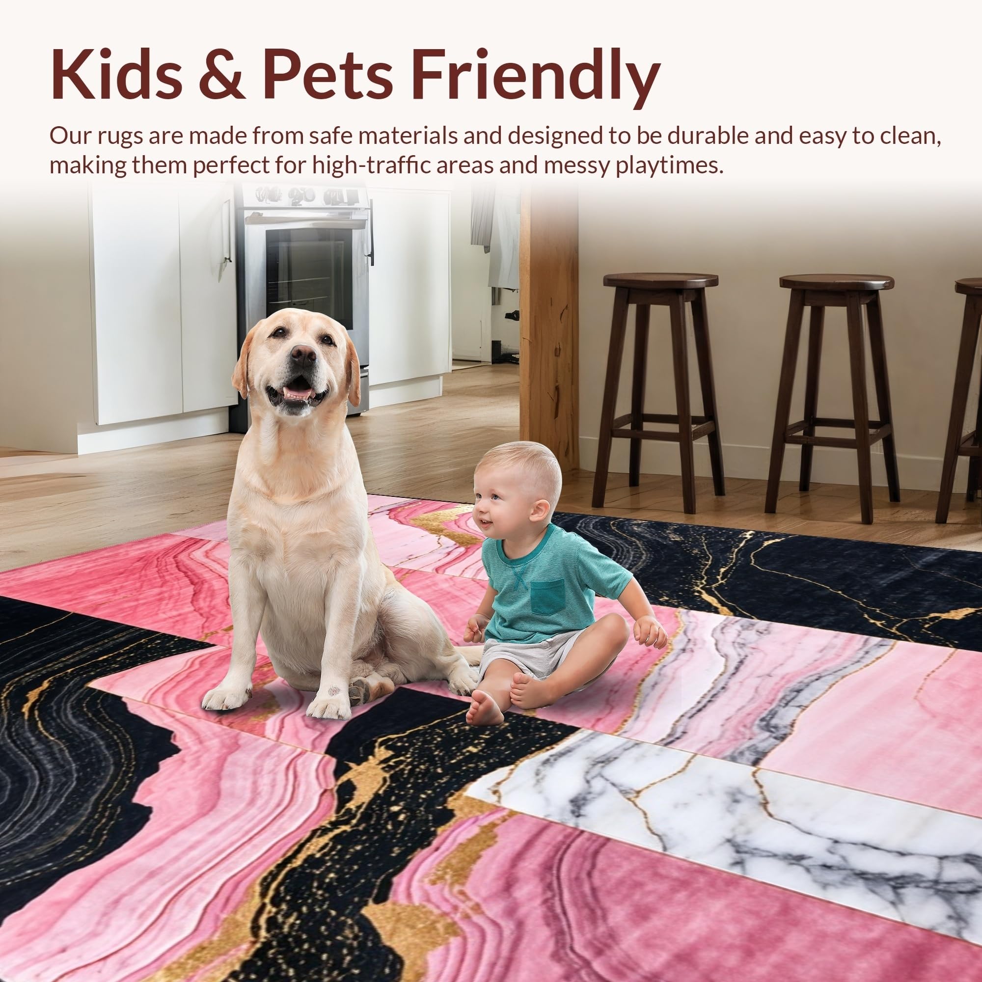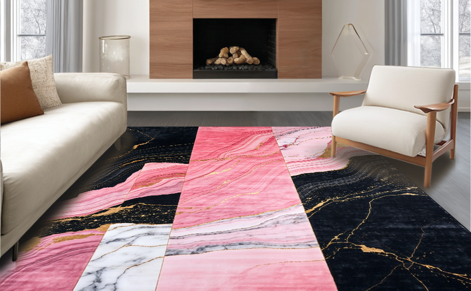Ultra Soft Area Rug, Non Slip, Stain Resistant, Washable Area Rugs for Living Room, Bedroom, Minimalist Pink and Charcoal Contrast(Pink) Overview: