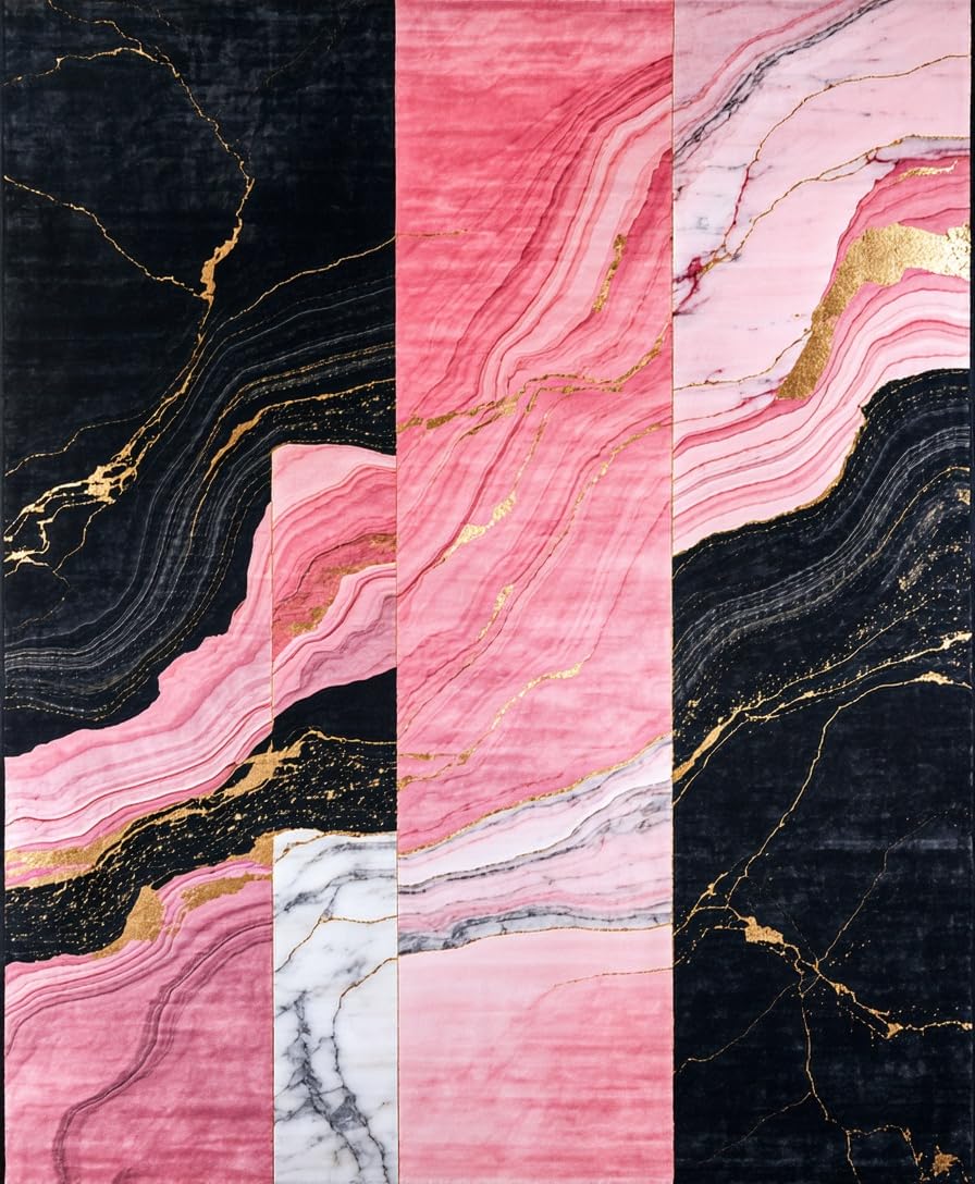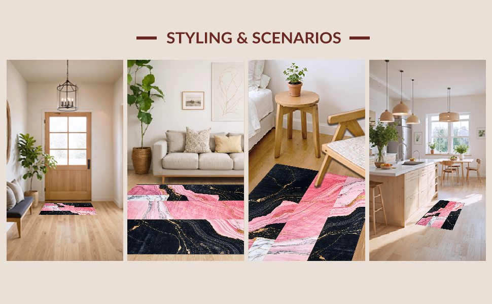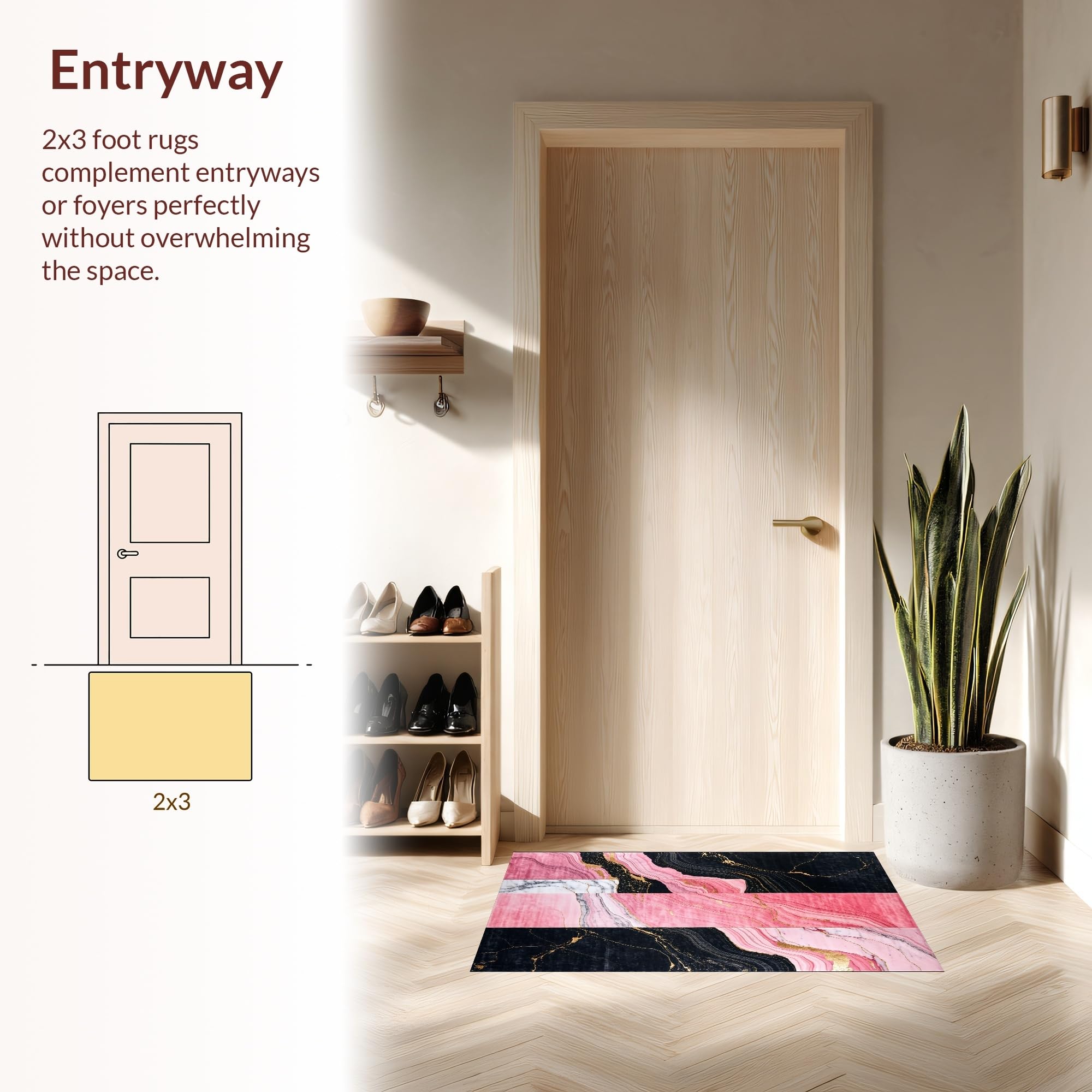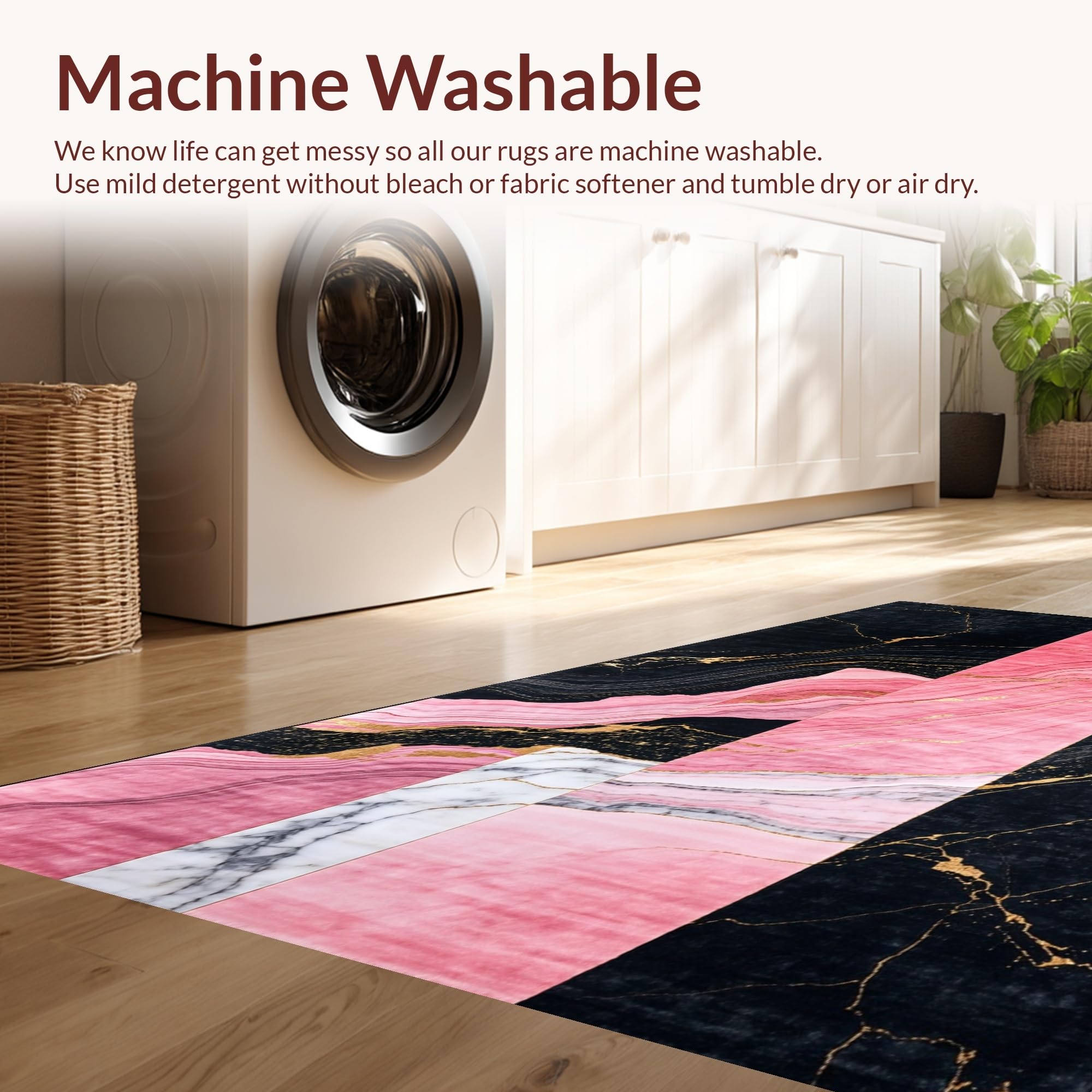 Ultra Soft Area Rug, Non Slip, Stain Resistant, Washable Area Rugs for Living Room, Bedroom, Minimalist Pink and Charcoal Contrast(Pink) Overview: