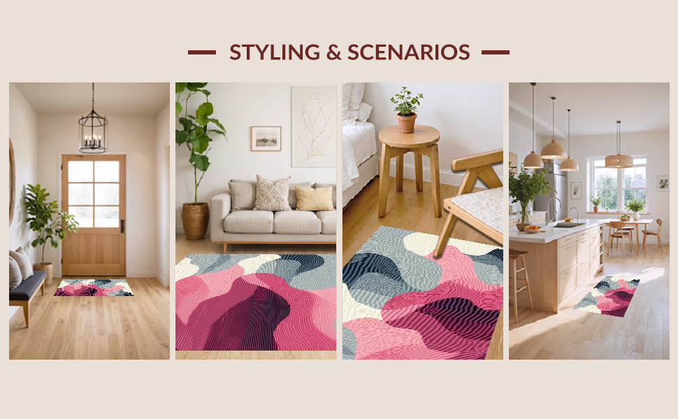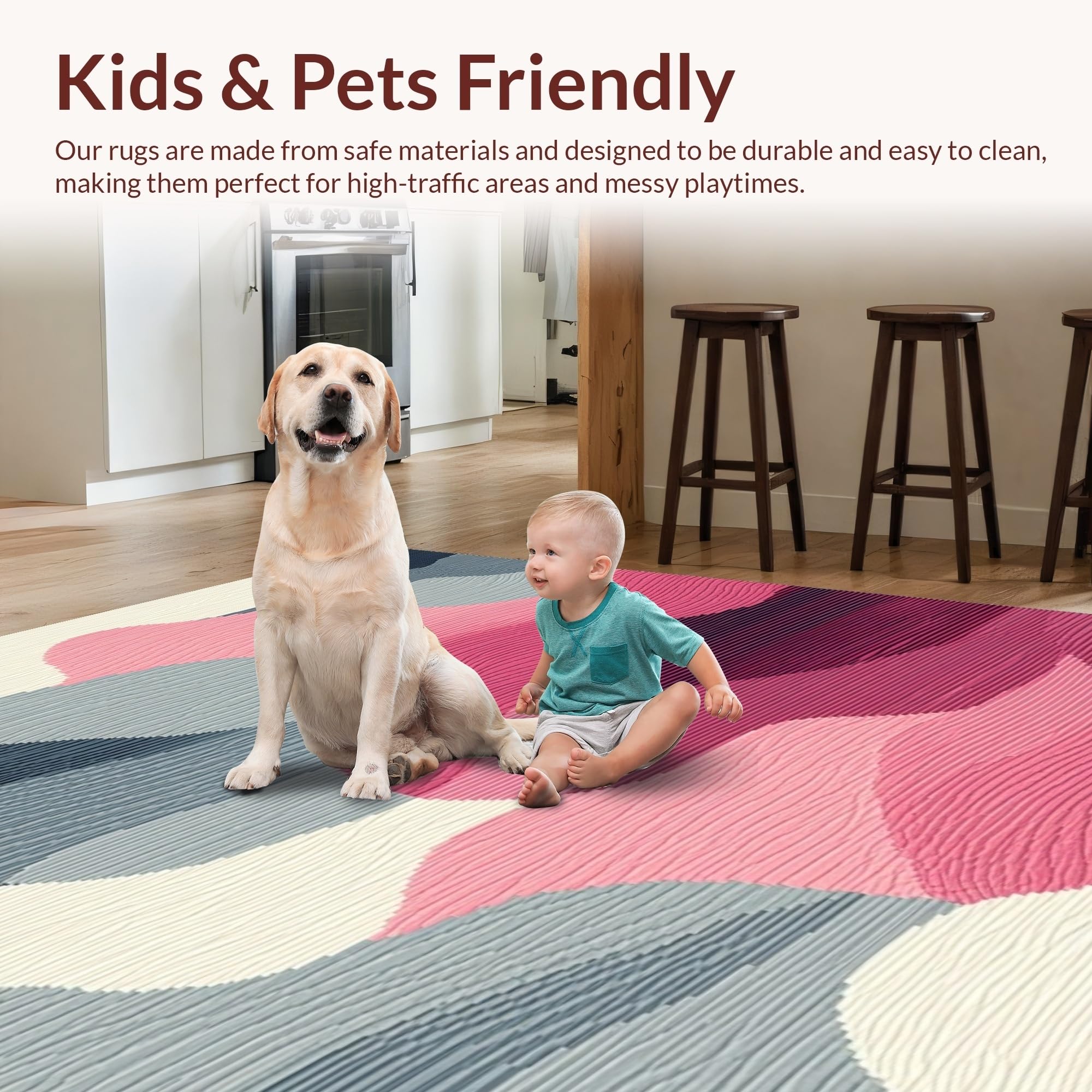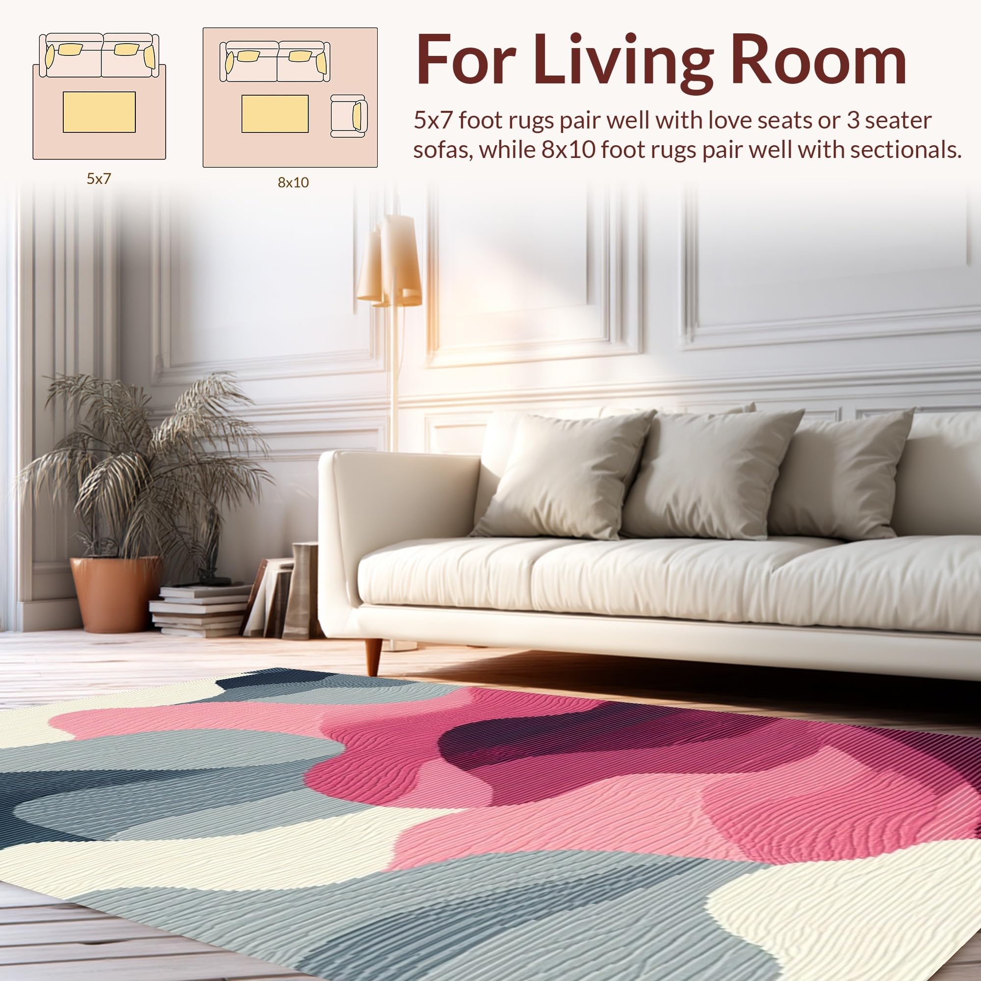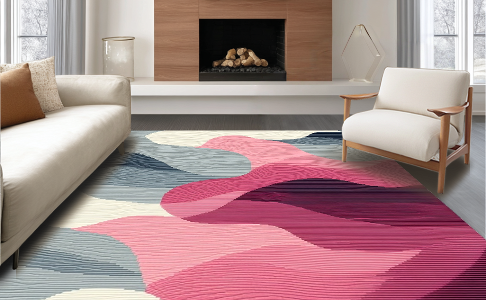 Ultra Soft Area Rug, Non Slip, Stain Resistant, Washable Area Rugs for Living Room, Bedroom, Minimalist Pink Grey Swirl Aesthetic(Gray) Overview: